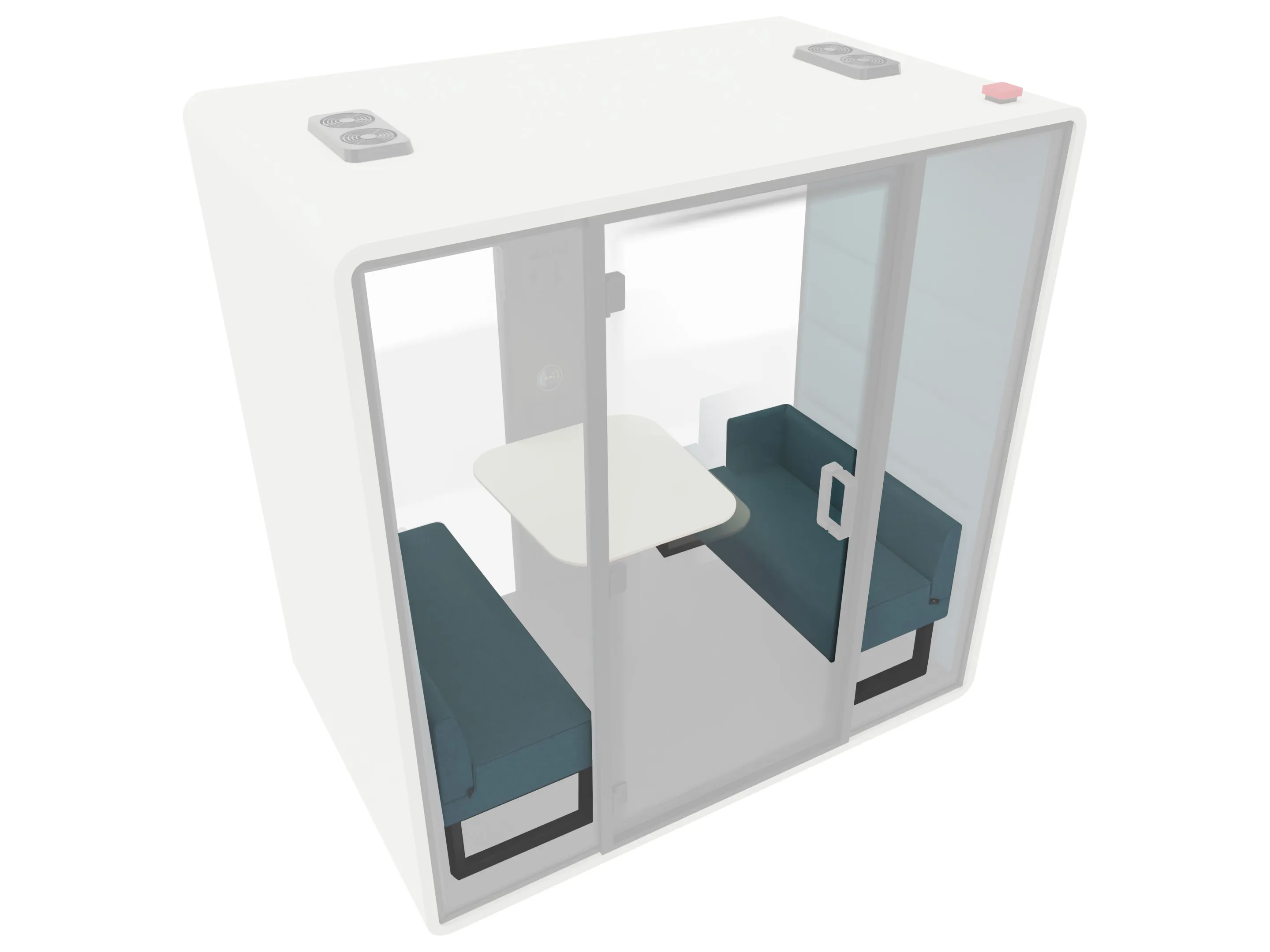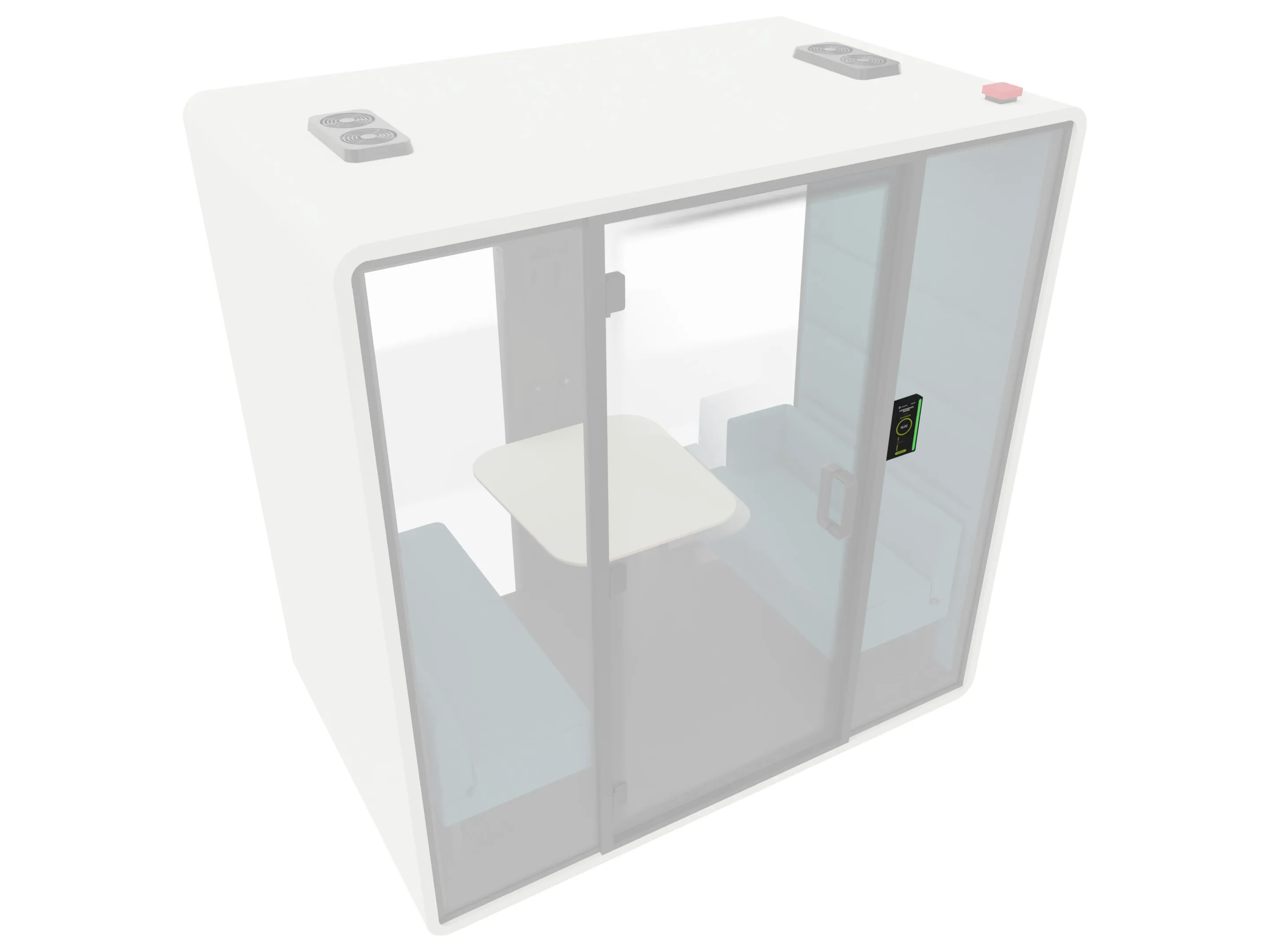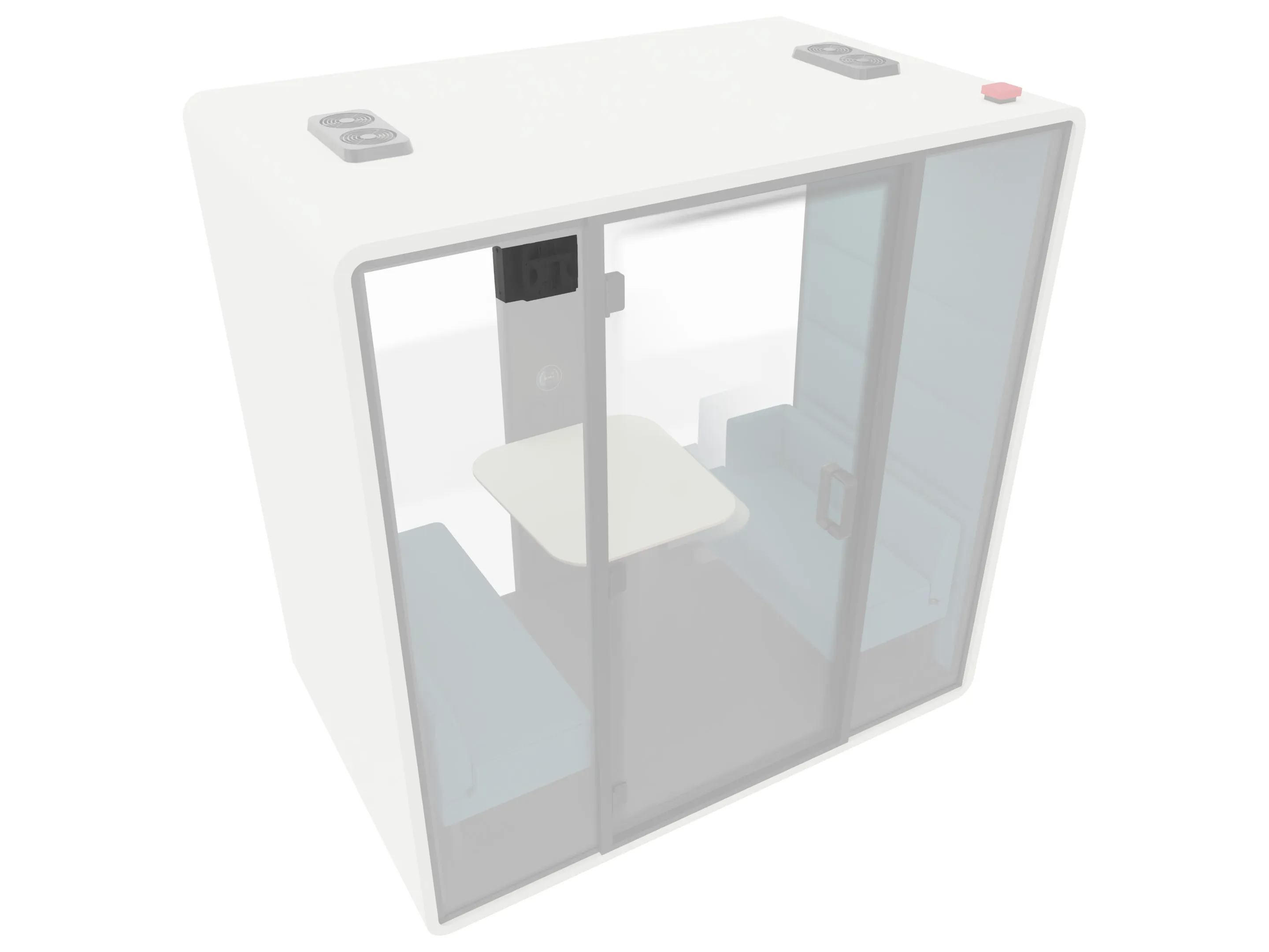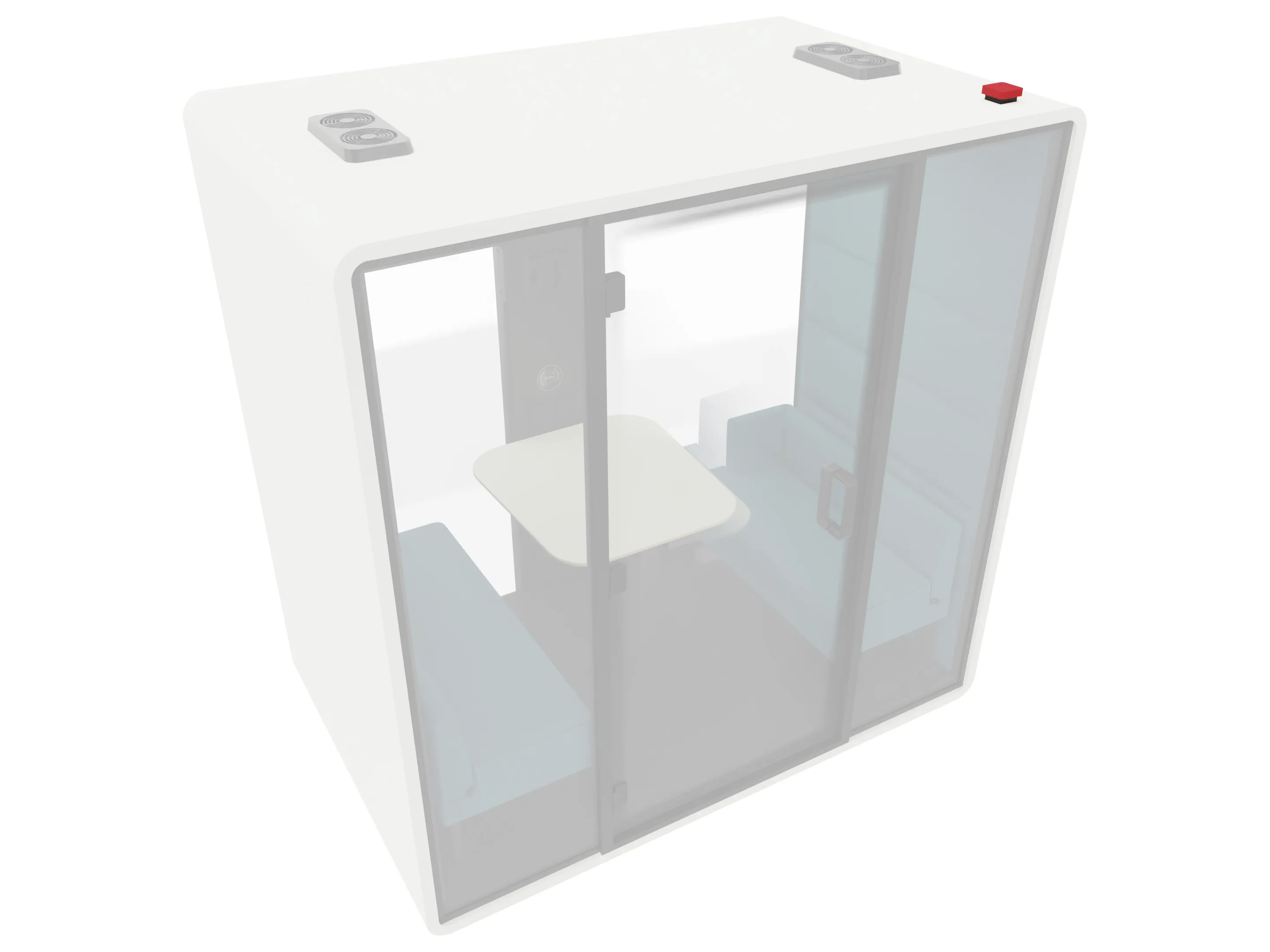 Akoestische module: afmeting: 2210x1430x2300mm (BxDxH). Automatisch verlichting+ventilatie: 4 fans, 4x 80m3/h. Voorbereid voor sprinkler+rookdetector, 2x stopcontact, zonder inrichting, Staat op stelvoetjes, ingebouwde wielen en grondverankering