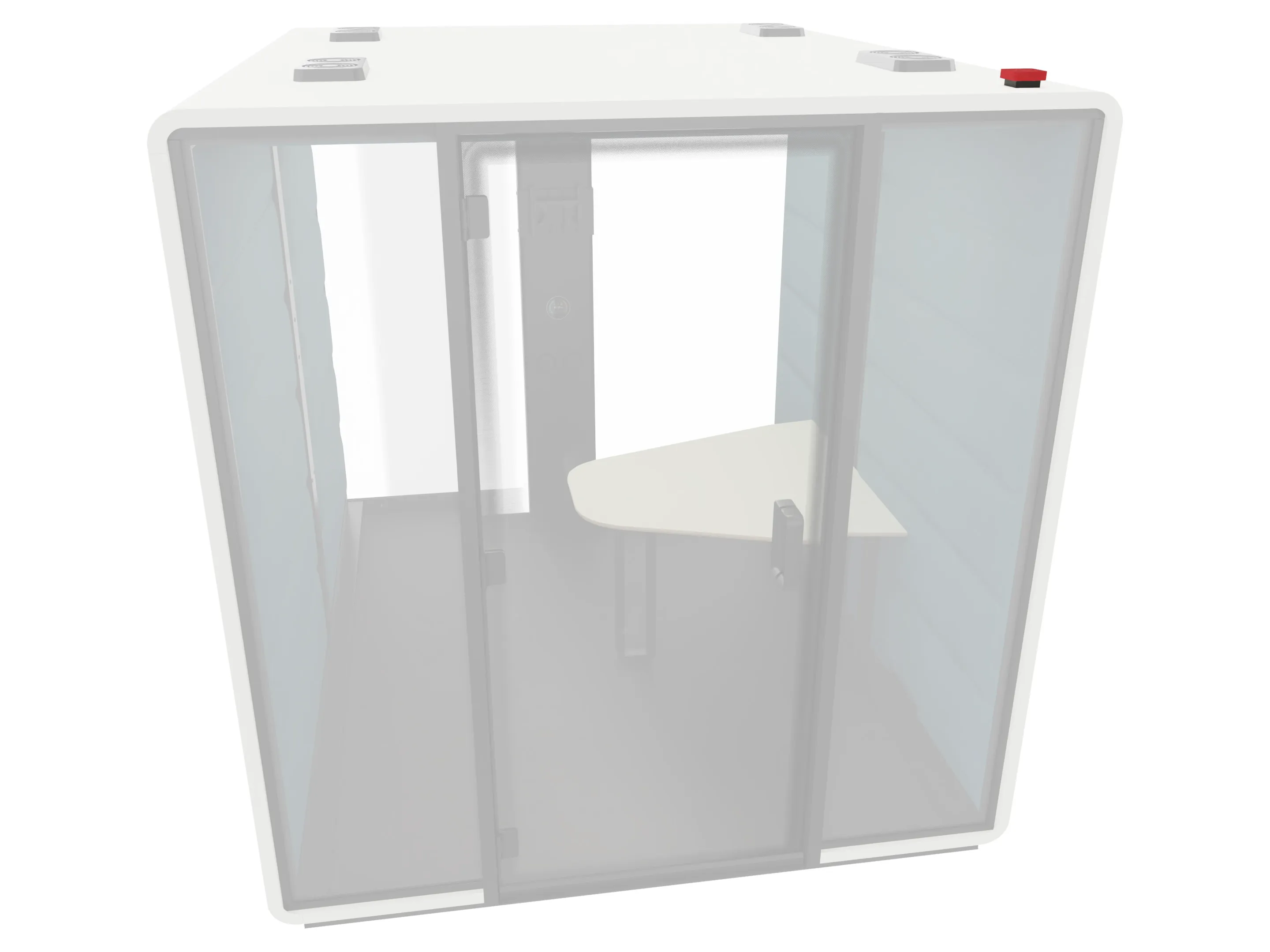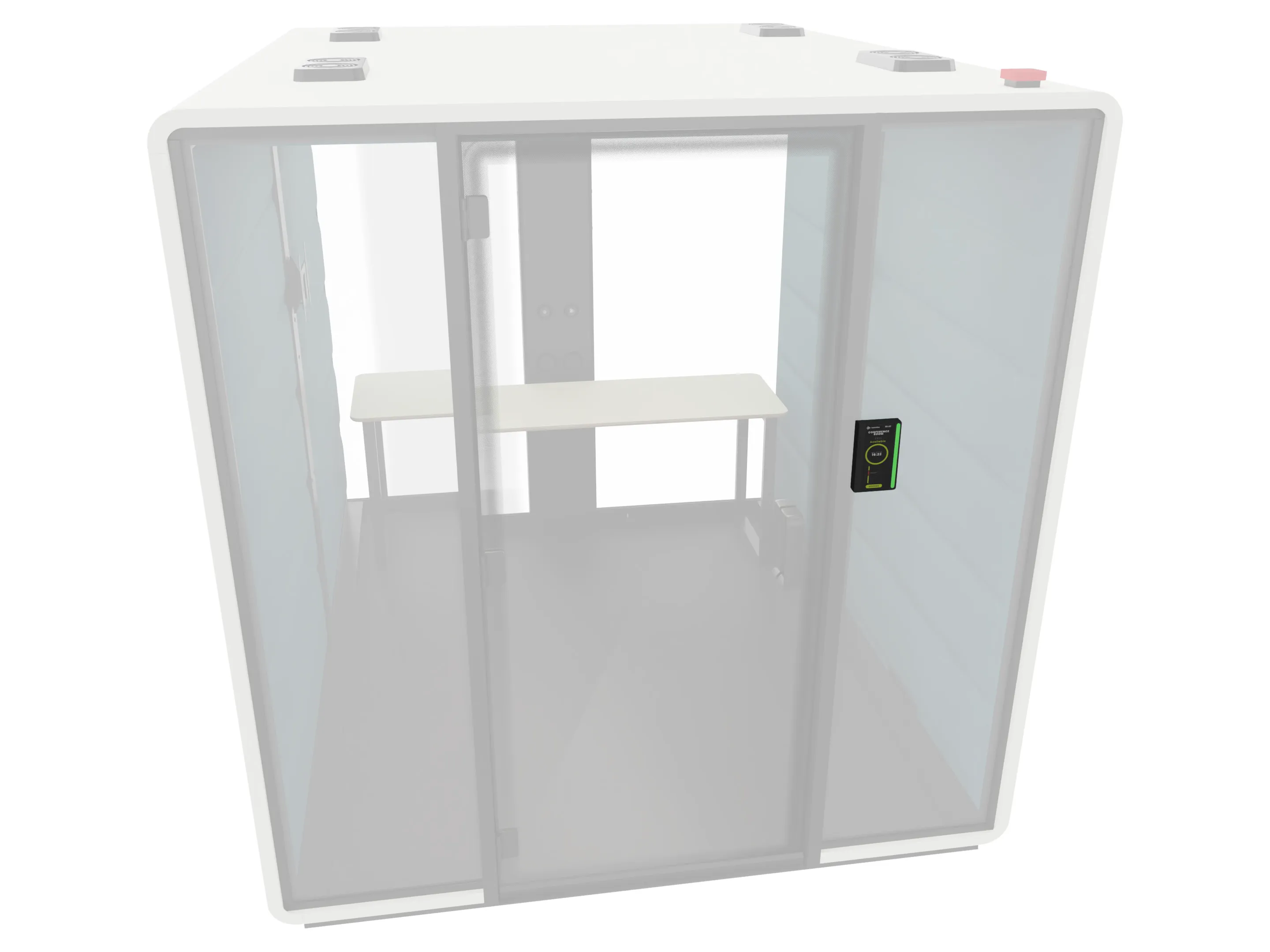 Akoestische module: afmeting: 2210x2820x2300mm (BxDxH). Automatisch verlichting+ventilatie: 8 fans, 8x 80m3/h. Voorbereid voor sprinkler+rookdetector, 2x stopcontact, zonder inrichting, Gelijkvloers, staat op stelvoetjes en grondverankering