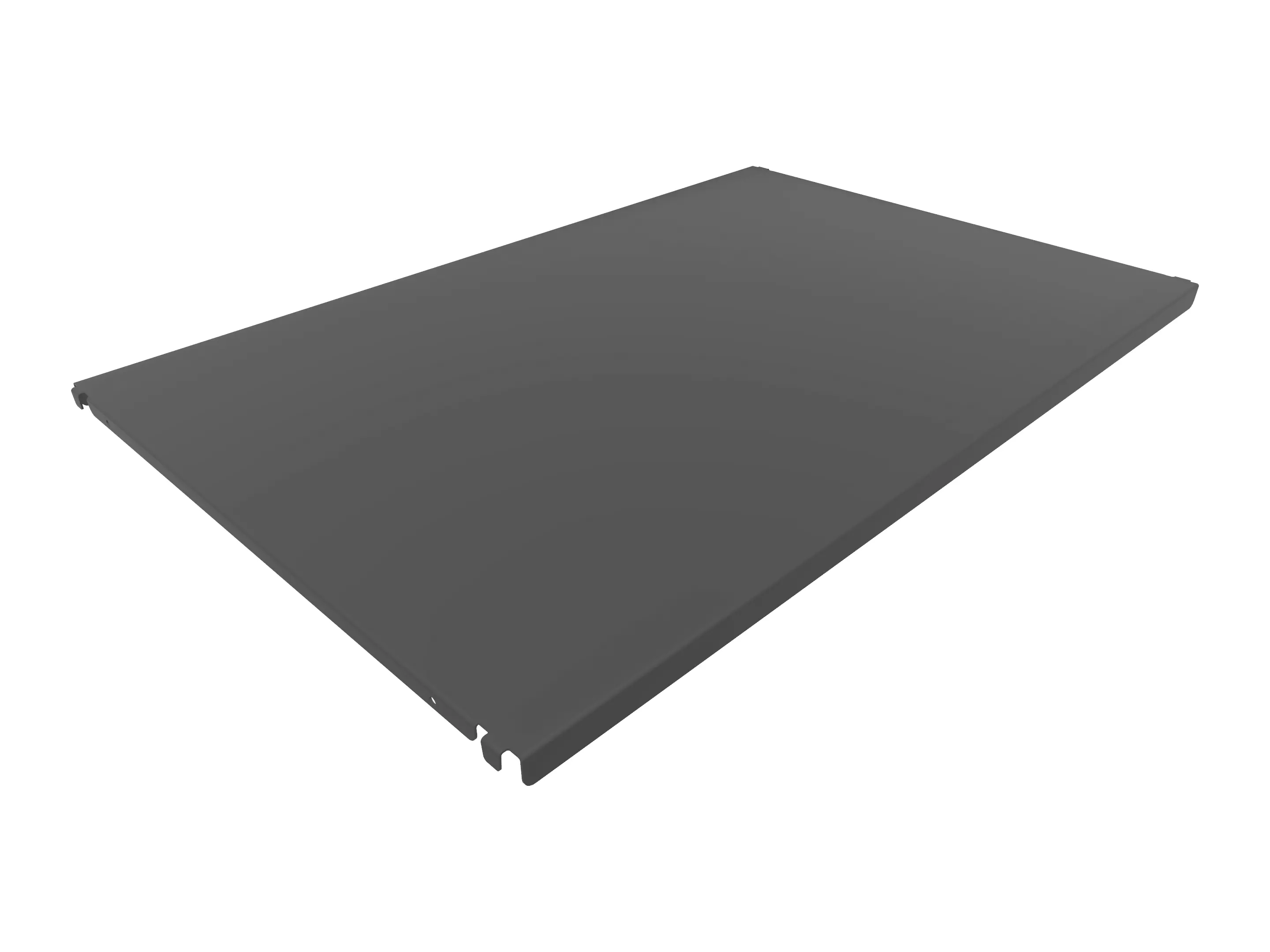 Stalen schuifdeurkast met 3 stalen schuifdeuren, 3 stalen legborden en een eiken bodemplaat en topblad op 4 pootjes. Er kunnen geen extra legborden worden toegevoegd.