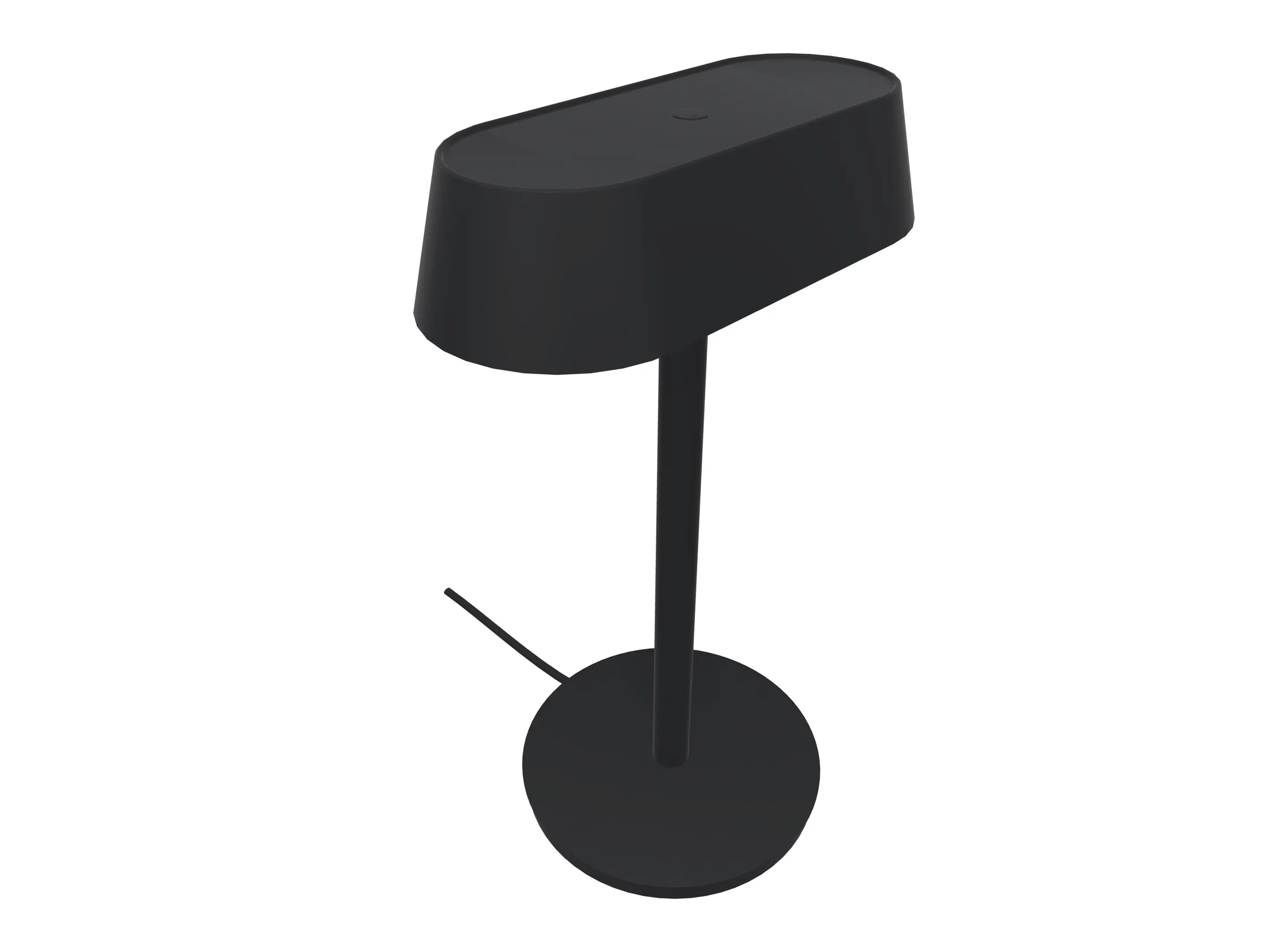 Tafellamp met een Ø 165mm ronde voet en ovale lampenkap van 232 x 107mm (BxD) inclusief geïntegreerde dimbare, niet-vervangbare LED-lamp. Hoogte lamp 365mm.