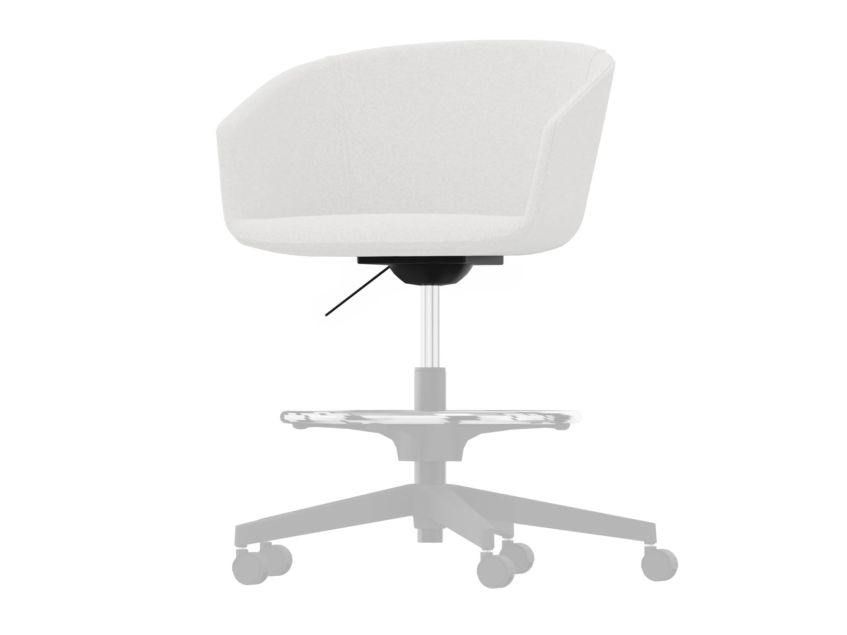 Volledig gestoffeerde kuip, 5-teens voetkruis met wielen voorzien van remfunctie, draaibaar, hoogte instelbaar, incl. voetenring met self-locking system voor het snel en gemakkelijk aanpassen van de hoogte