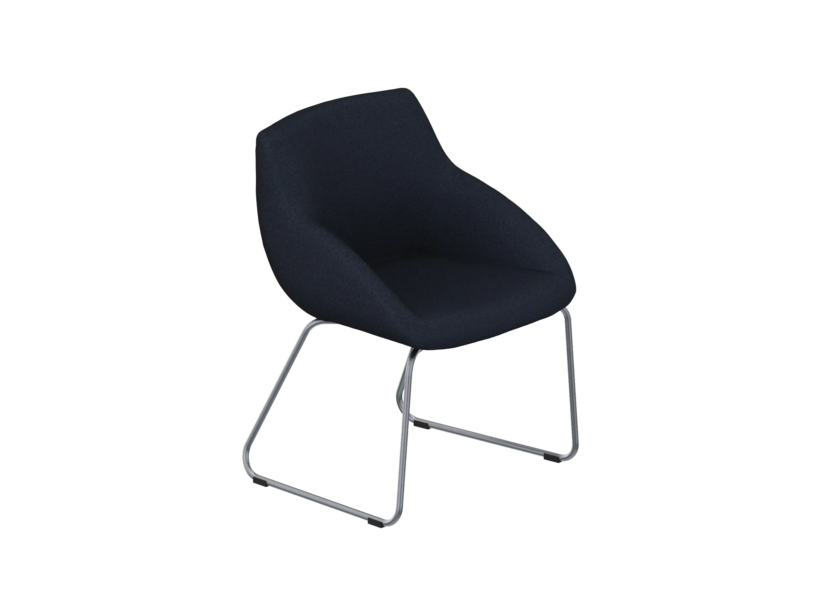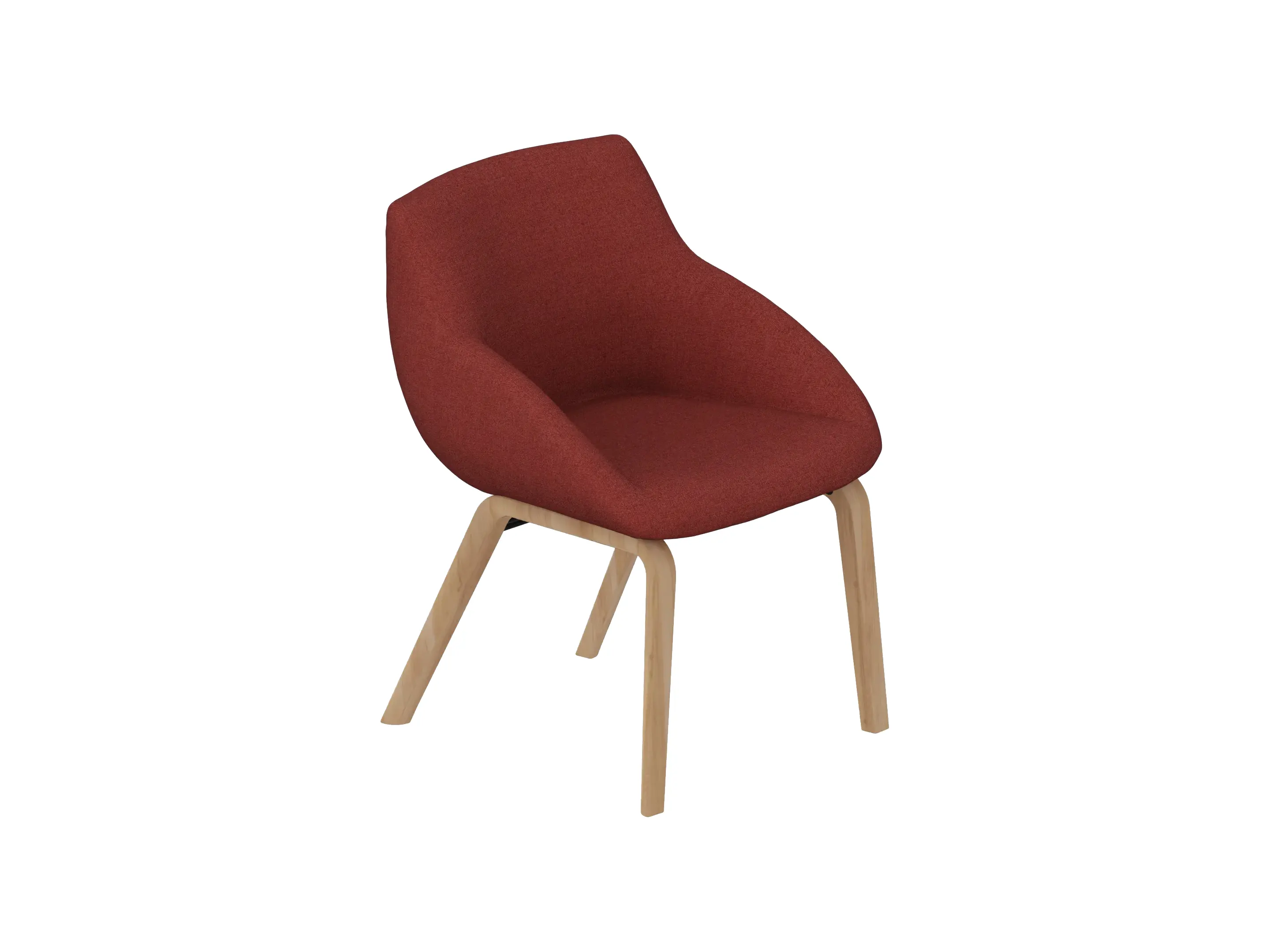 Vergaderstoel met volledig gestoffeerde kuip en op houten 4-poots onderstel.