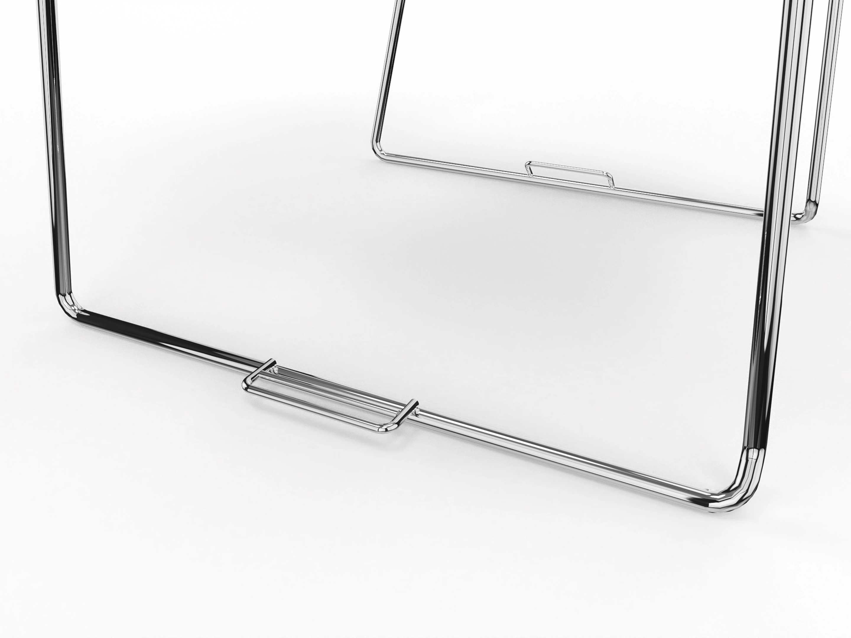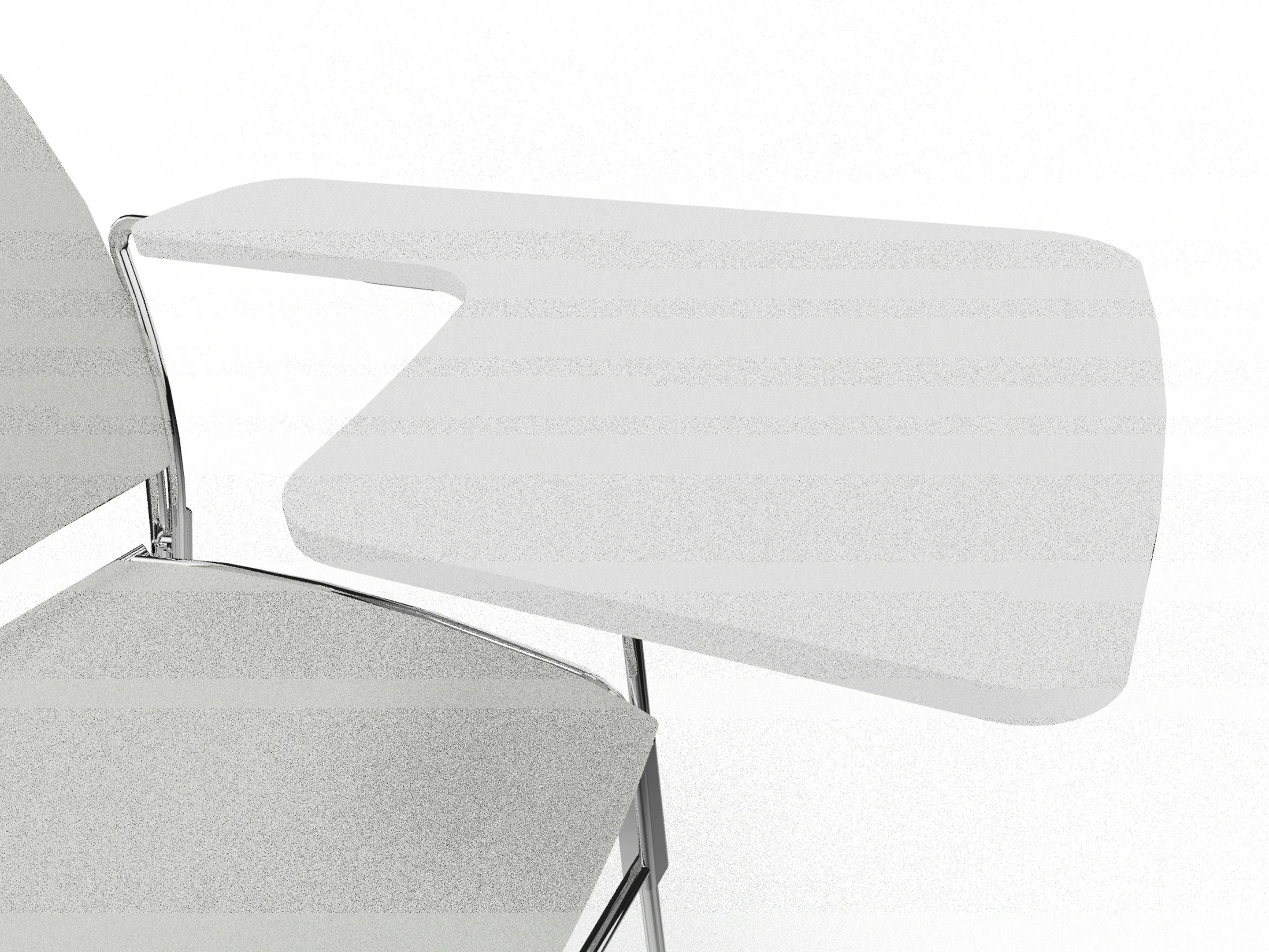 Stoel met sledeframe en met een ongestoffeerde rug en zitting. Stapelbaar tot 25 stoelen op transportwagen, 6 stuks vrijstaand.
