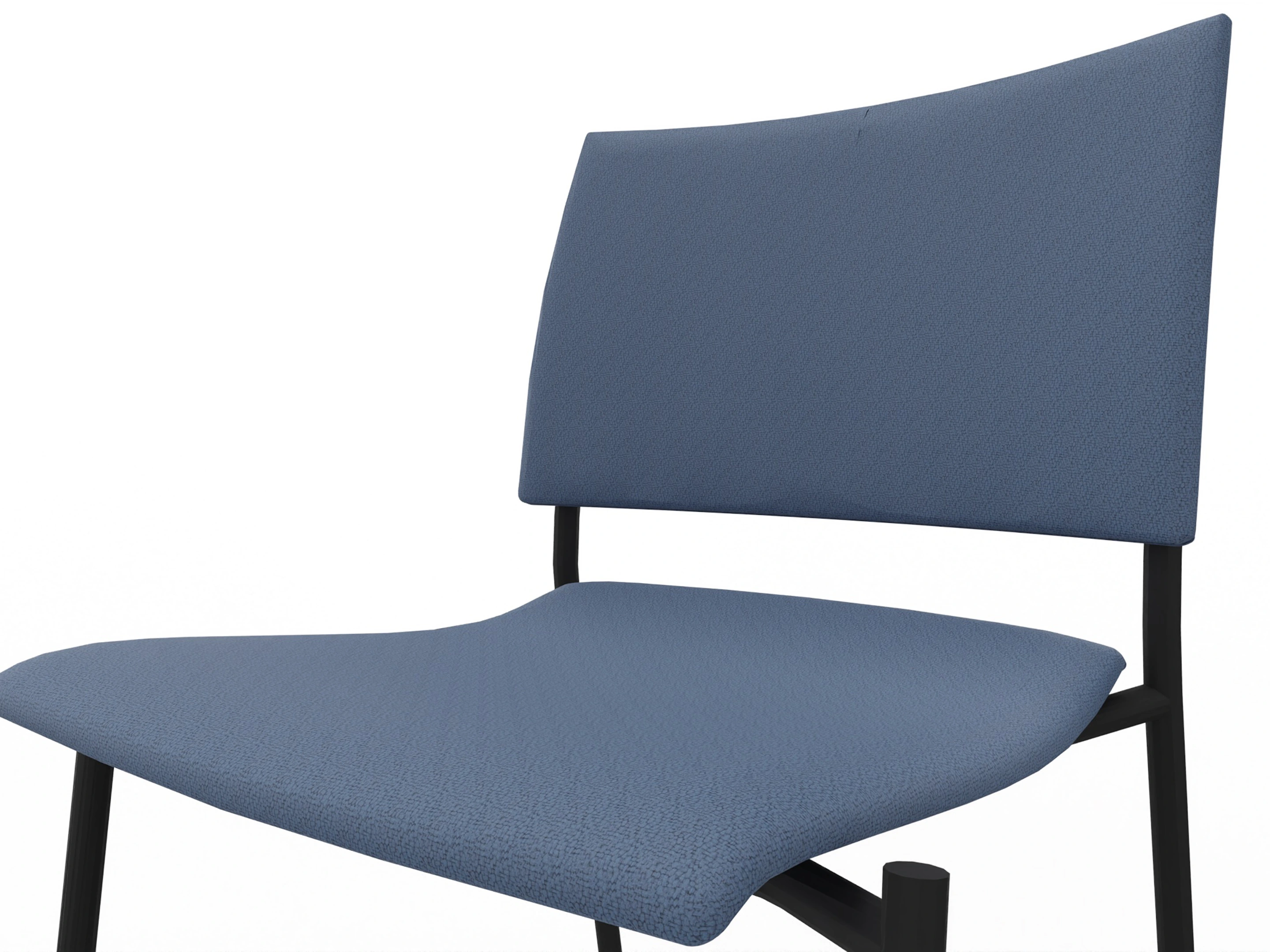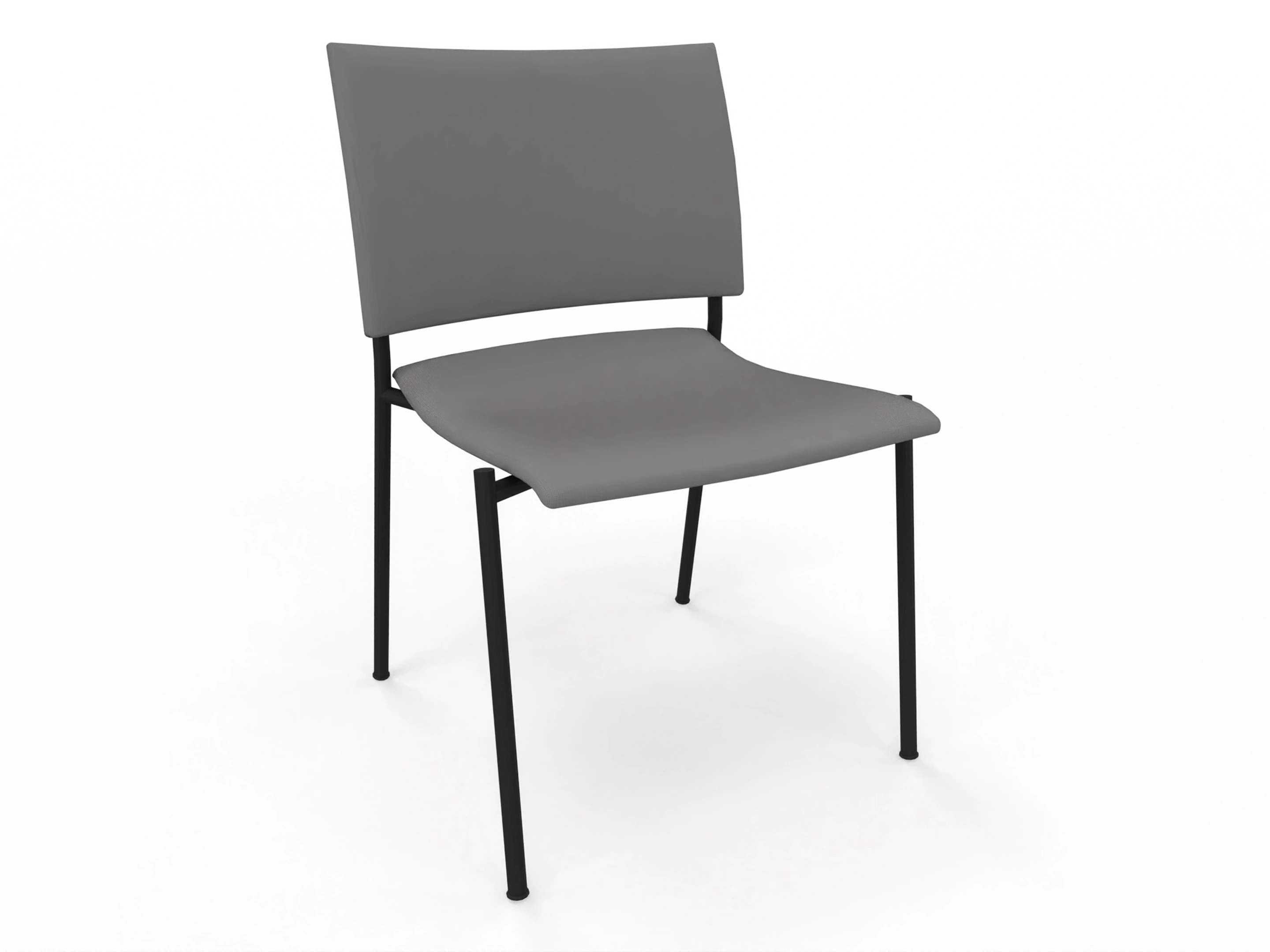 4-poots frame op kunststof glijders met een volledig gestoffeerde zitting en lage rug. Inclusief armleggers. Stapelbaar tot 12 stuks.