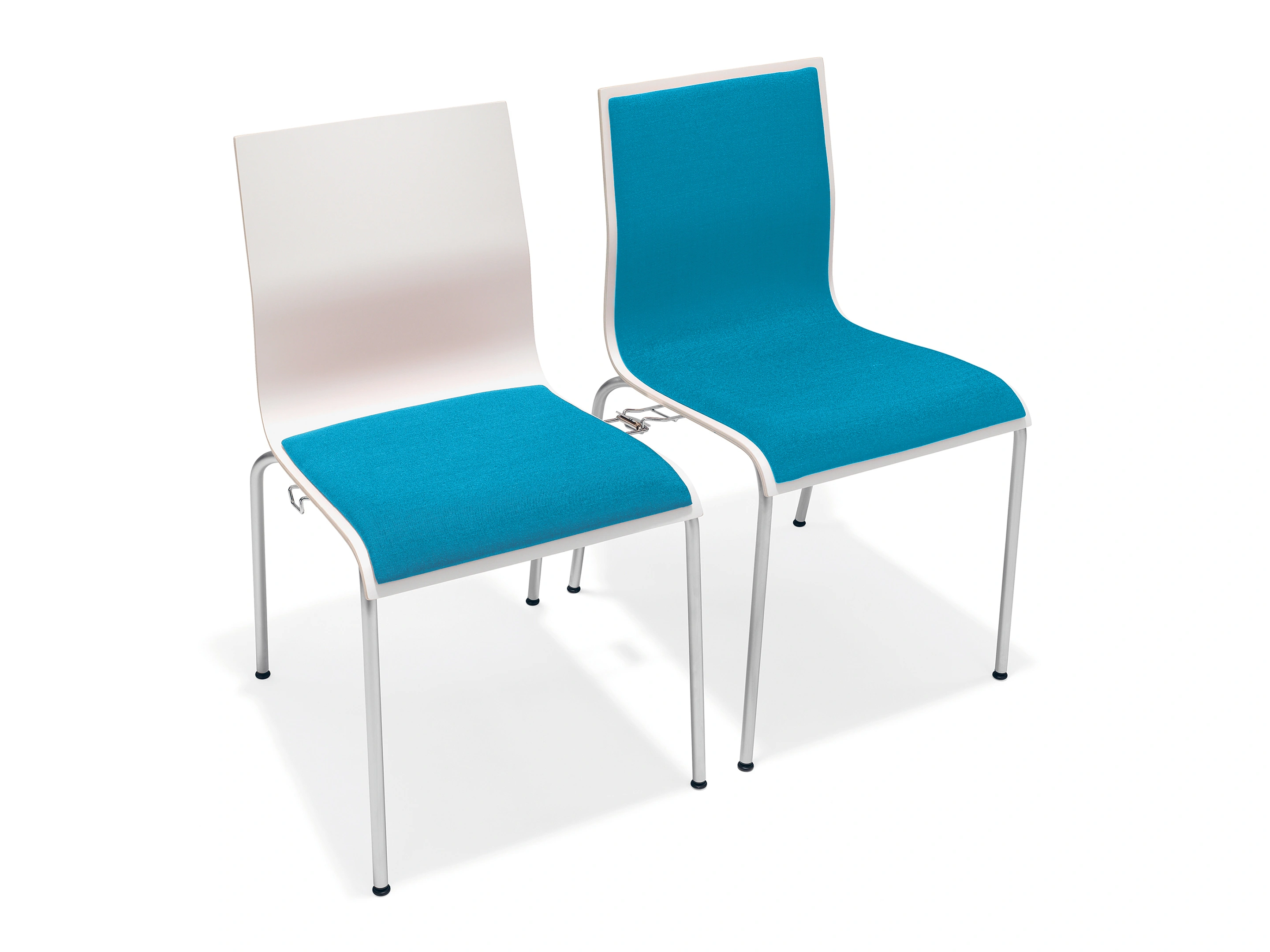 4-poots frame op kunststof glijders met een melamine kuip zonder stoffering. Exclusief armleggers. Stapelbaar tot 12 stuks op transportwagen.