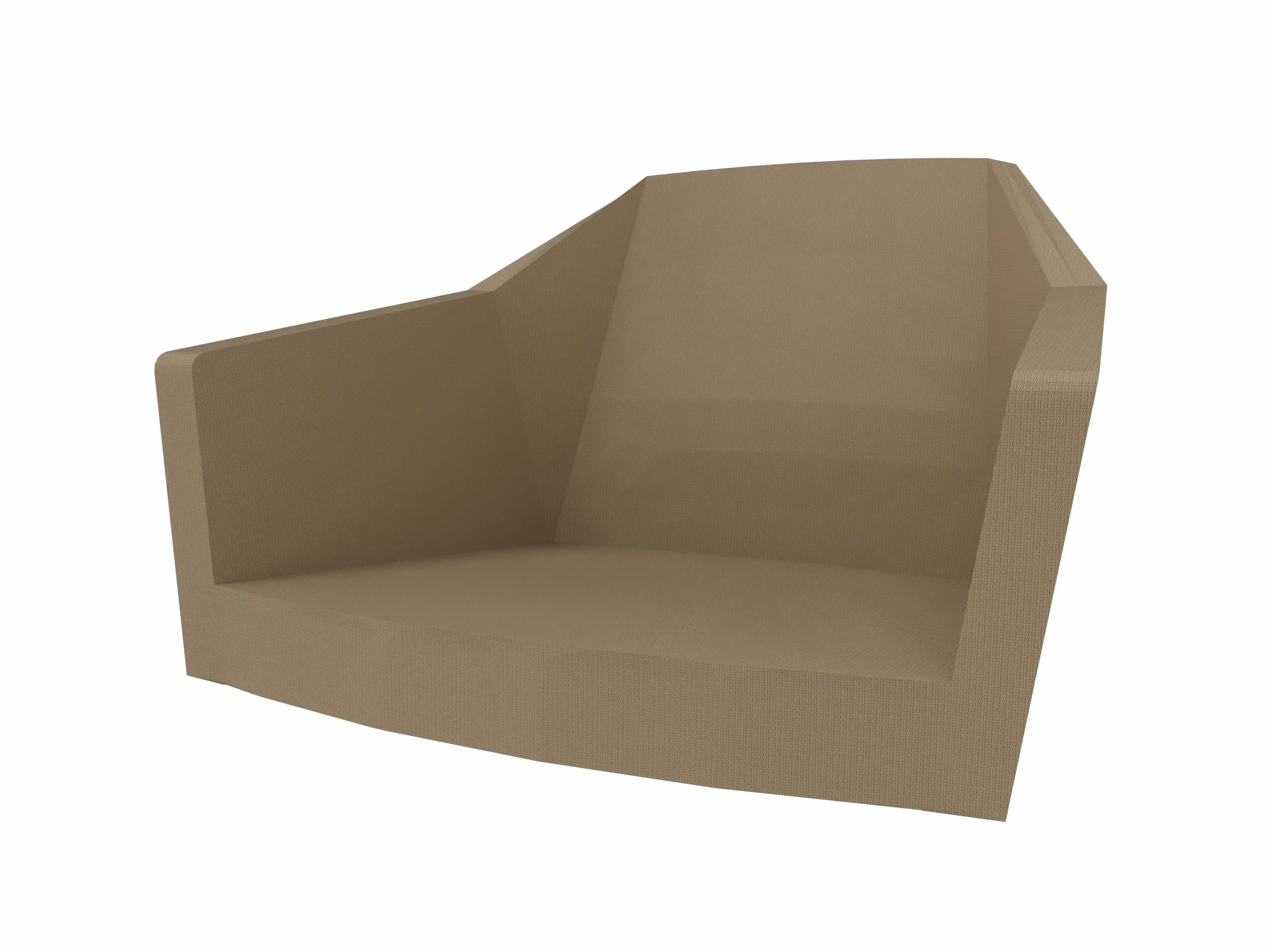 Volledig gestoffeerde kuip met een rughoogte van 93cm, op 4-poots frame voorzien van kunststof glijders, met een zithoogte van 47cm.