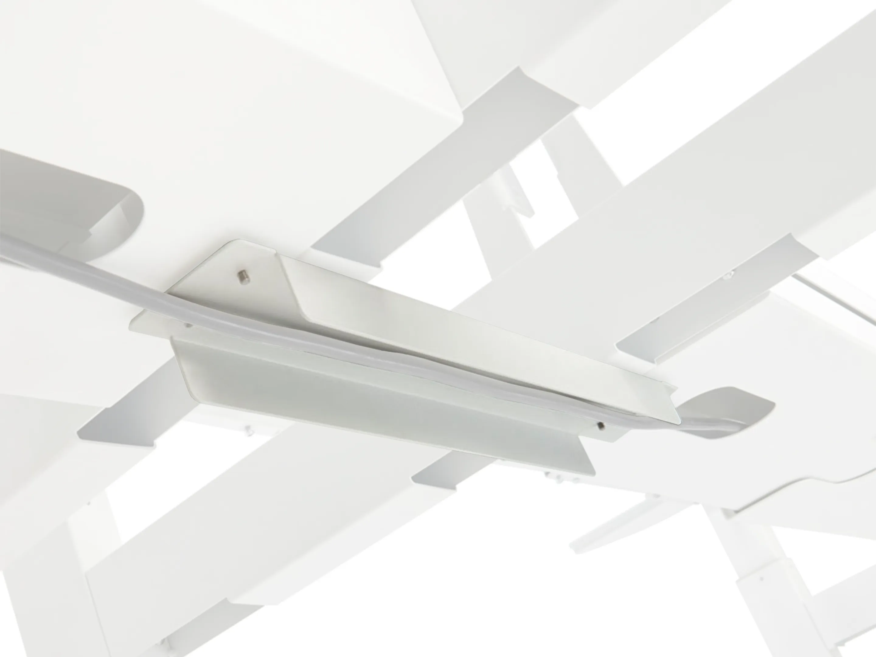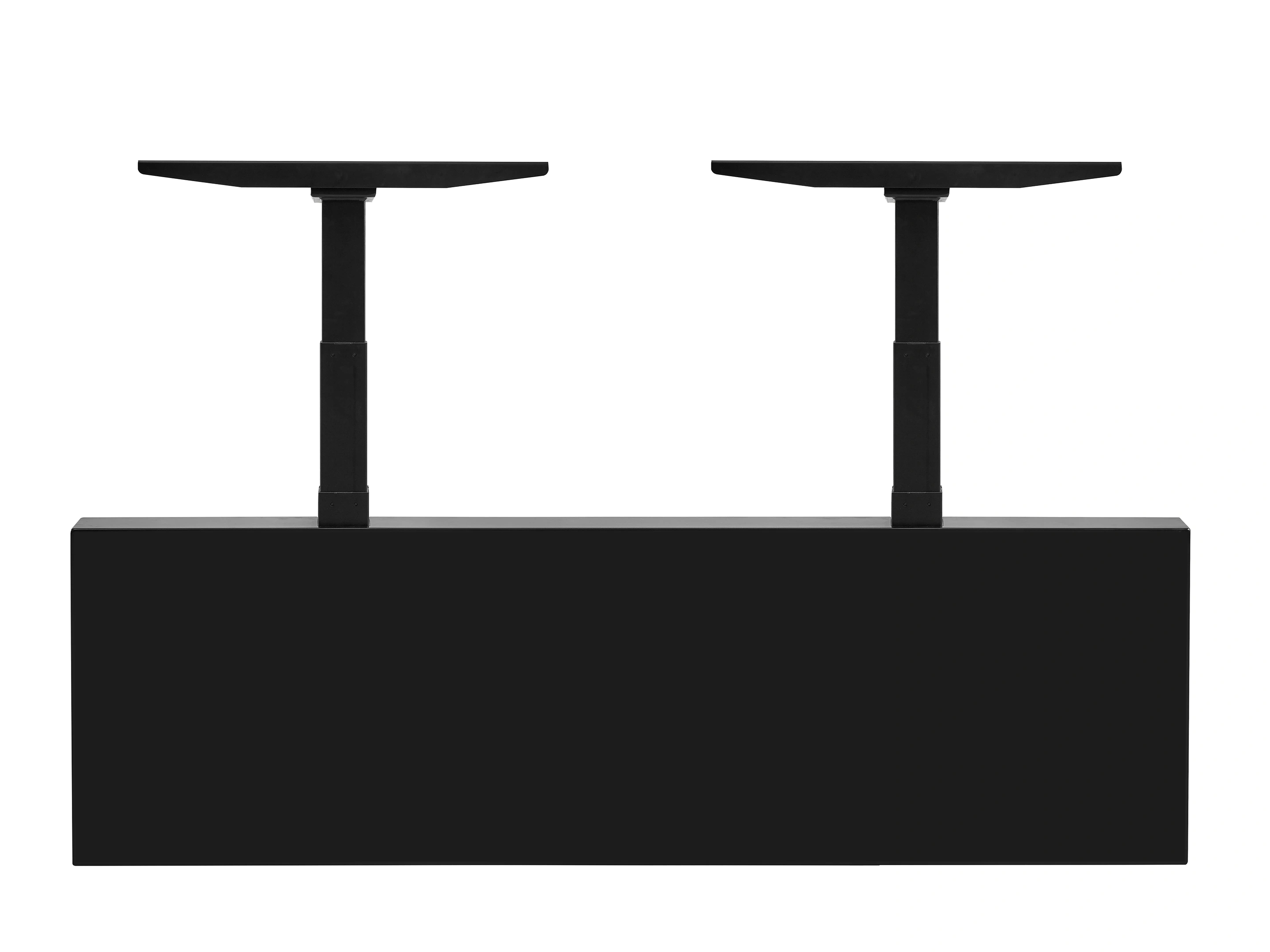 Duo bench onderstel voor breedte 108-180cm, Hoogte instelbaar 65 tot 130cm. 3 koloms onderstel met 2x 2 motoren. Incl. Centrale kabelgoot, excl. bedieningspaneel en beugels scheidingswand.