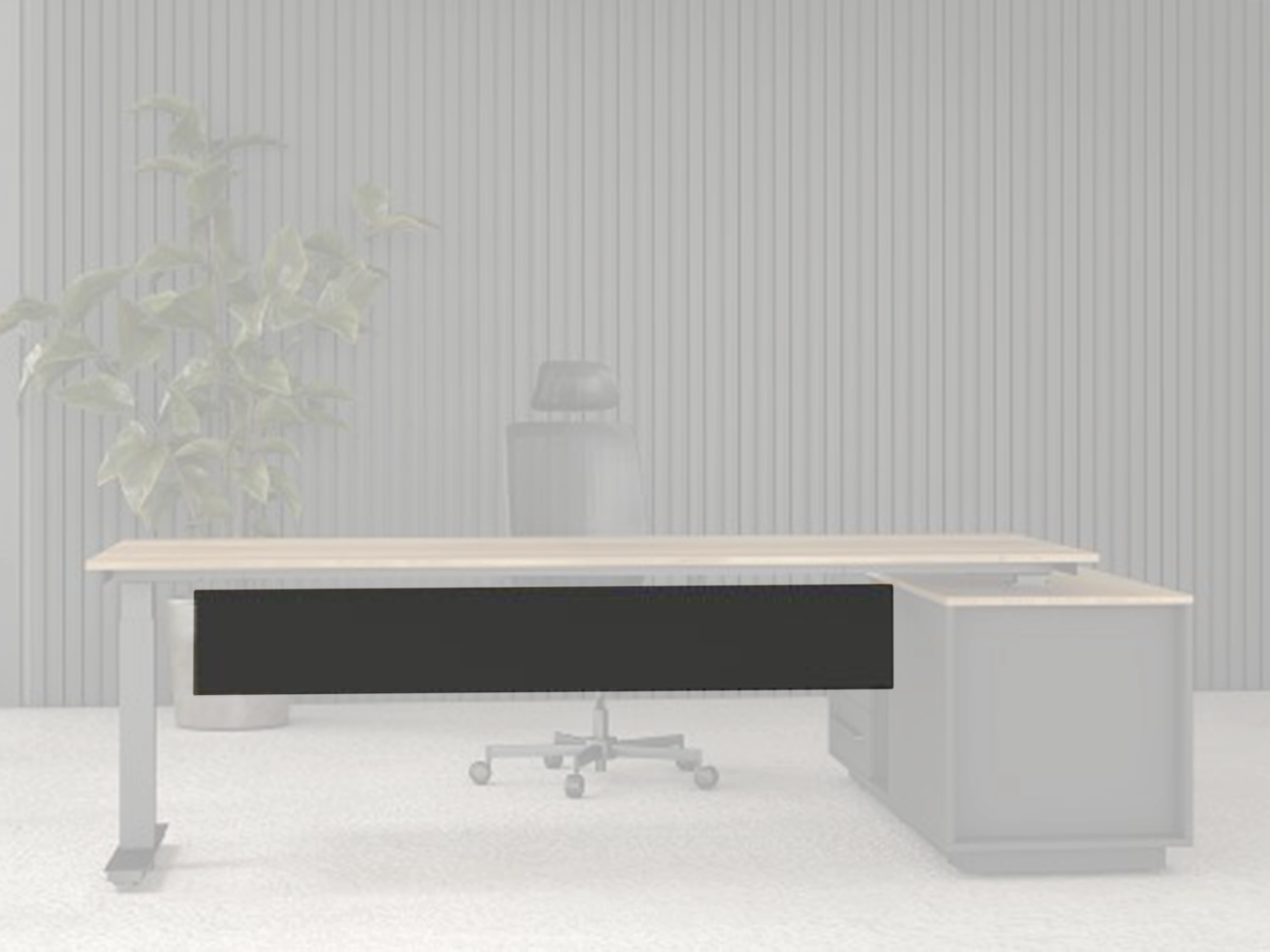 Complete set incl. bureau en dockingkast (rechts geplaatst). Totale afmeting 2240x1800mm. Kast is voorzien van 3 laden en heeft een afmeting van 2000x900mm. Bureau is elektrisch hoogte instelbaar tussen 65-130cm.