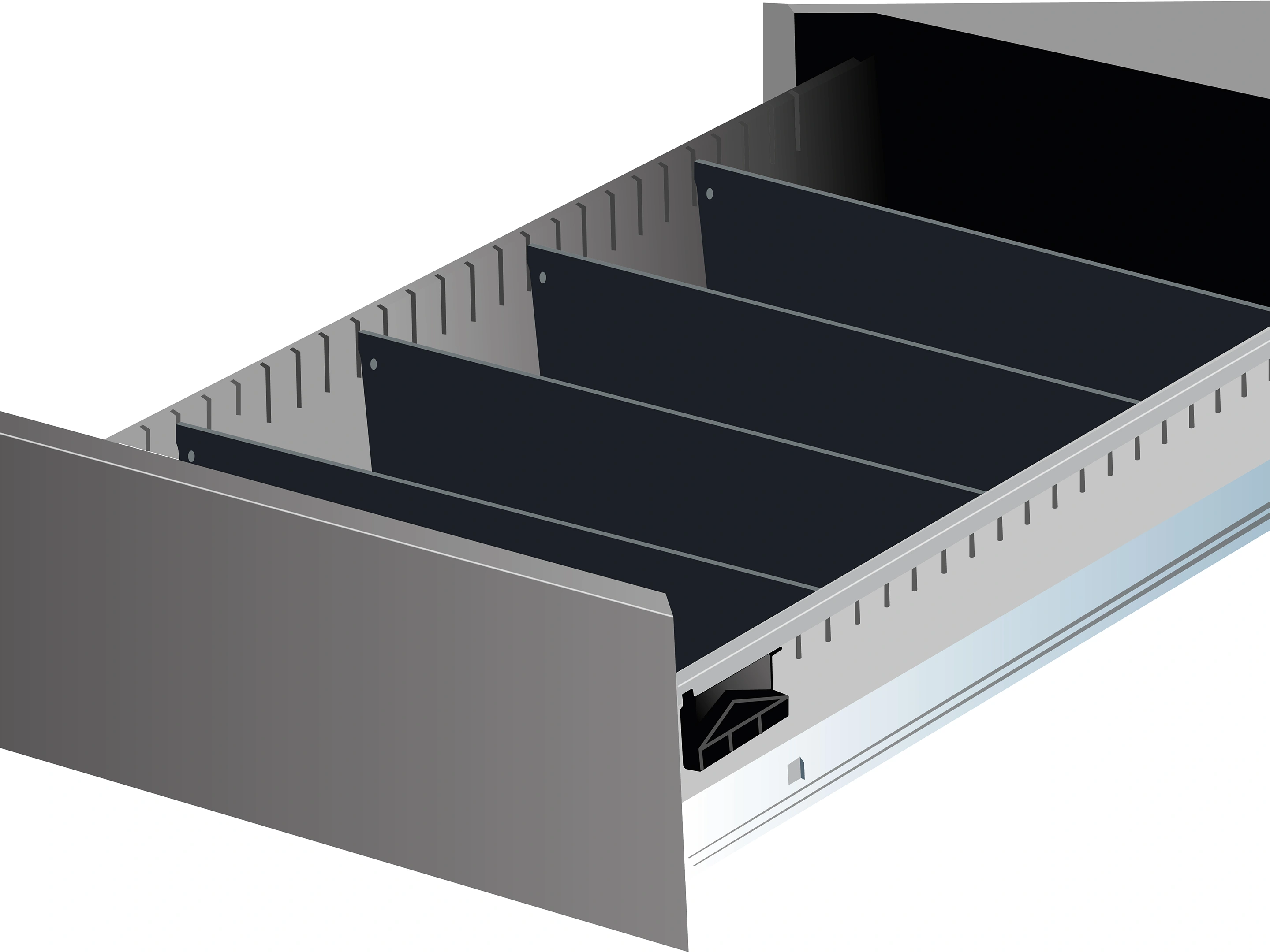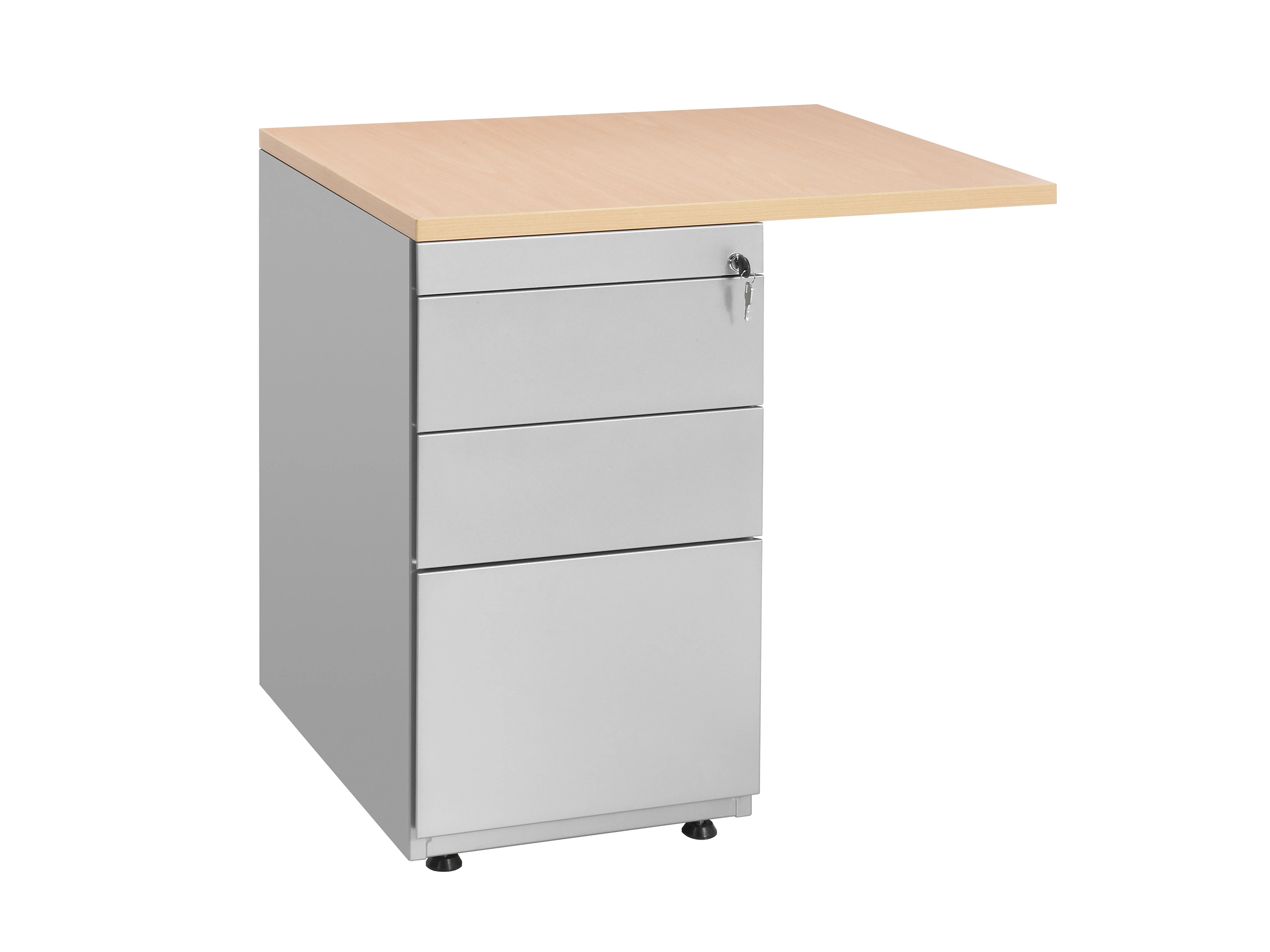 Ladeblok is voorzien van stelvoeten, en telescopische geleiding - Voorzien van 2 sleutels - 1x hangmappenlade (onderste), 2x gelijke lade, bovenste lade is een pennenlade - Incl. melamine top (25mm), van 80cm breed.