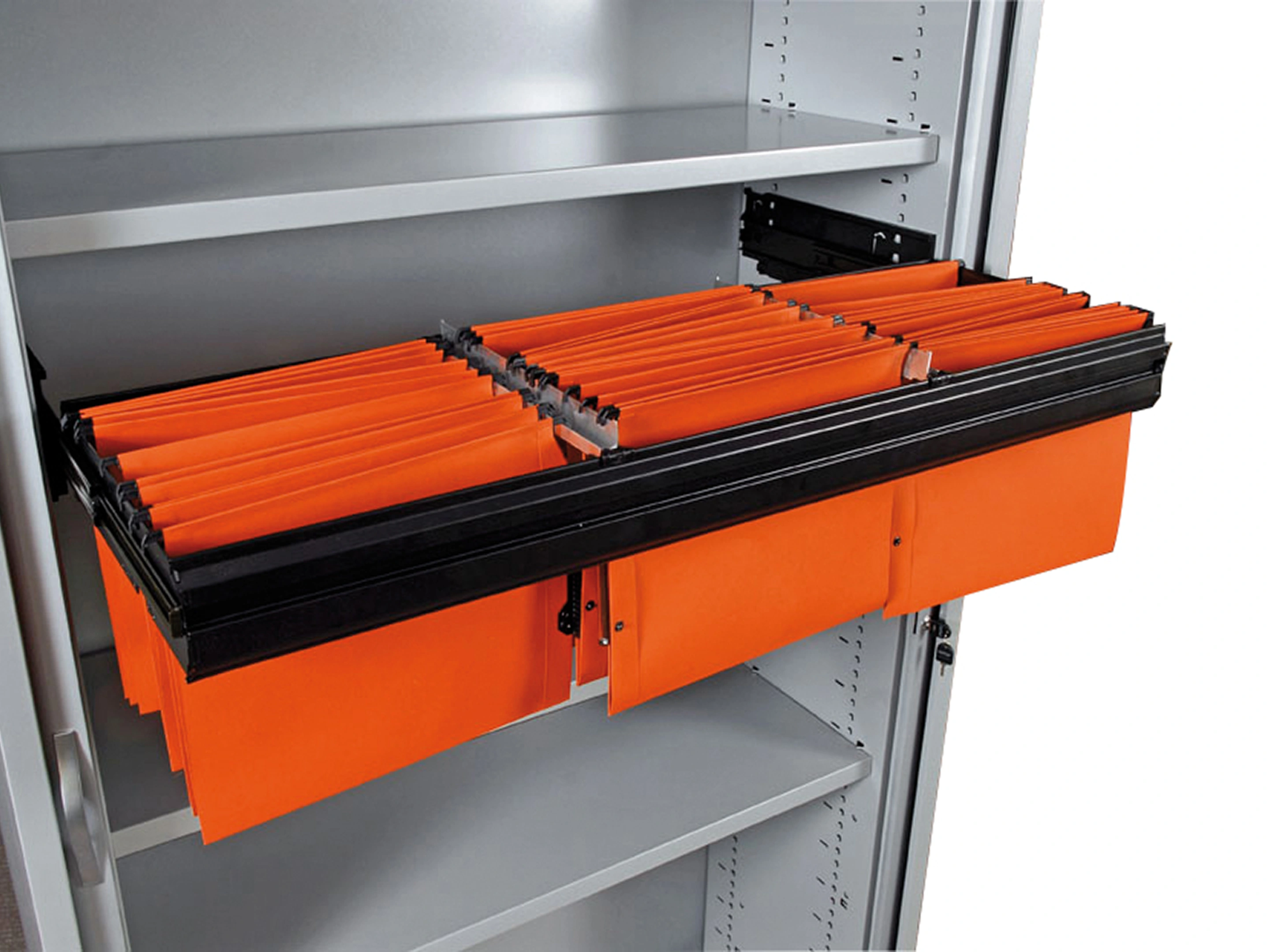 Voorkomt kantelen van de archiefkast. Door deze beveiliging kan er maximaal één frame tegelijkertijd uitgetrokken worden.