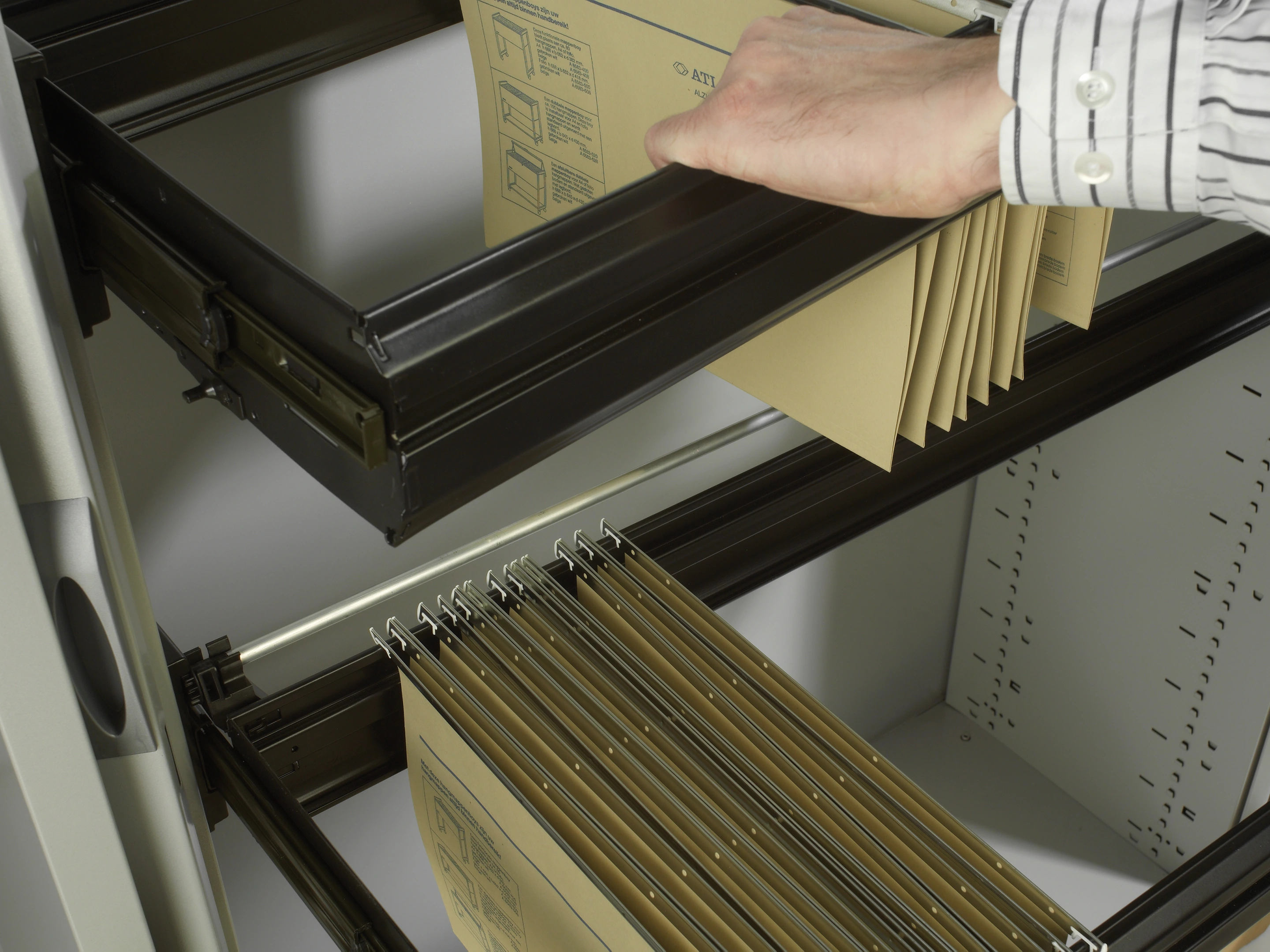 Voorkomt kantelen van de archiefkast. Door deze beveiliging kan er maximaal één frame tegelijkertijd uitgetrokken worden.