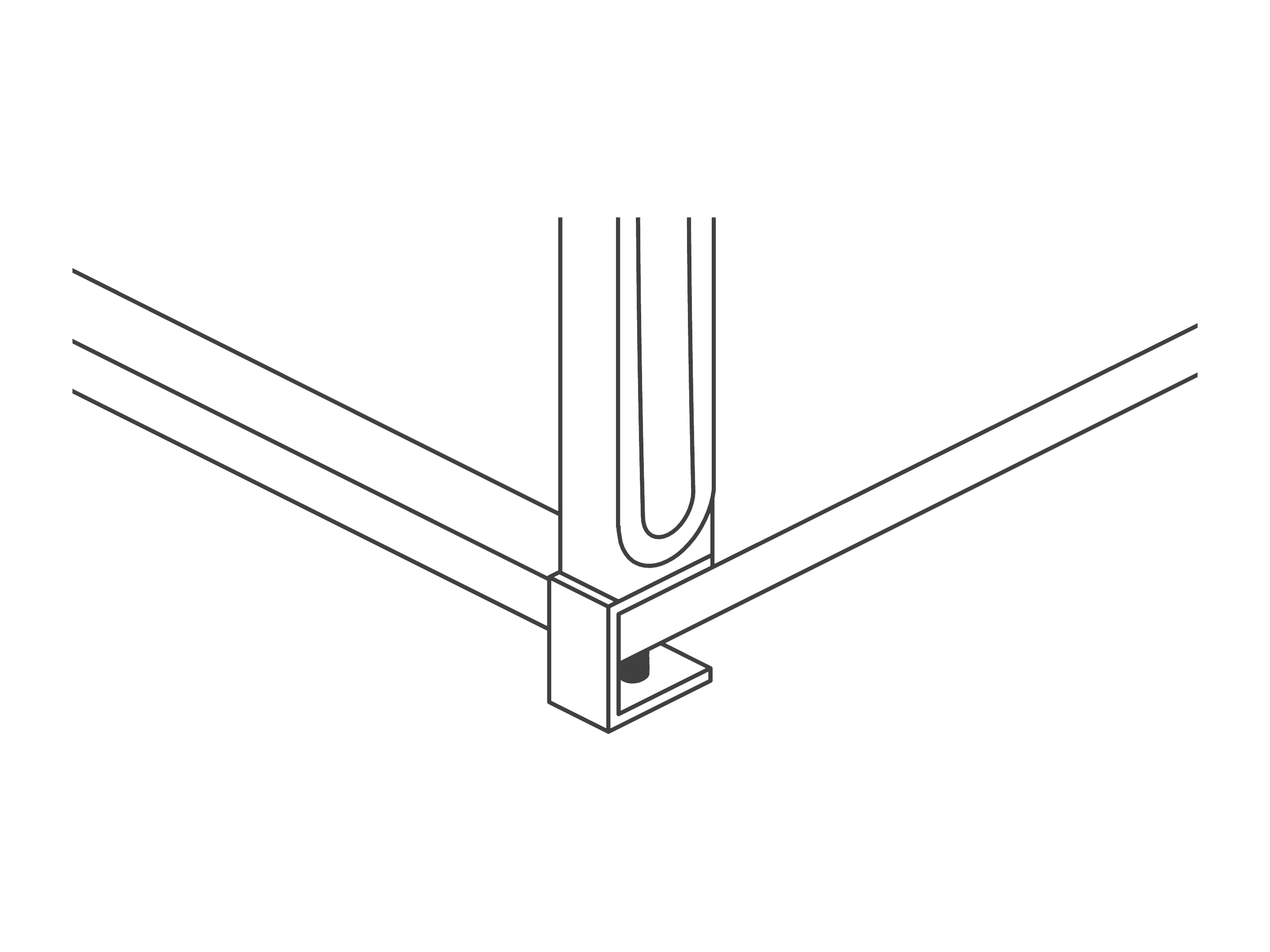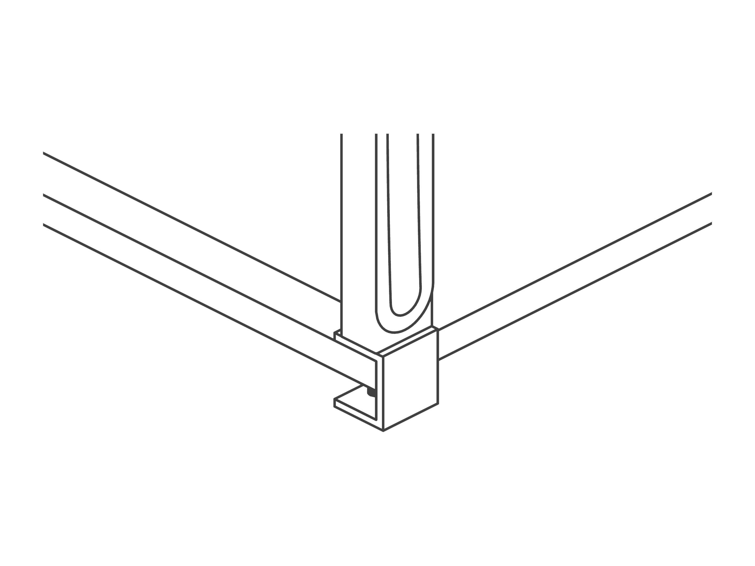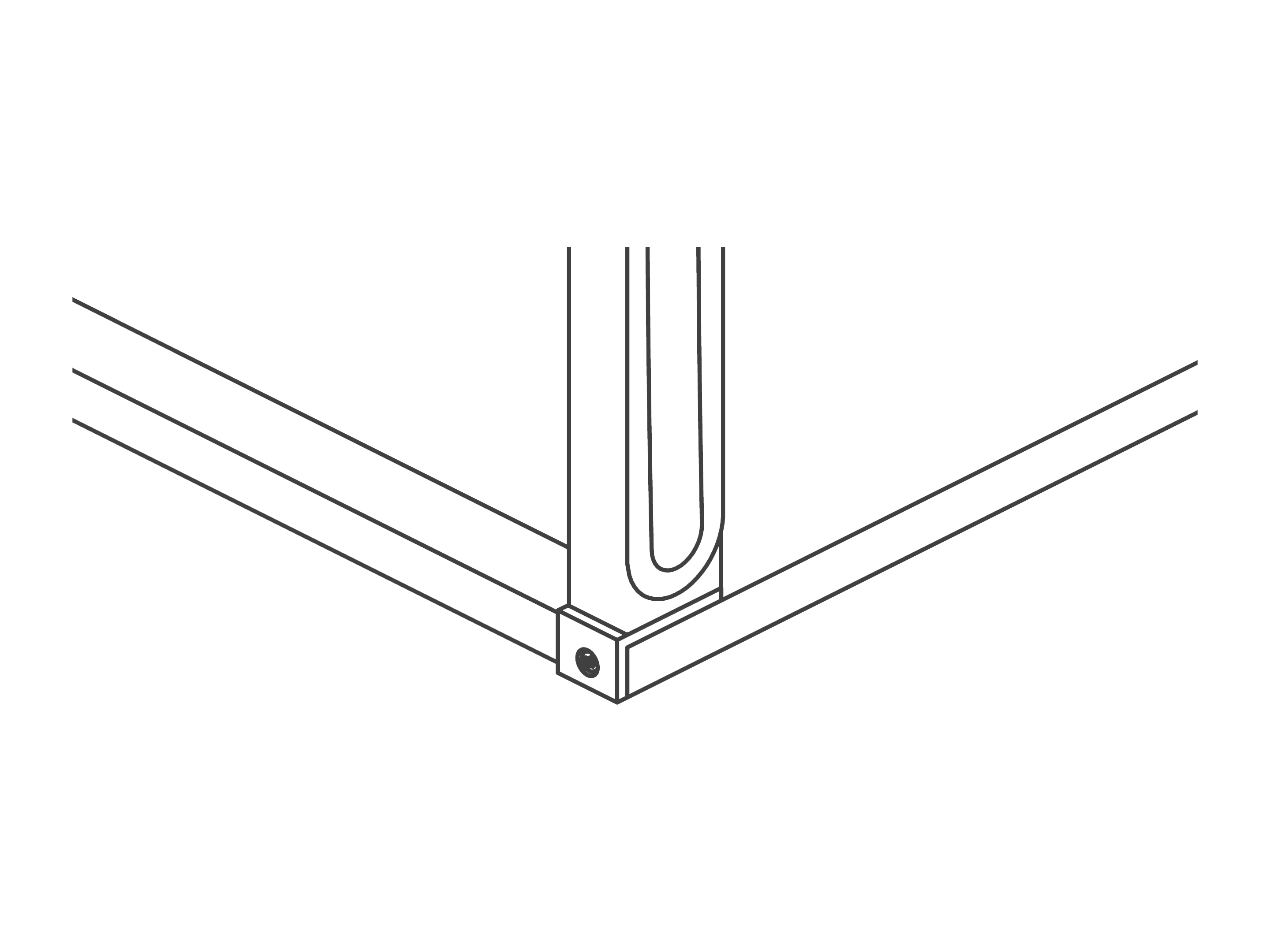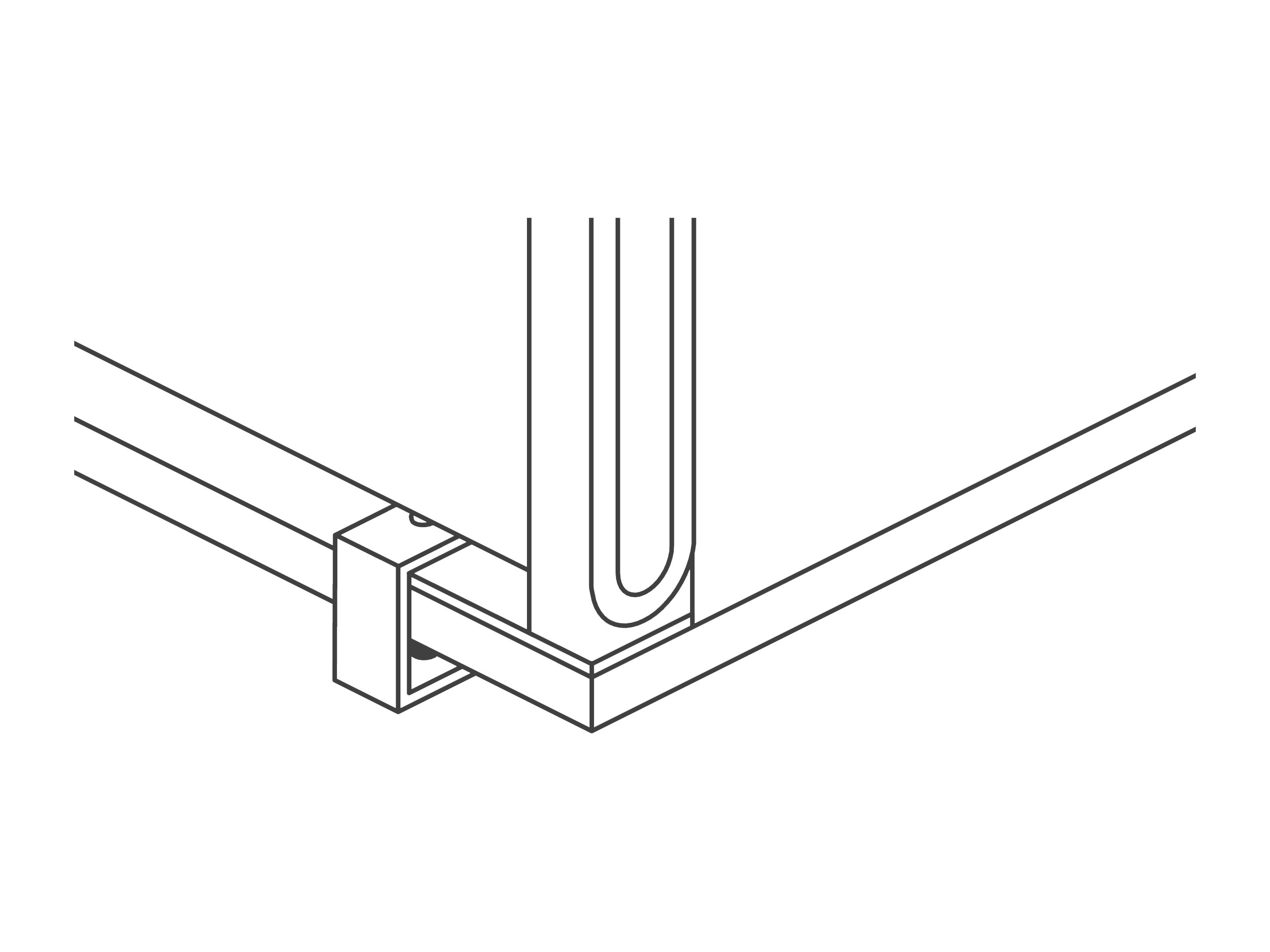 Voor opzet- en doorstekende wanden, per 2 stuks. Montage aan de achterzijde van het tafelblad. De maximale dikte van het blad bedraagd 35mm. 85mm uit de hoek vrij.