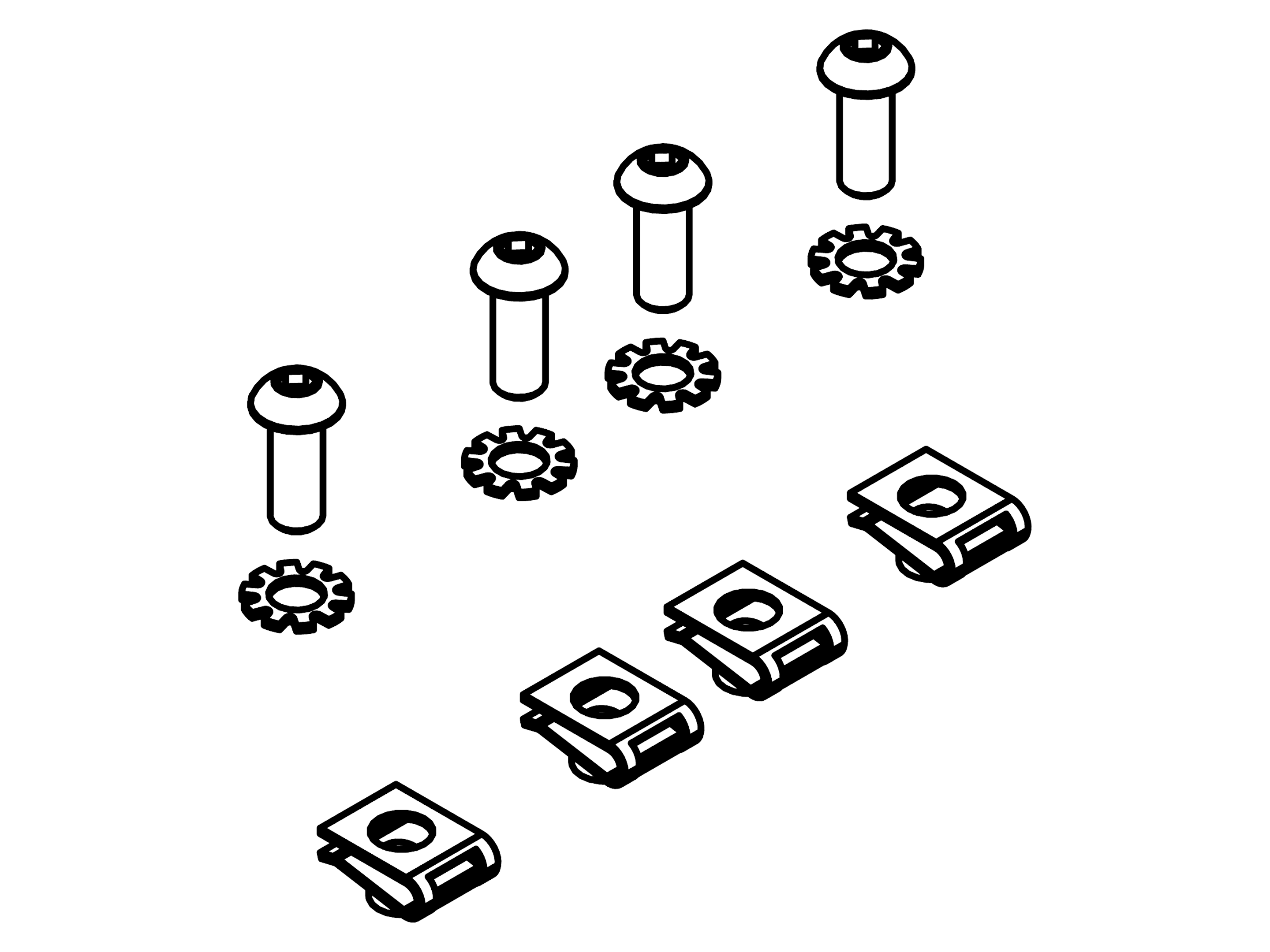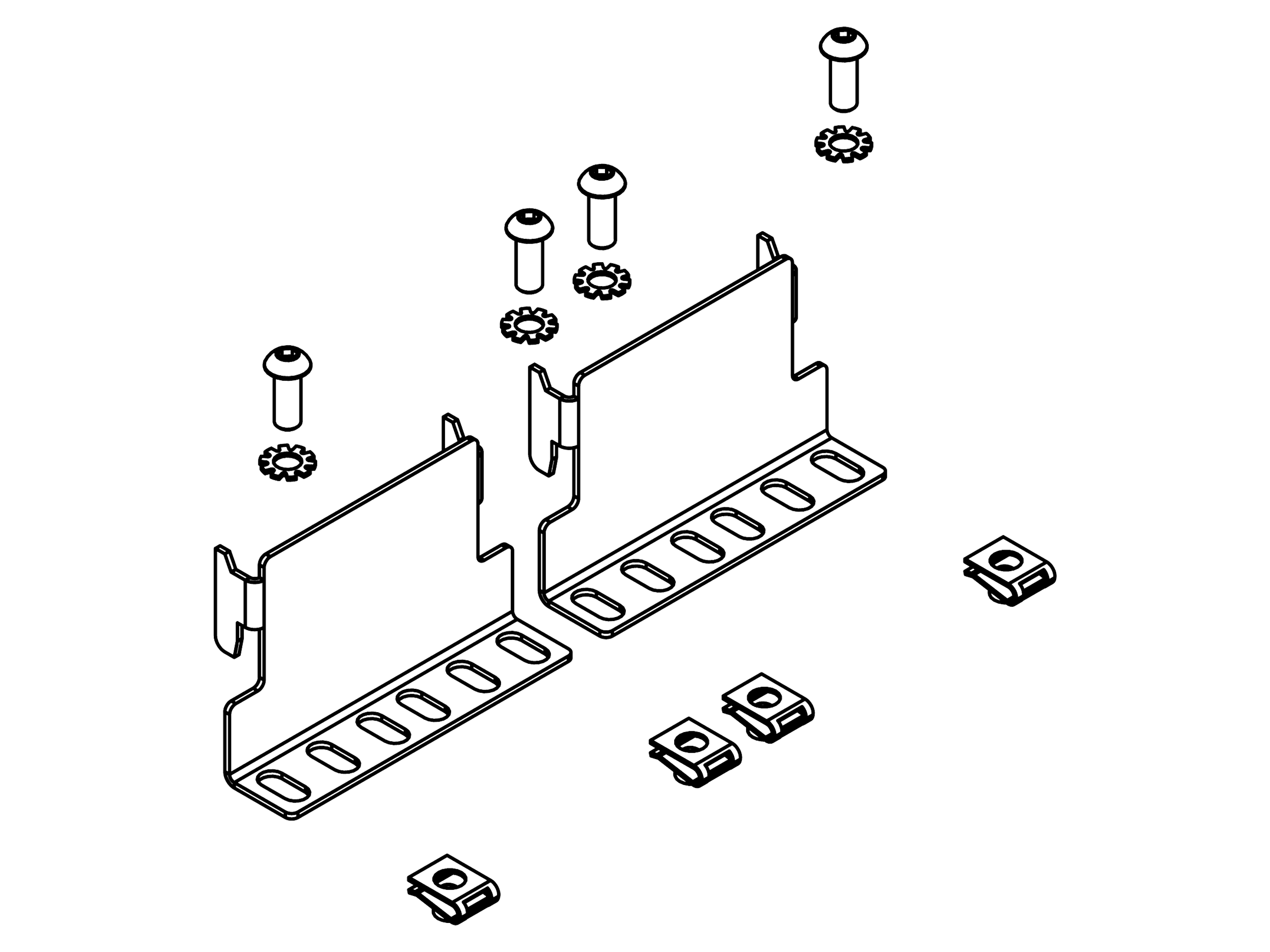 één benodigd per scherm, VESA max: 600x400mm. Voor het monteren van twee schermen, zijn twee sets nodig!