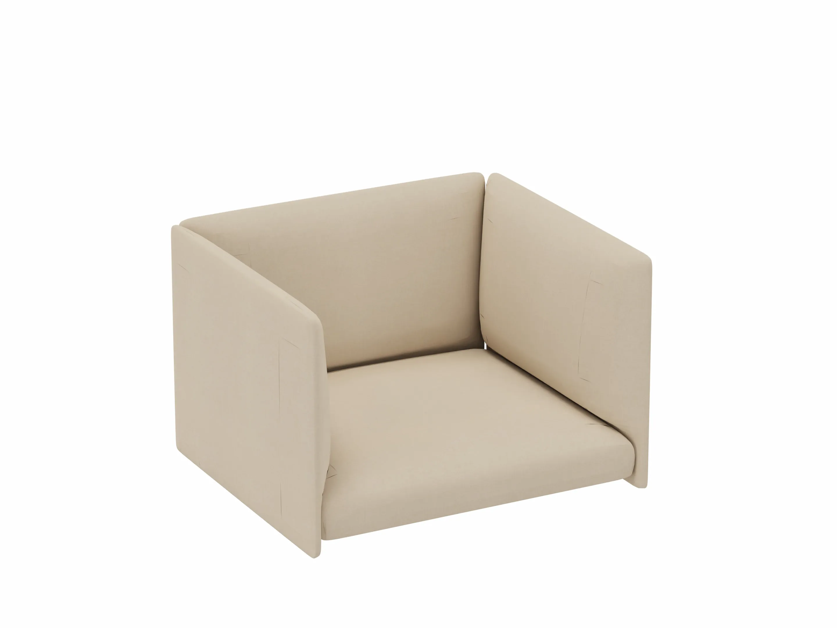 Volledig gestoffeerd zitelement toepasbaar op de Mino frames. Voorzien van een rugleuning en één armleuning (rechts geplaatst (zitperspectief)).