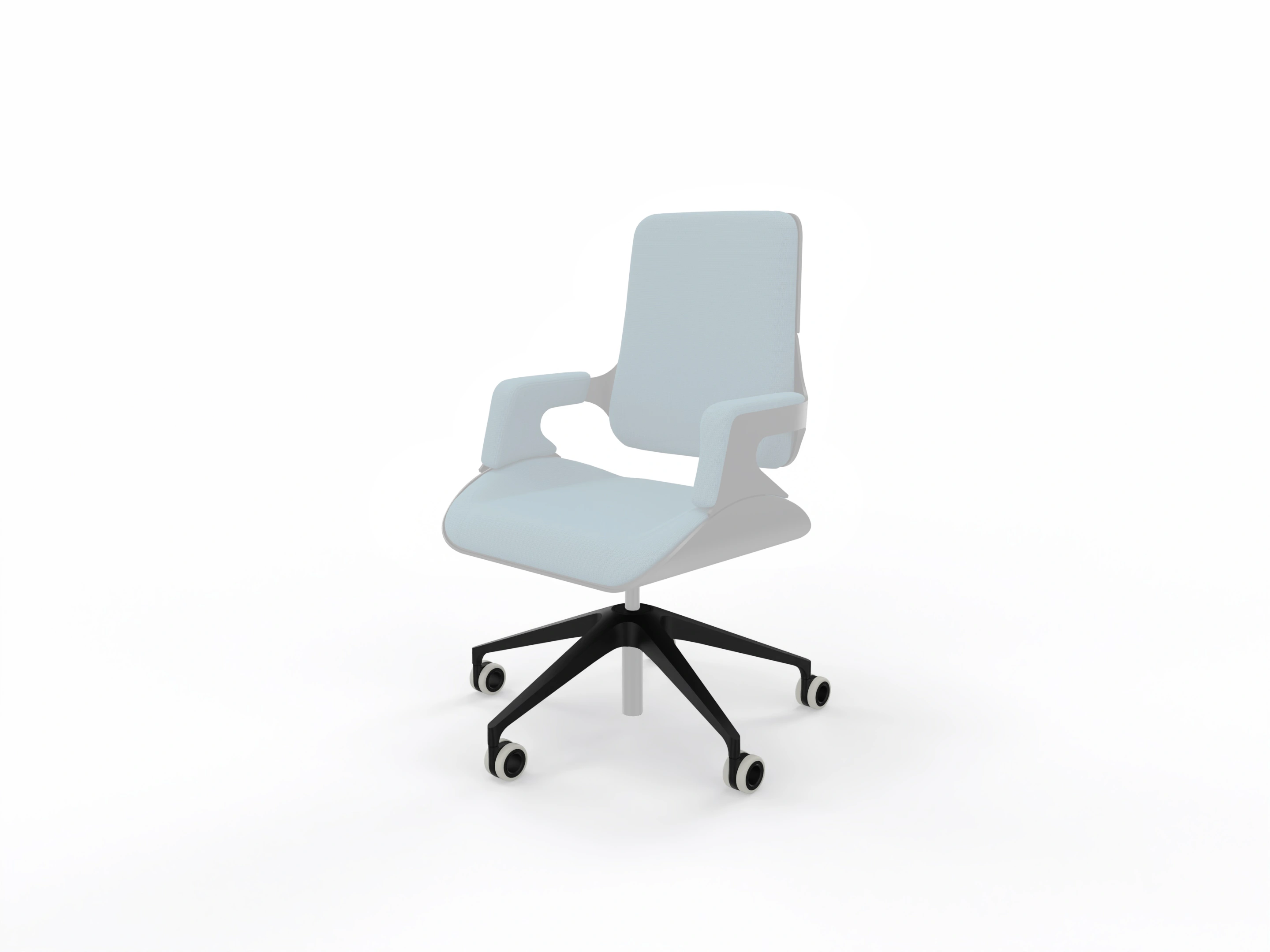 Incl. dynamische rugleuning, aluminium 4-teens voetkruis met glijders, beklede armleggers, gemonteerd in een doos. Standaard is het frame gepoedercoat