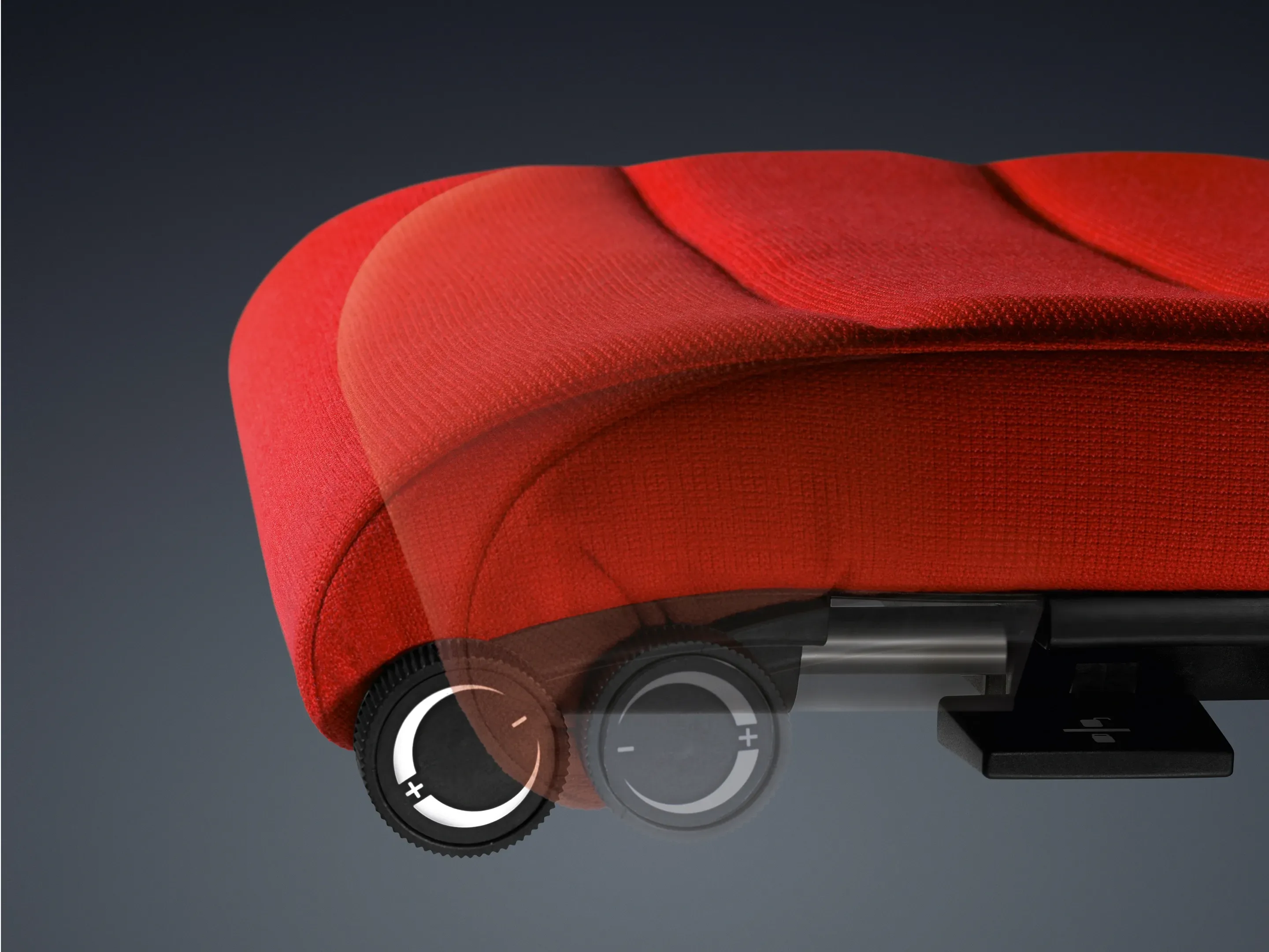 Hiermee wordt een zitdiepte verstelling toegevoegd en wordt de zitting aan de voorzijde verlengd, d.m.v. een draaiknop.