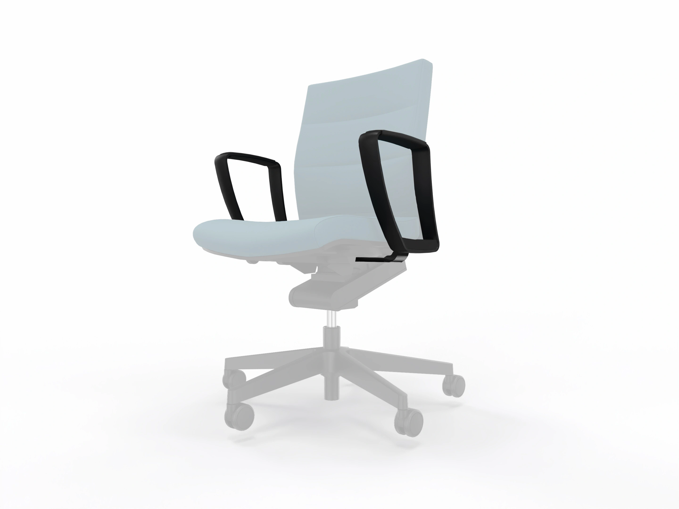 Bureaustoel met body-float synchroonmechaniek, gewichtsregeling traploosinstellbaar, zithoogte: 415-535mm, Rugleuning 6cm instelbaar, mechanische zitdieptevering, standaard een kunststof voetkruis.
