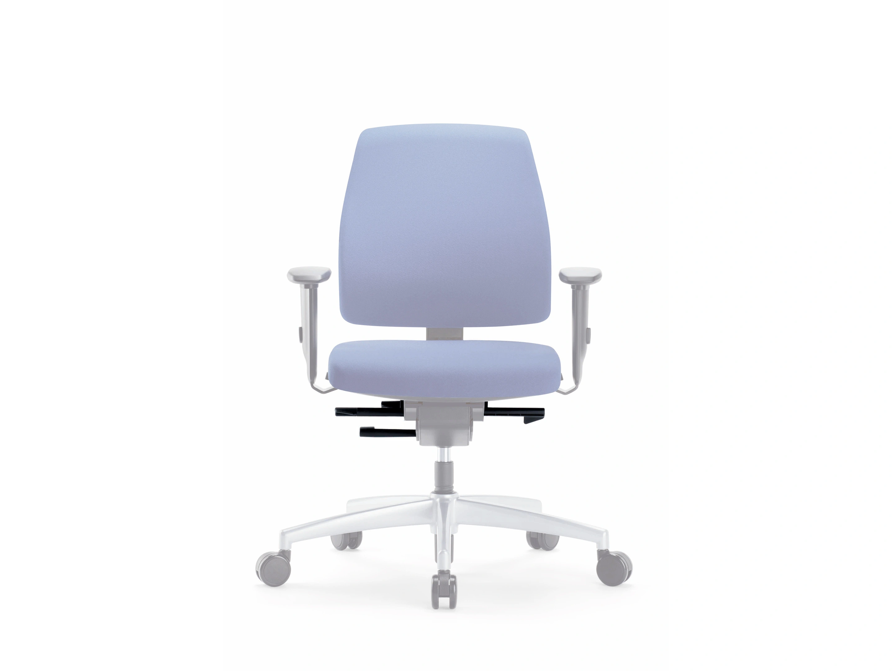 Bureaustoel met synchroonmechaniek in stappen verstelbaar, zithoogte 420mm - 525mm, rughoogte verstelbaar, rugschaal zwart kunststof, Verstelbare hoofdsteun, standaard zwart kunststof voetkruis.