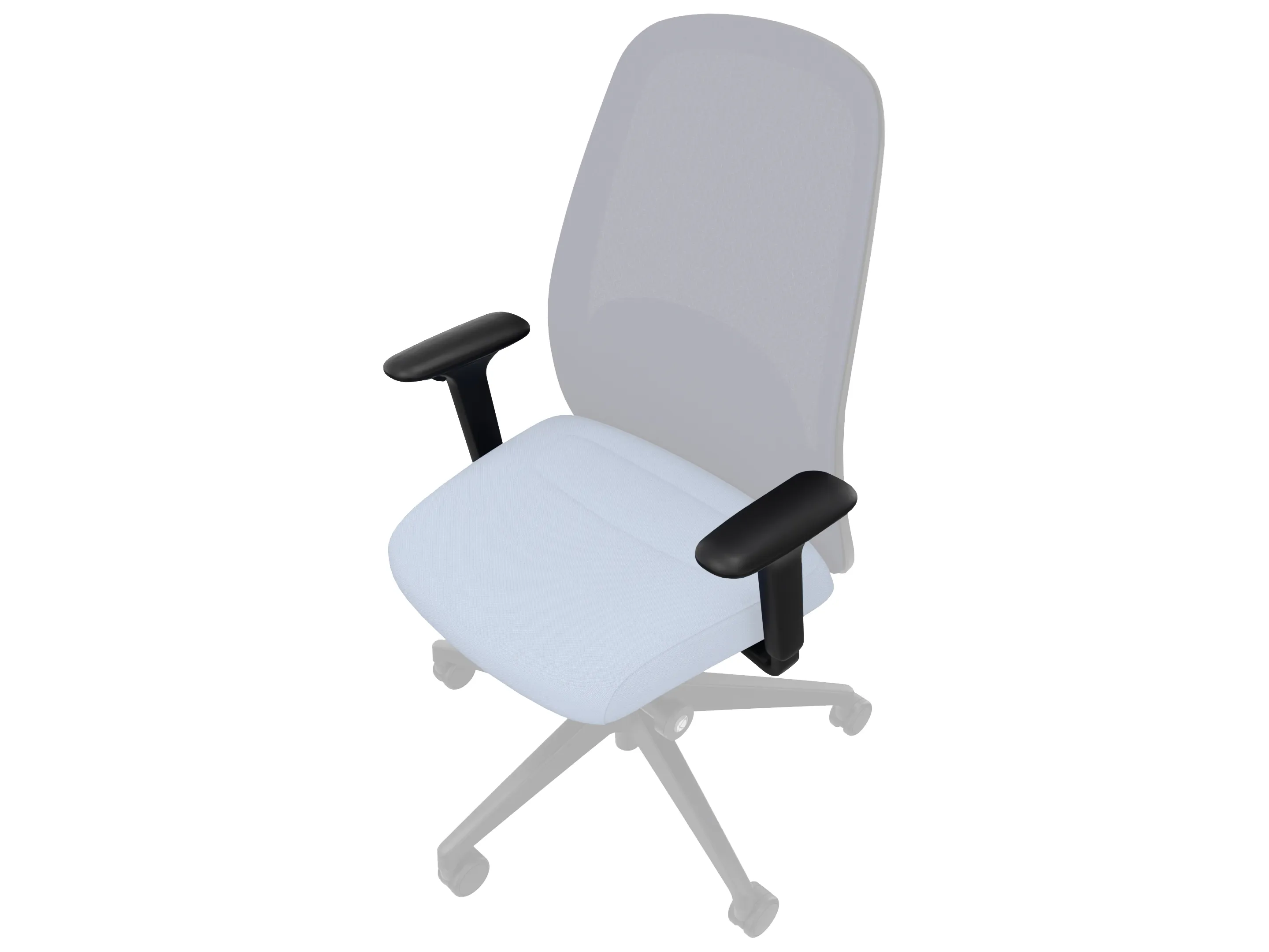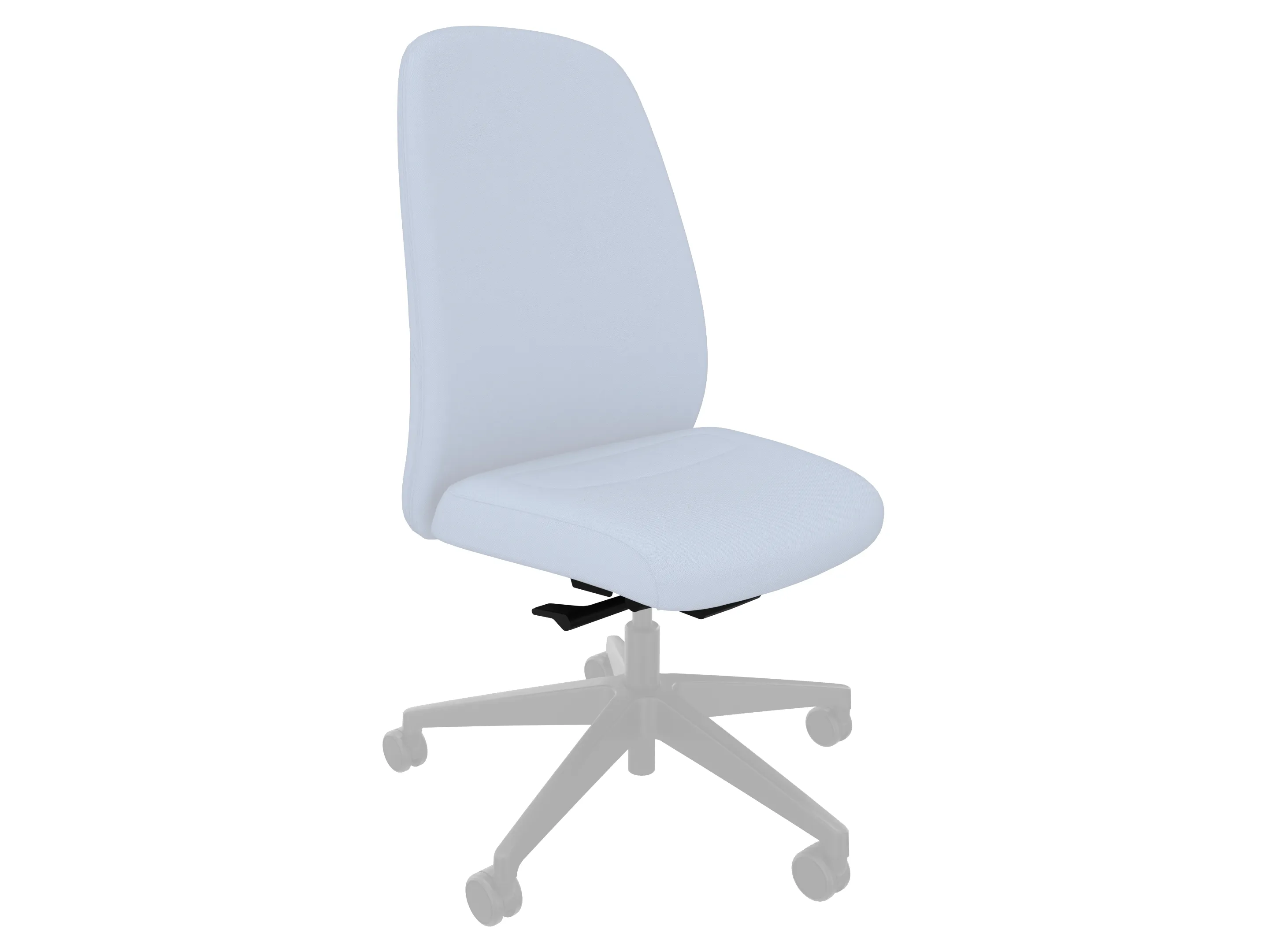 Bureaustoel met een gestoffeerde rug, autoliftmechaniek (vergrendelbaar, tegendruk automatisch), verstelbare lendensteun, zithoogte: 425-535mm.