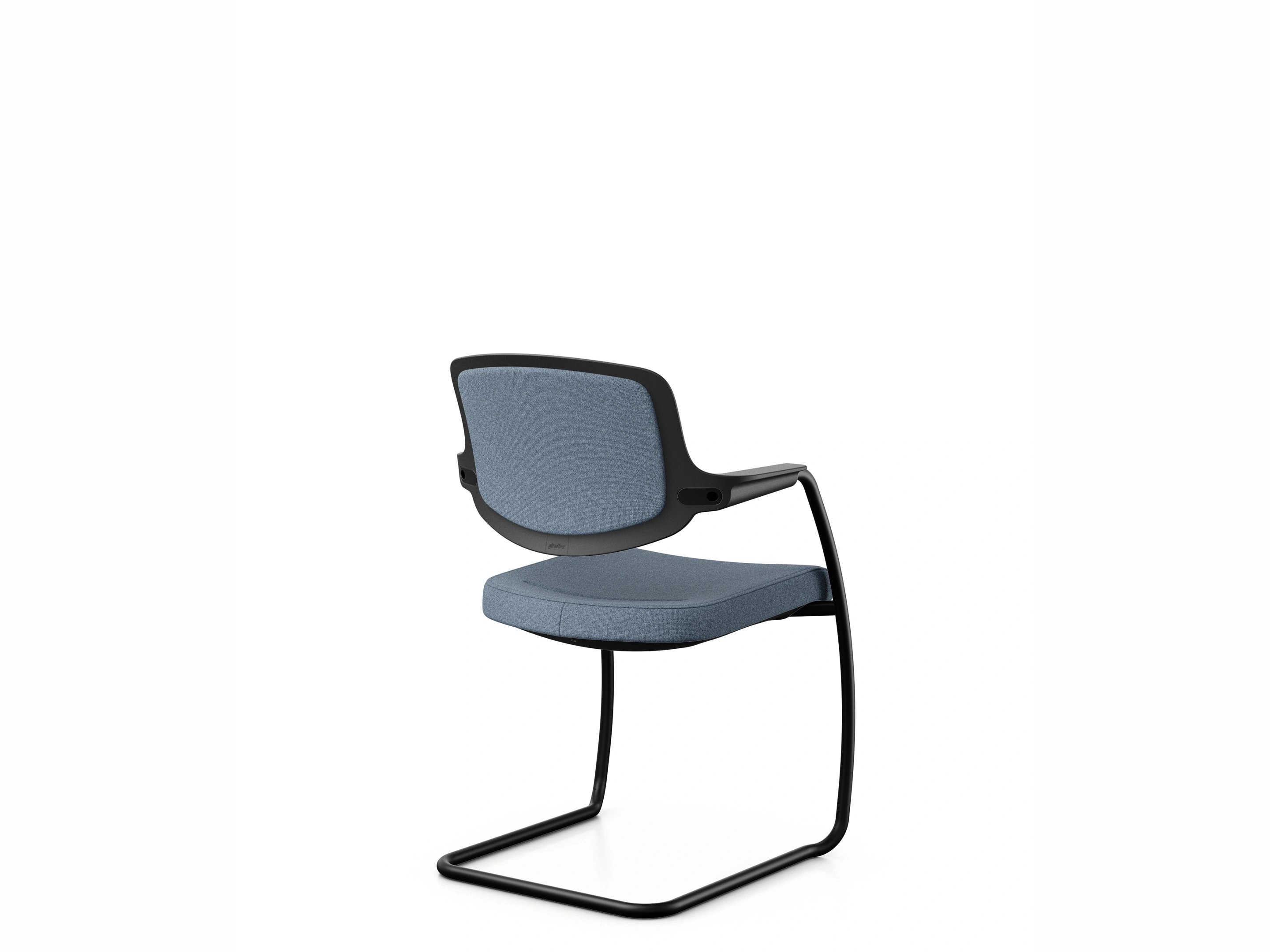 Vergaderstoel/ bezoekerstoel op sledeframe. Rugschaal is altijd in kunststof zwart uitgevoerd. De afsluitdopen aan de achterzijde van het frame zijn altijd in dezelfde kleur als het frame. De stoelen zijn stapelbaar.
