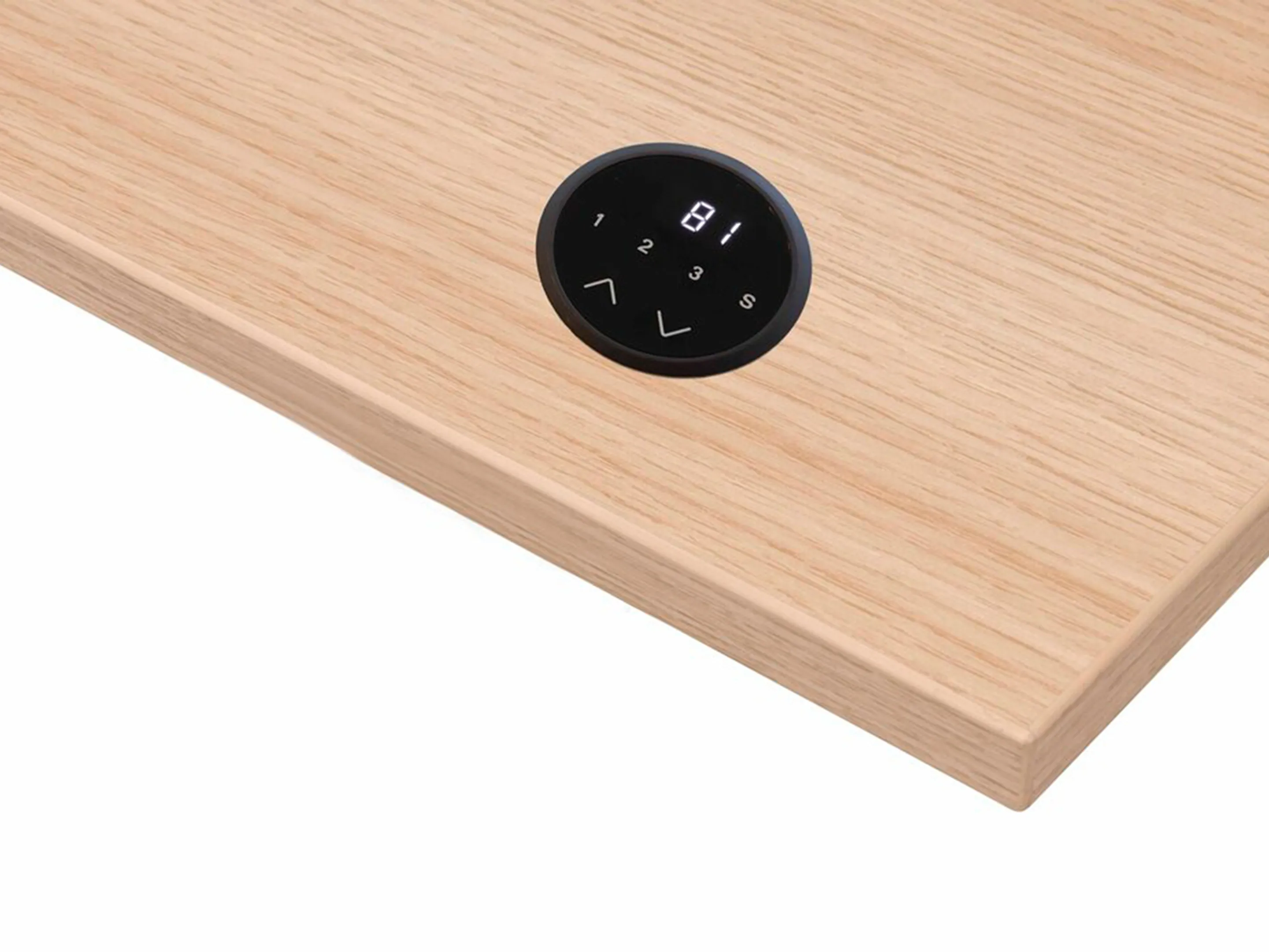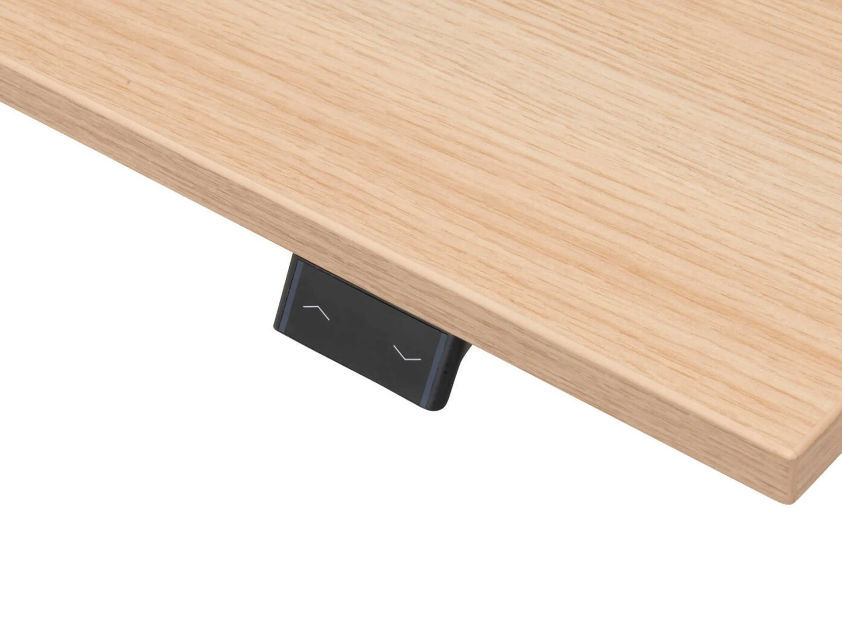 Zit-sta duo bureau, elektrisch verstelbaar tussen 640-1300mm, compleet met 2 werkbladen van 1400 x 800mm, 2 open H-poten en stabilisatiebalk en hoog-laag bediening (gemonteerd onder blad).