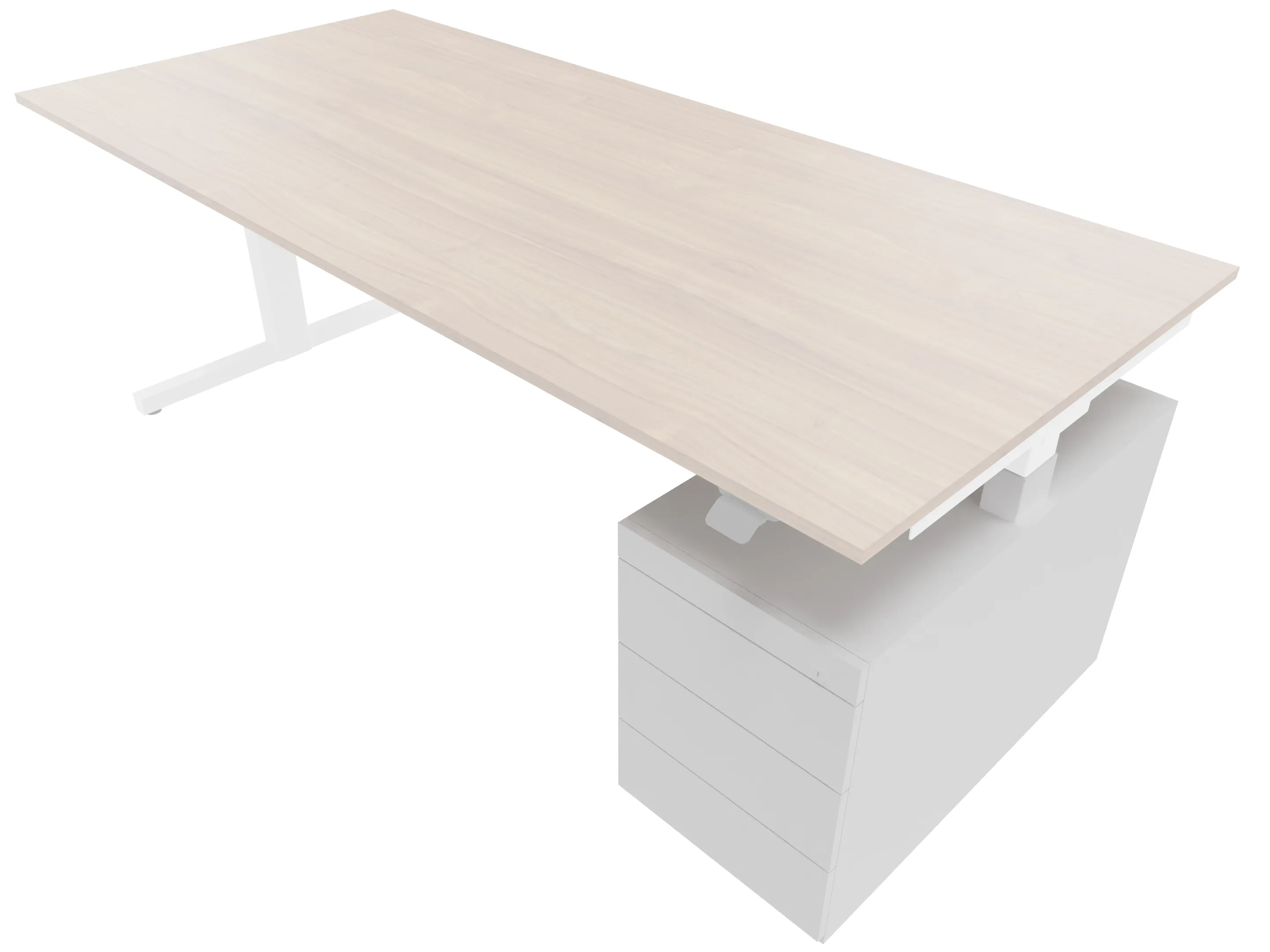 Zit-sta bureau, elektrisch verstelbaar tussen 640-1300mm, compleet met 1 werkblad van 2000 x 800mm, wangpoten en hoog-Raag bediening (gemonteerd onder blad), ladenblok (rechts gemonteerd), met hangmappenlade.