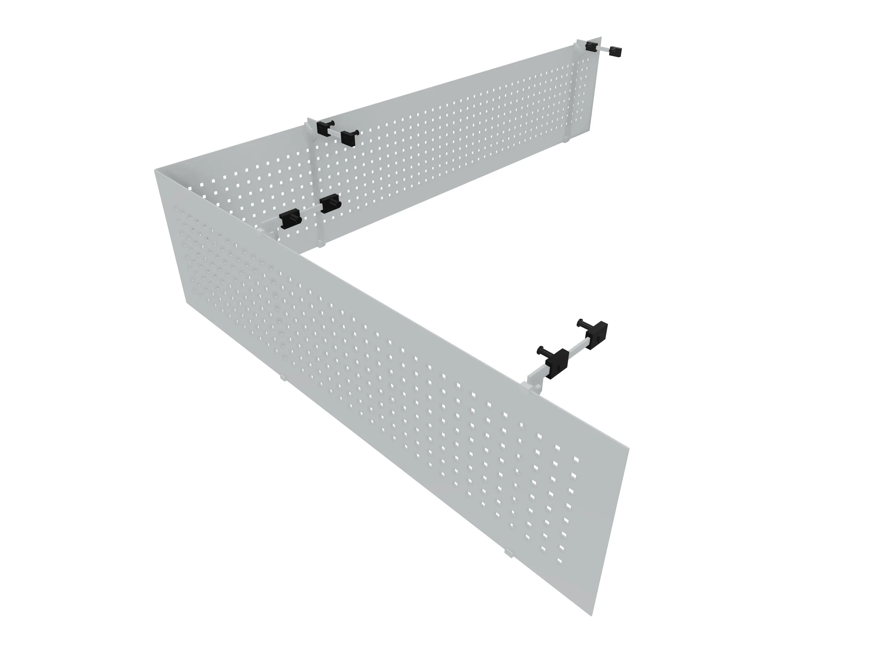 3mm Aluminium met vierkante perforatie (8x8mm), hoogte 400mm, inclusief klemmen.