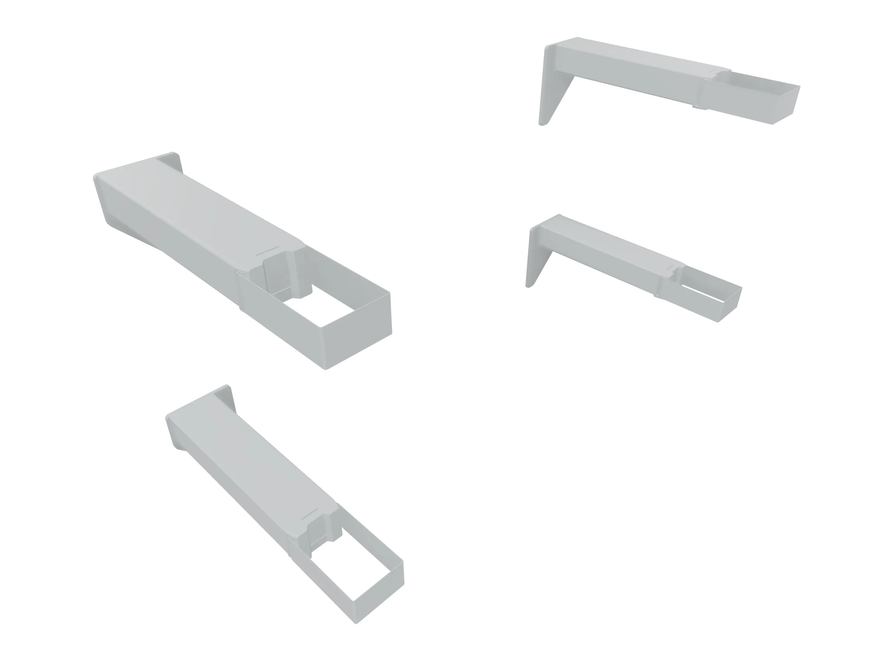 Twee houders voor een verbinding tussen de voorzijde van het bureauframe en de Casus balie. Hoogteverstelling blijft mogelijk na montage aan baliepaneel. Ideaal voor Slinger en Easy-Push bureaus.