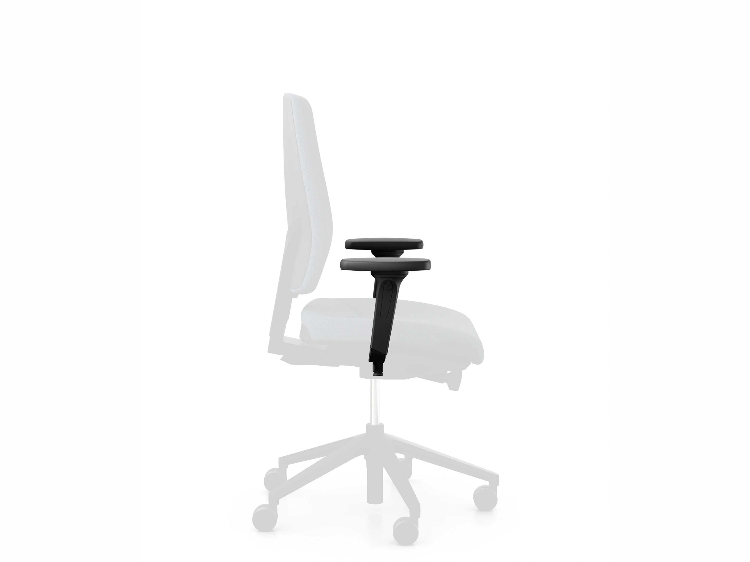 Organic Move synchroonmechaniek, 2-zone zitprofiel, zithoogte: 40-52cm, zitdiepte 5cm, rughoogte 7cm verstelbaar. Standaard kunststof voetkruis.