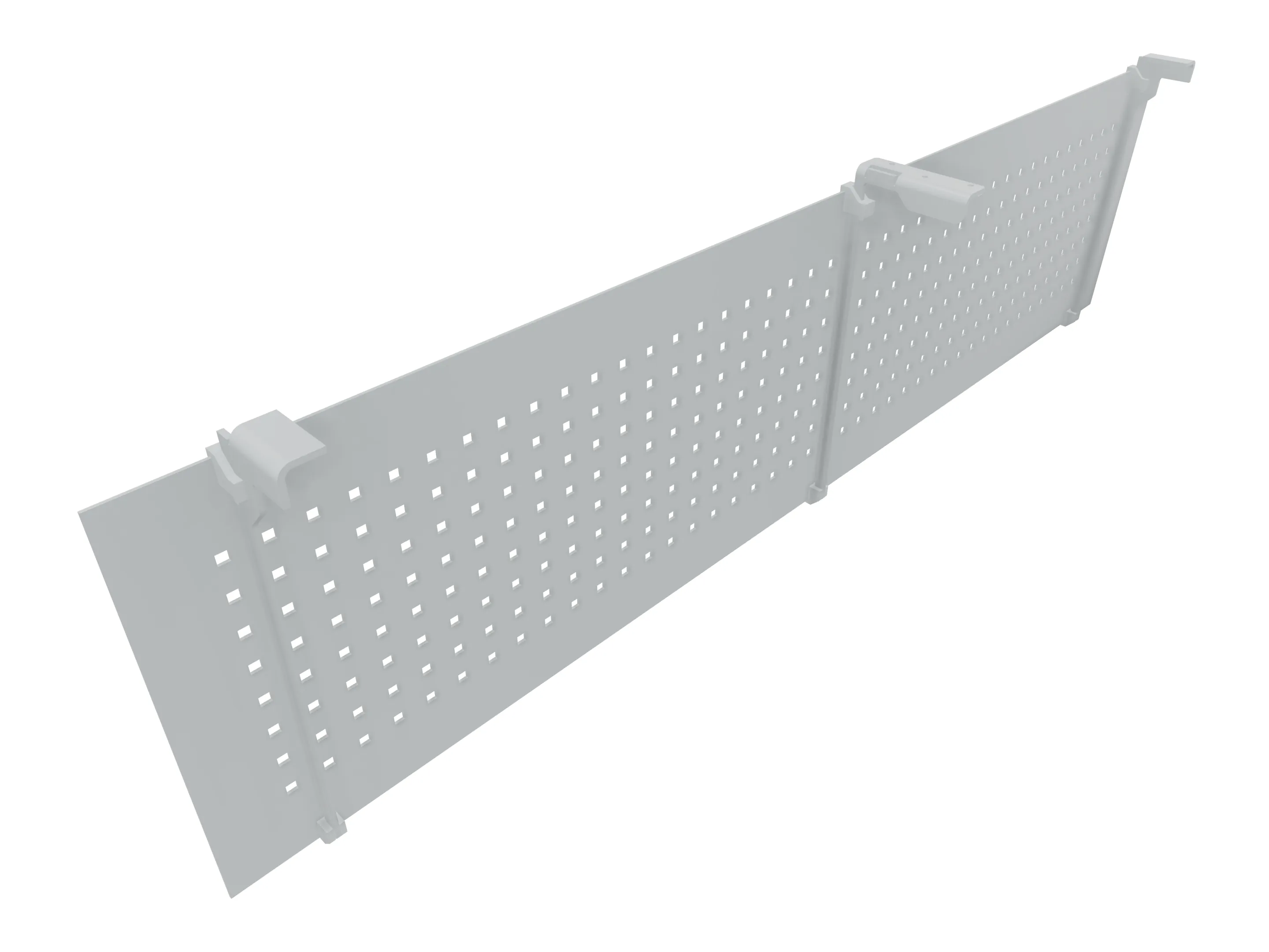 3mm Aluminium met vierkante perforatie (8x8mm), hoogte 400mm, inclusief klemmen.
