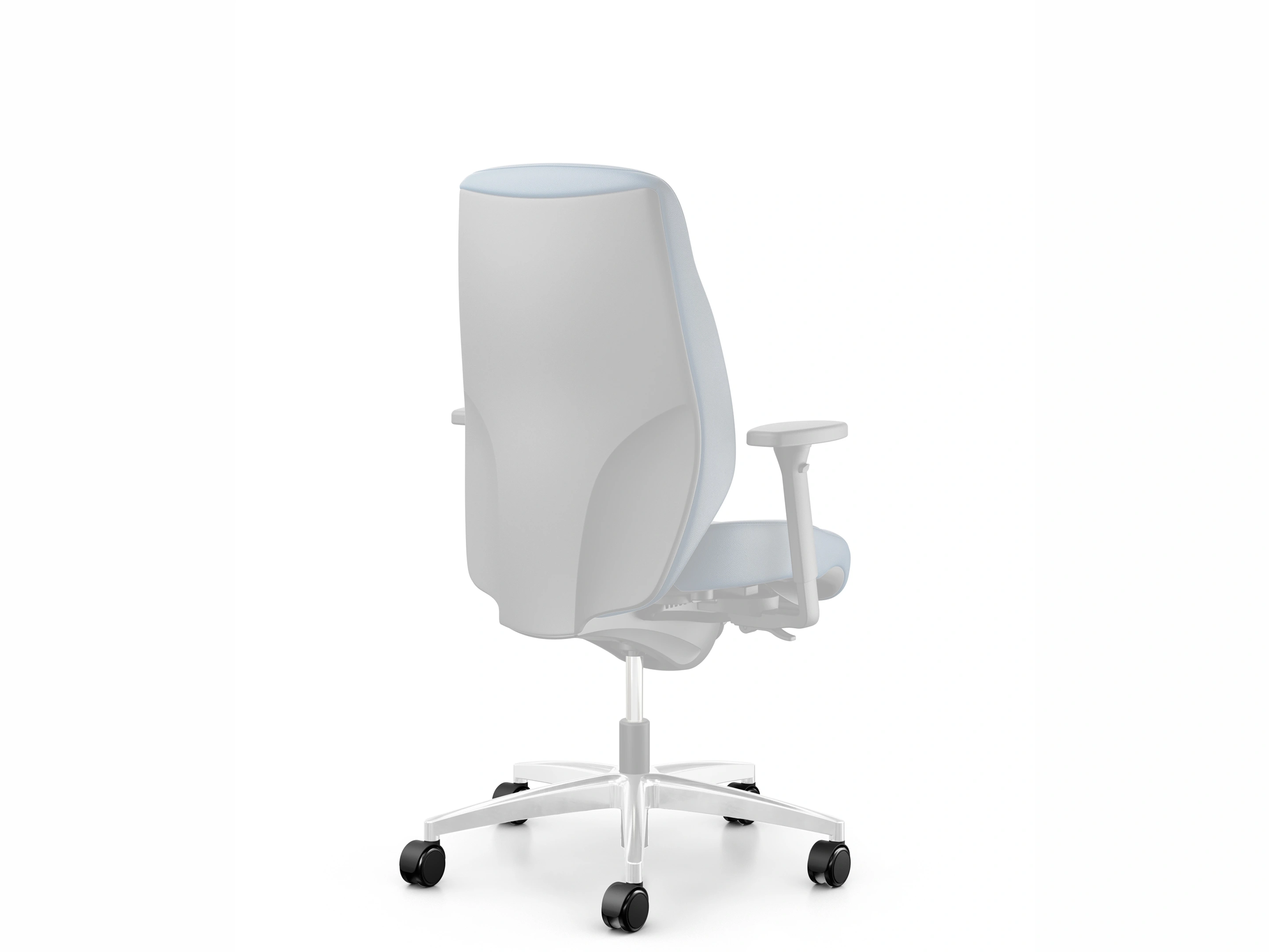 Verstelbare hoofdsteun, Comfortbekleding, Organic Move Synchroonmechaniek,, 2-zone zitprofiel, rugschaal in kunststof, standaard zithoogte: 40-52cm, rugleuning 7cm (55-62cm) & zitdiepte 5cm verstelbaar, afdekkap gasveer, Standaard 4D armsteunen.