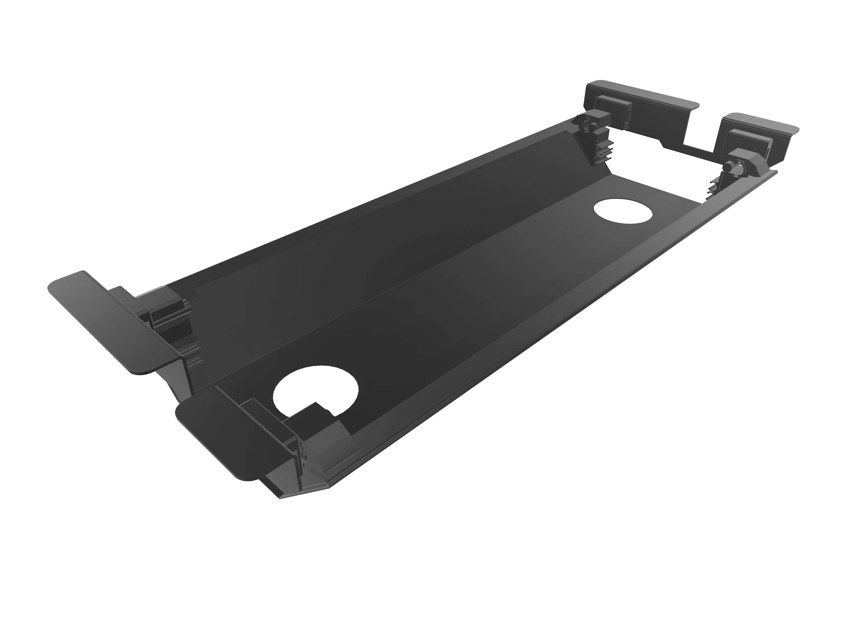 Tonvormig blad met rechte hoeken, incl. traverse balken en aansluitingen voor 4 eindpoten. Afmeting: 1600 x 25 x 1400mm (BxHxD)