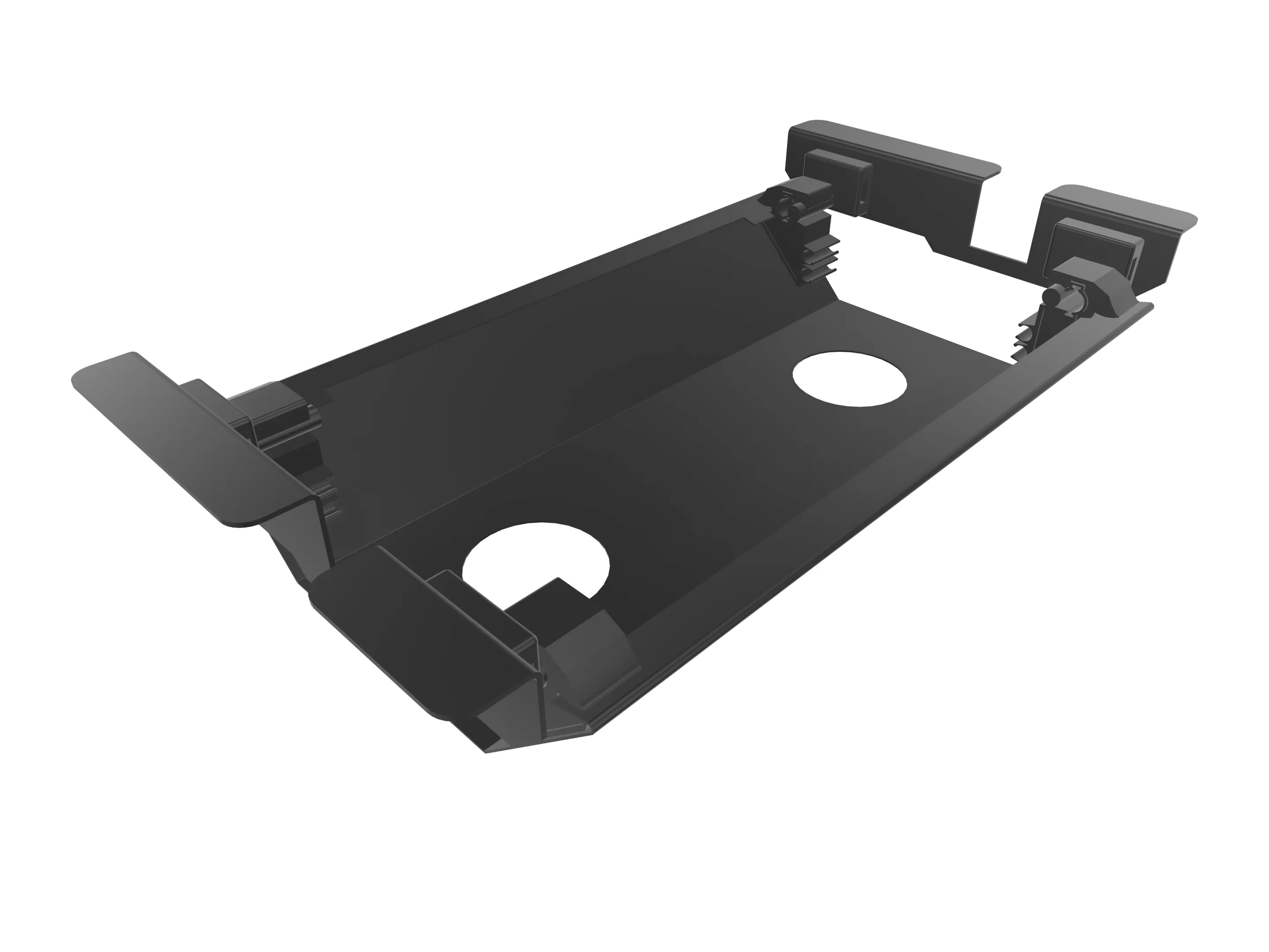 Tonvormig blad met ronde hoeken, incl. traverse balken en aansluitingen voor 4 eindpoten. Afmeting: 1600 x 25 x 1400mm (BxHxD)