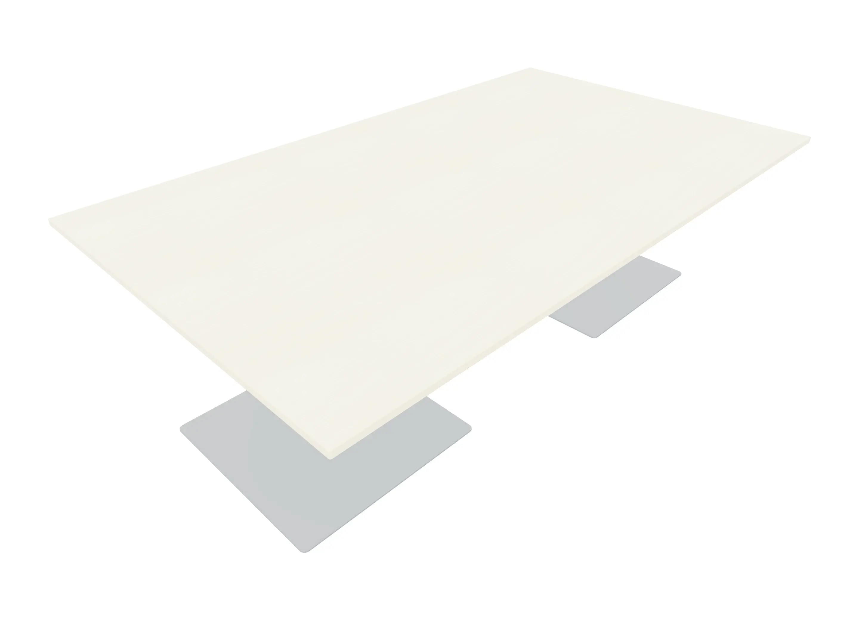 Complete vergadertafel met twee kolompoten, met vierkante kolom en bodemplaat (735 x 735mm). Afmeting: 2000 x 740 x 1400mm (BxHxD)