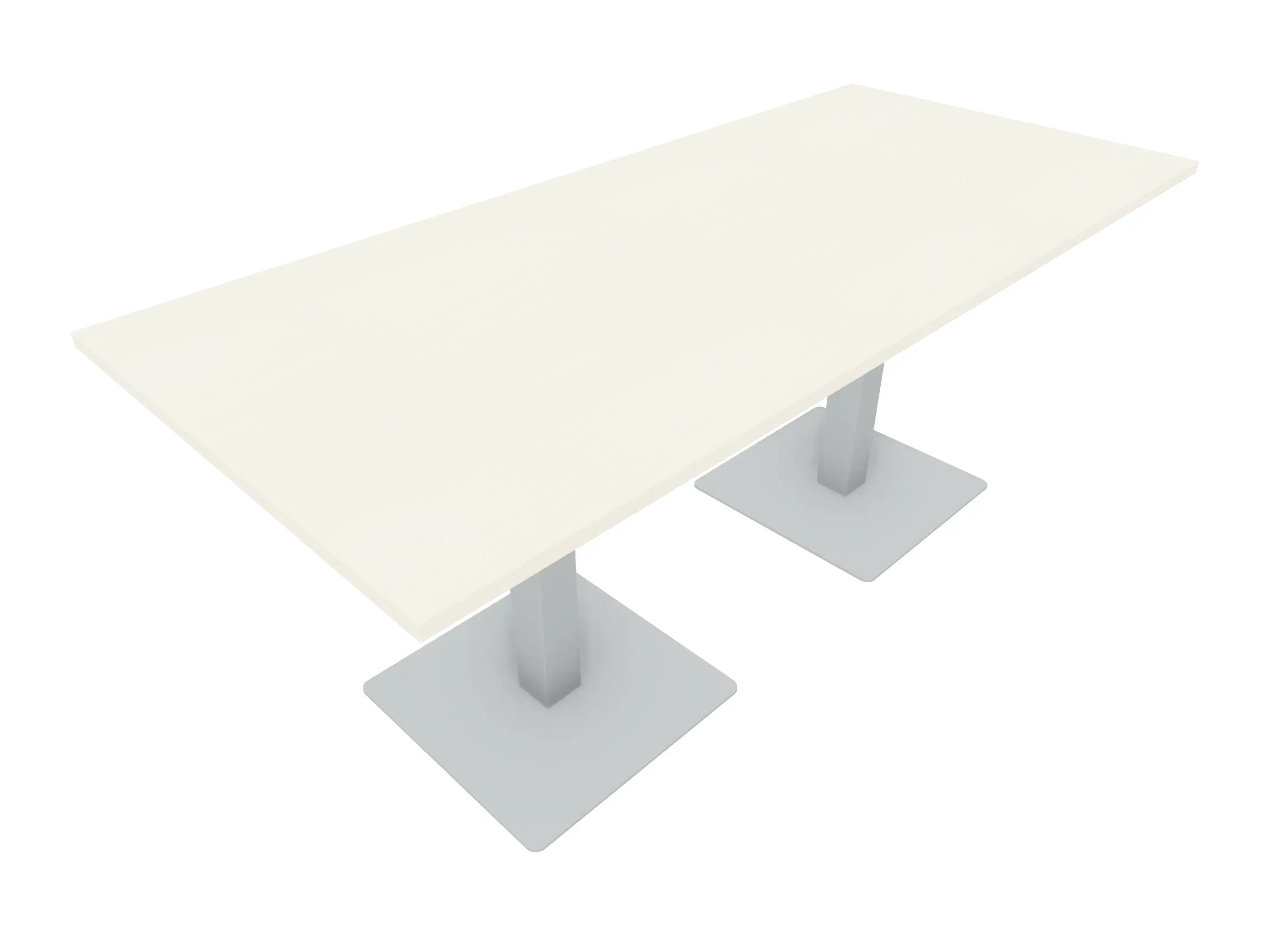 Complete vergadertafel met twee kolompoten, met ronde kolom en bodemplaat (Ø485mm). Afmeting: 2200 x 740 x 900mm (BxHxD)