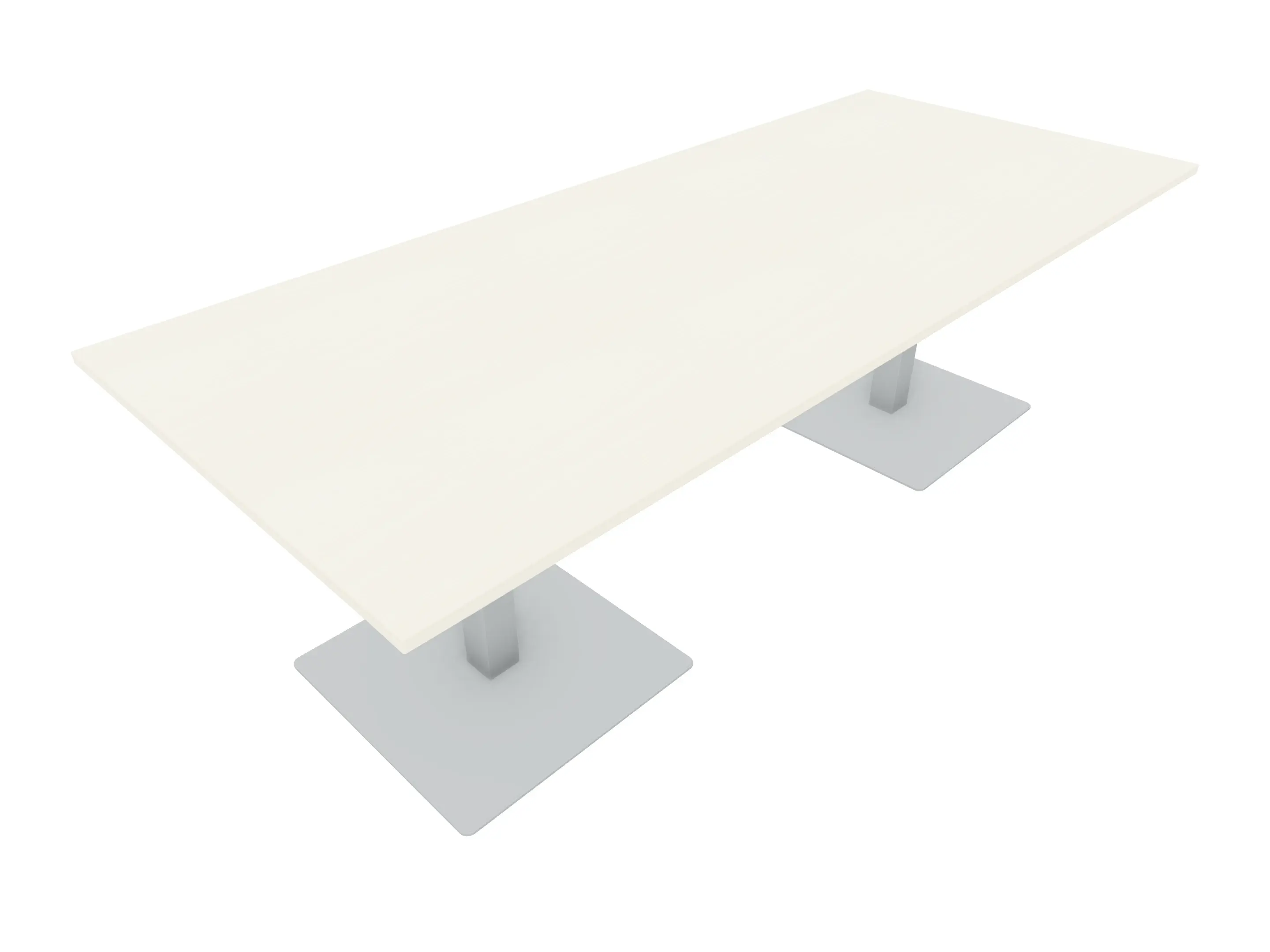Complete vergadertafel met drie kolompoten, met ronde kolom en bodemplaat (Ø610mm). Afmeting: 3600 x 740 x 1200mm (BxHxD)
