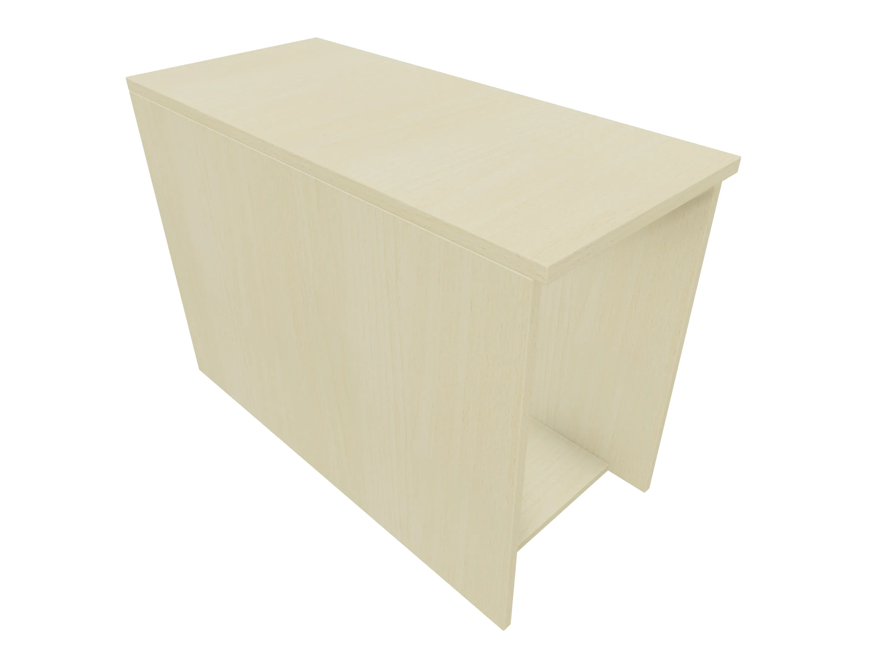 Uittrekbaar binnendeel, links geplaatst aan bureau, voorzien van 2 legplanken (totaal 2OH hoog), afgesloten met topblad, onderzijde kleine afsluitbare kluis, inclusief greep aan de voorzijde Afmeting: 435 x 690 x 730mm (BxHxD)