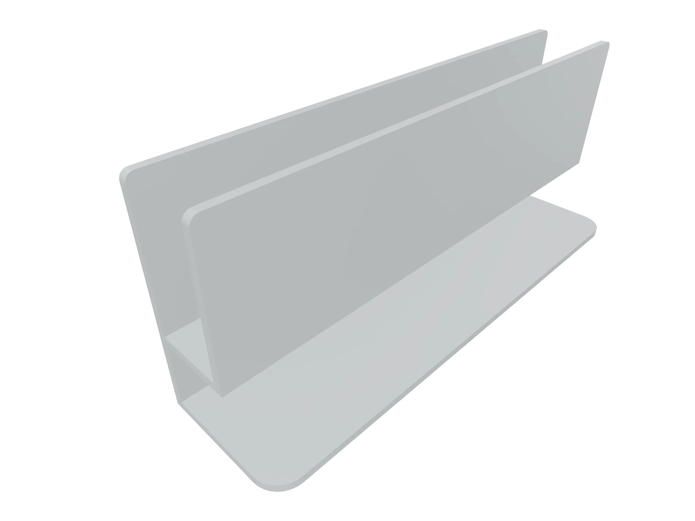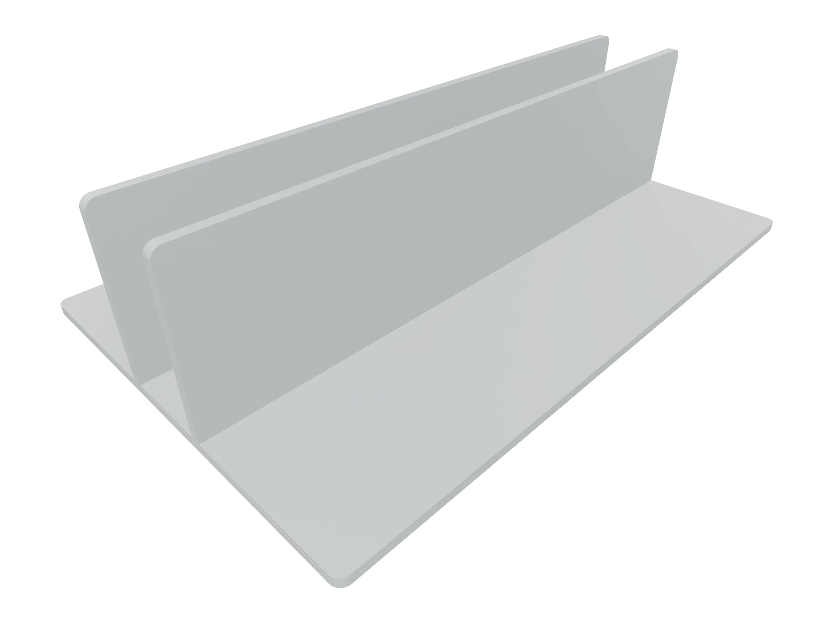 Akoestisch paneel met ronde hoeken, volledig gestoffeerd, kanten voorzien van rubberen band. Afmeting: 2000 x 370 x 27mm (BxDxH)