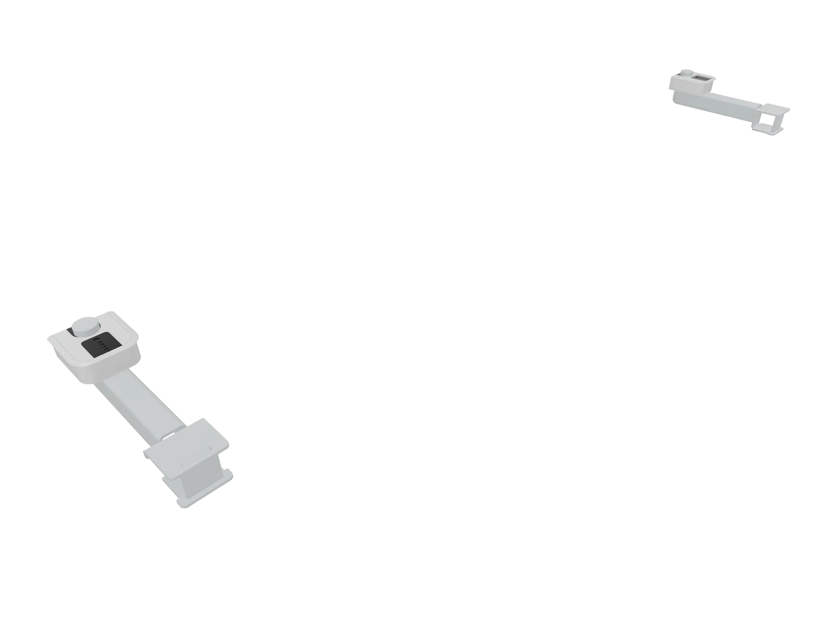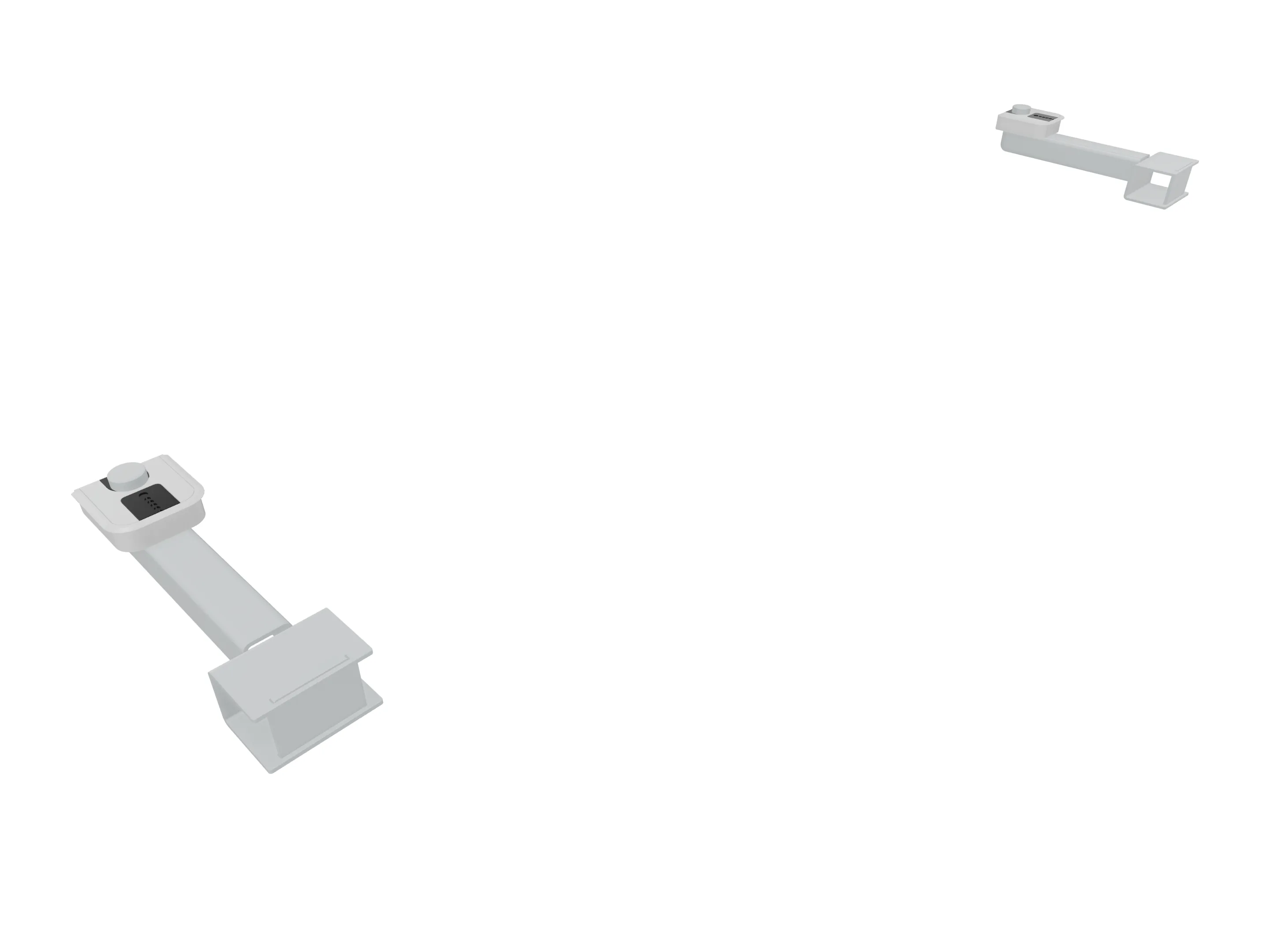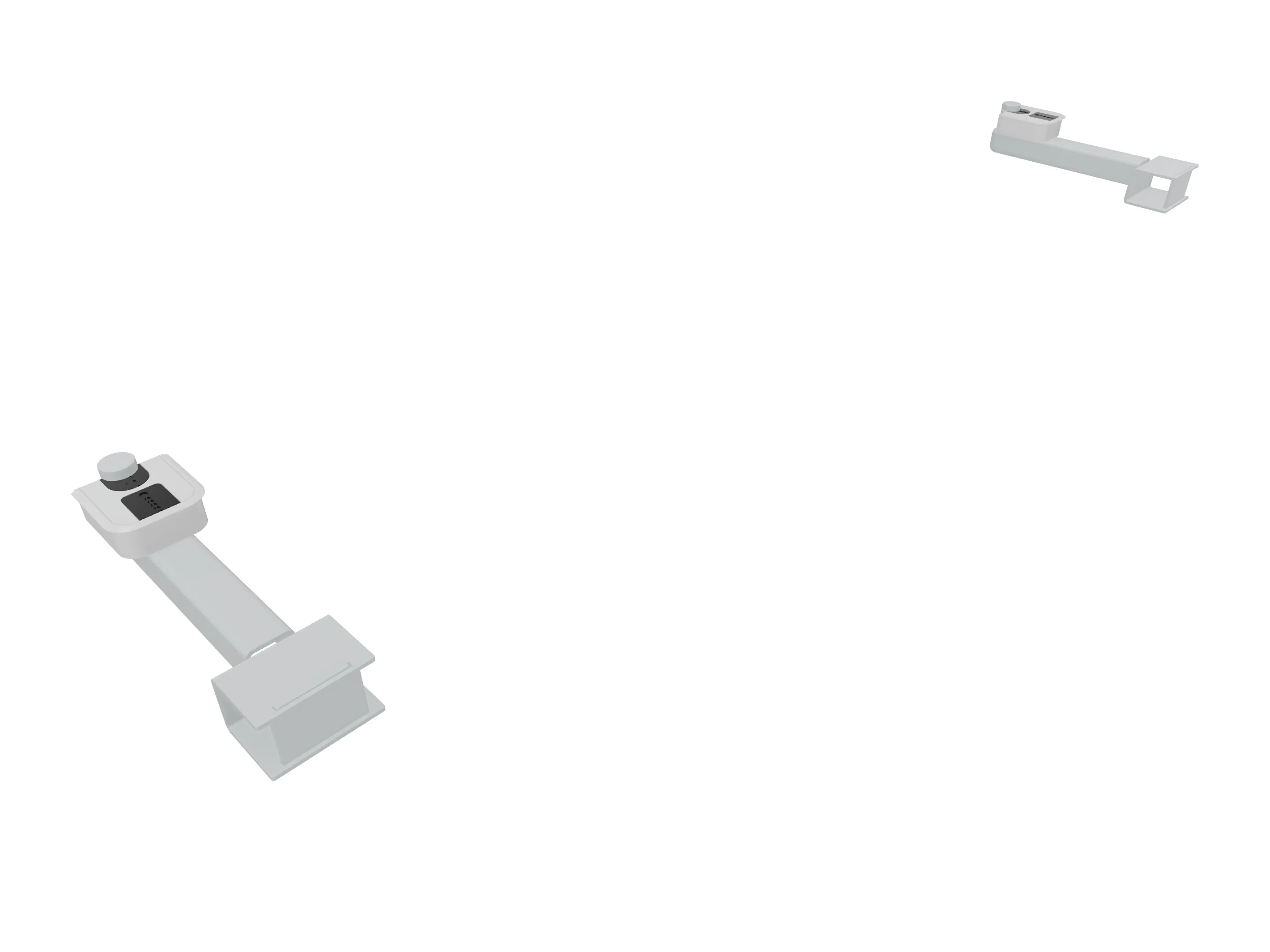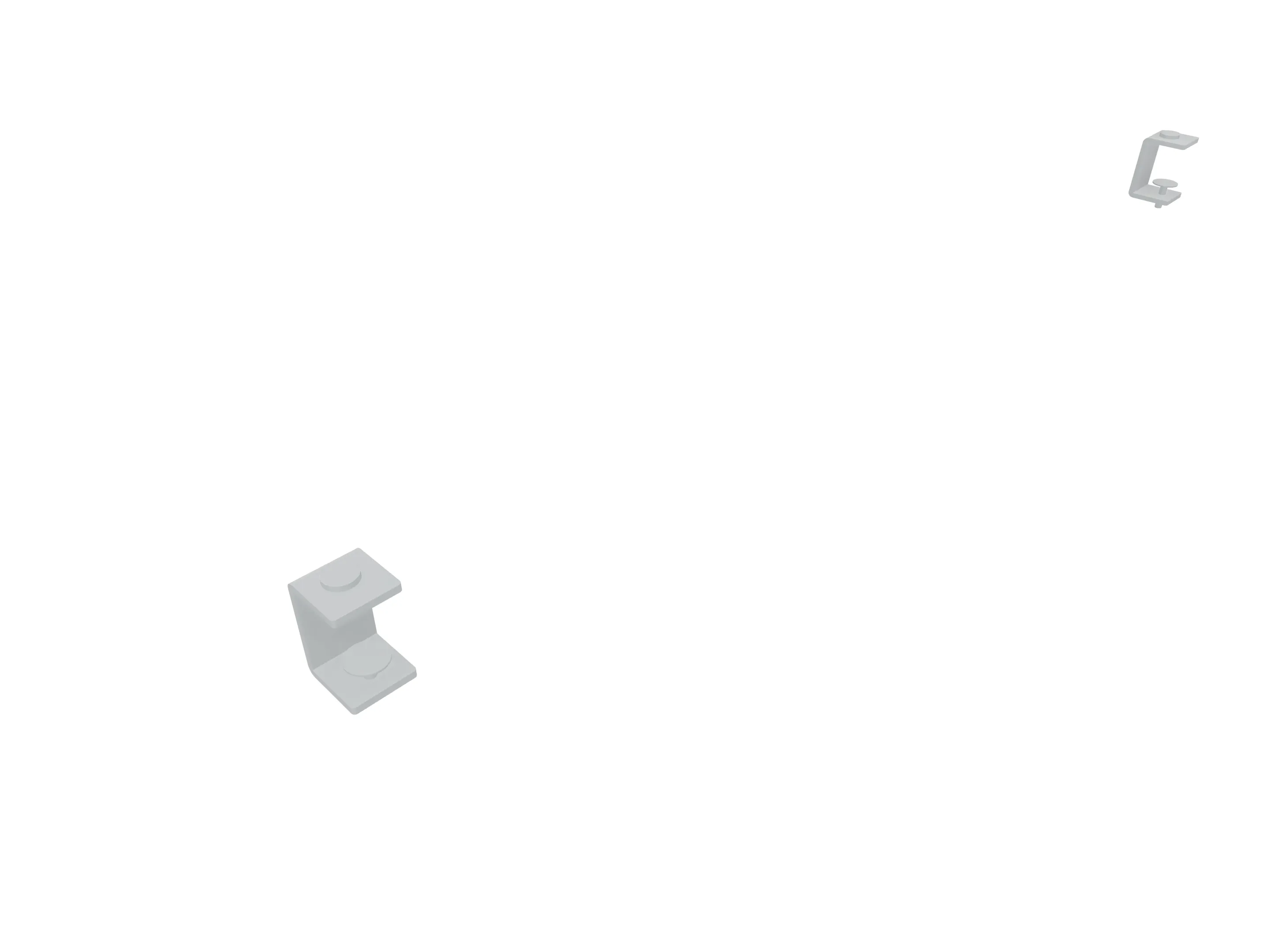 Klemmenset (2 stuks), voor montage van Terio Plus wanden (onderzijde montagerail), aan blad (geklemd).