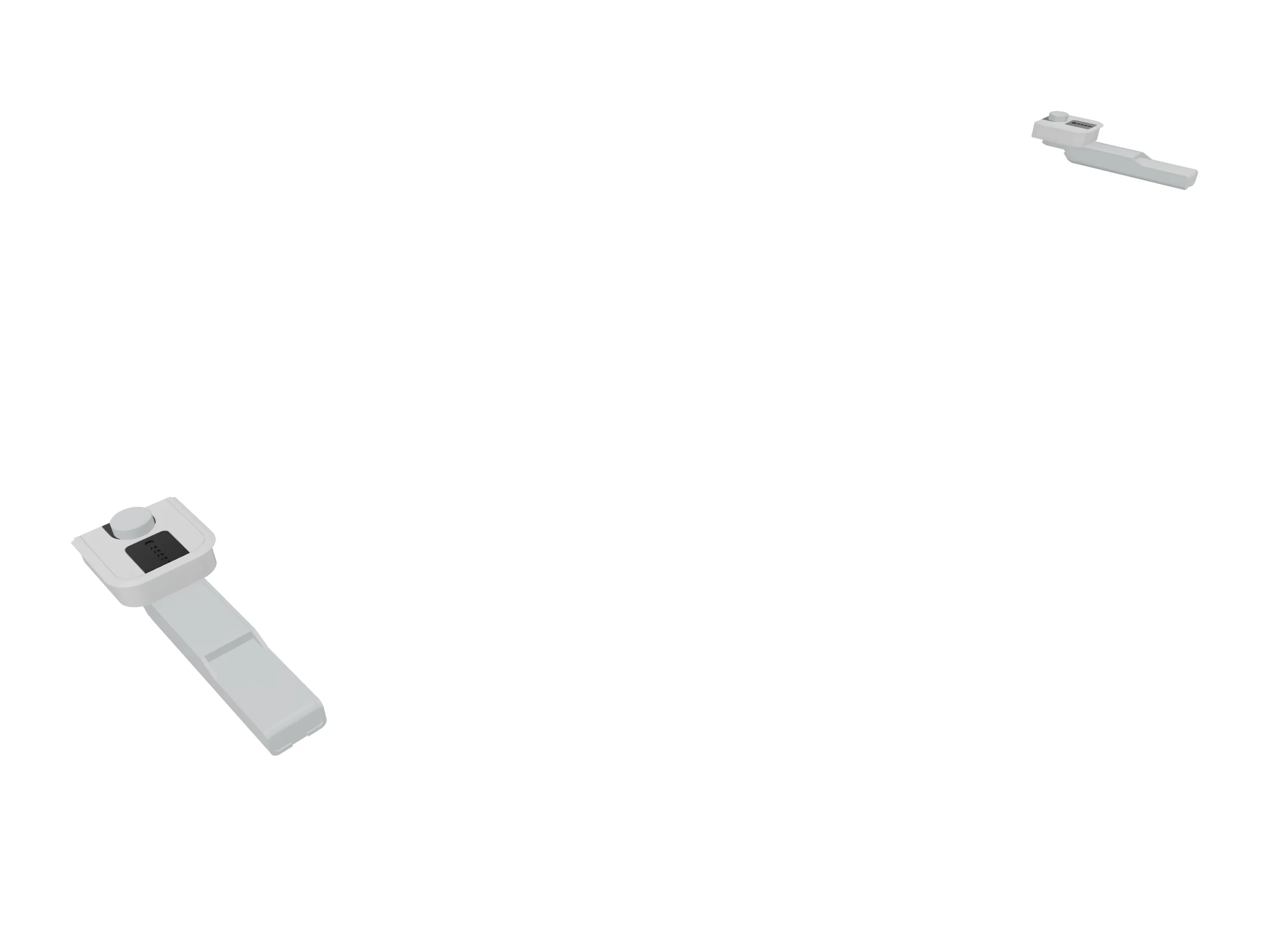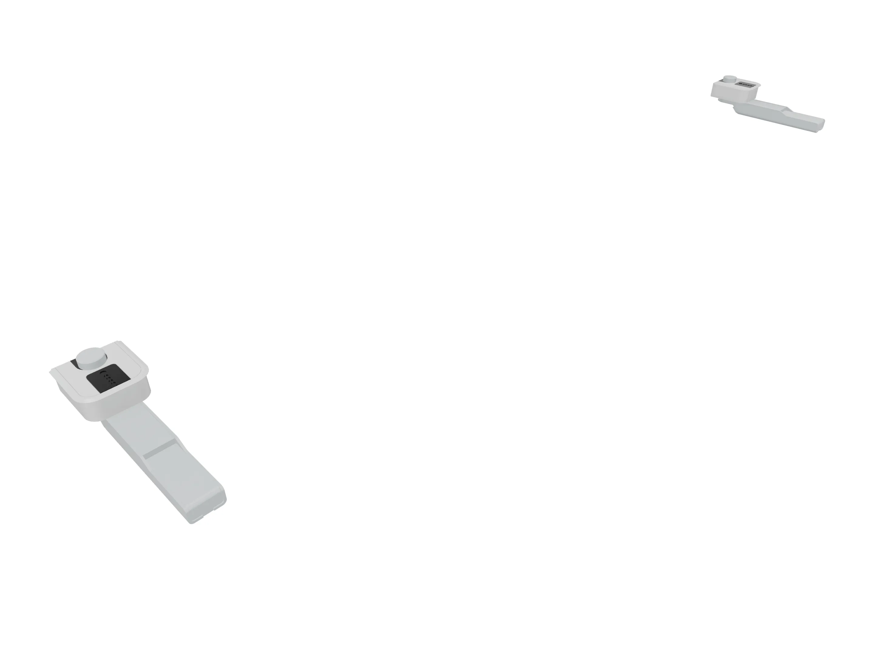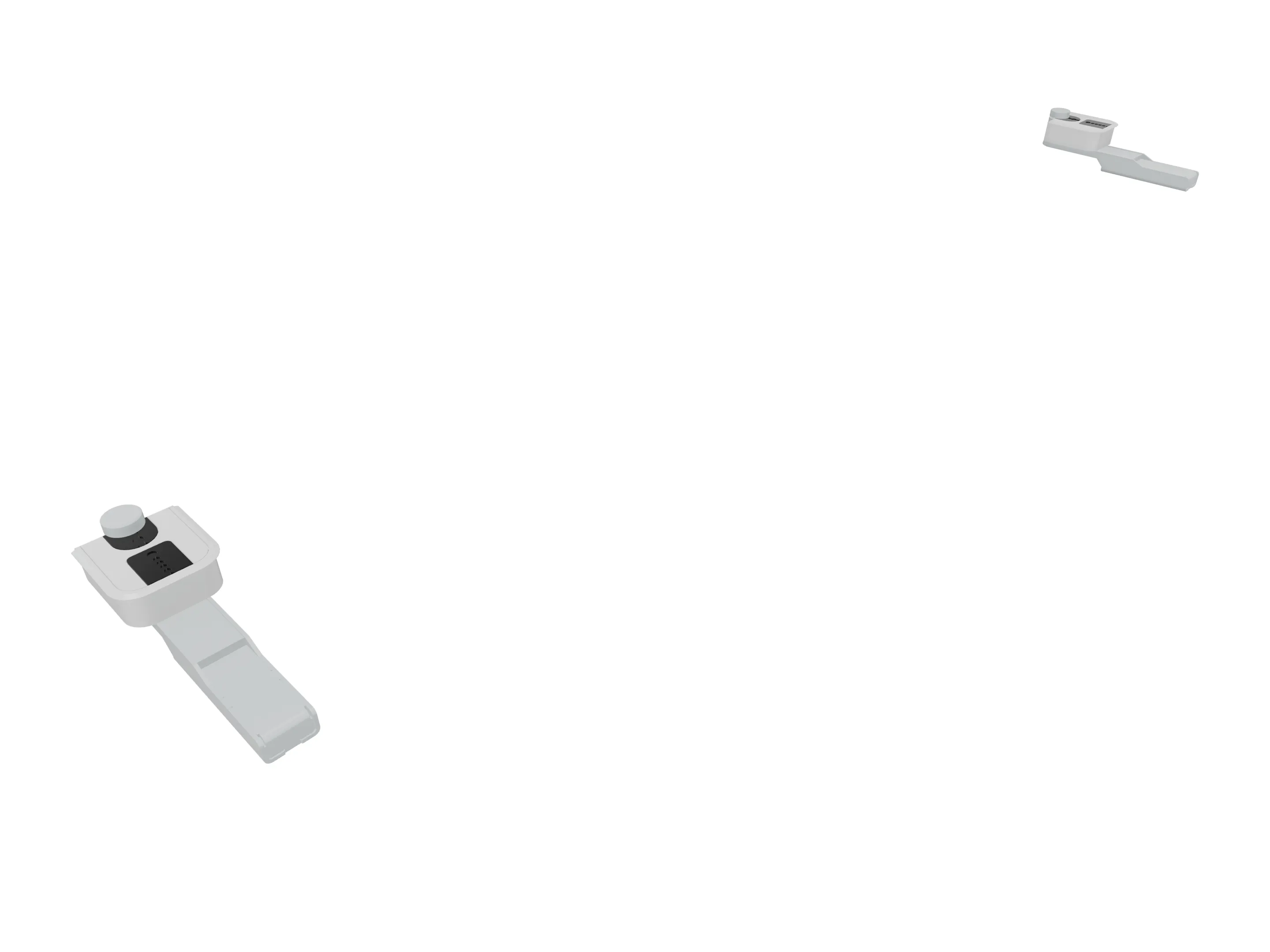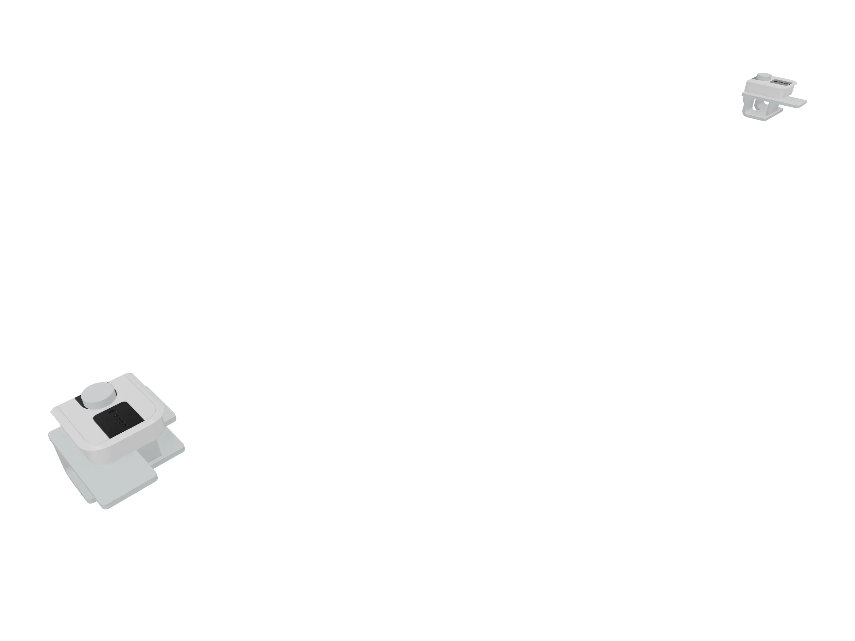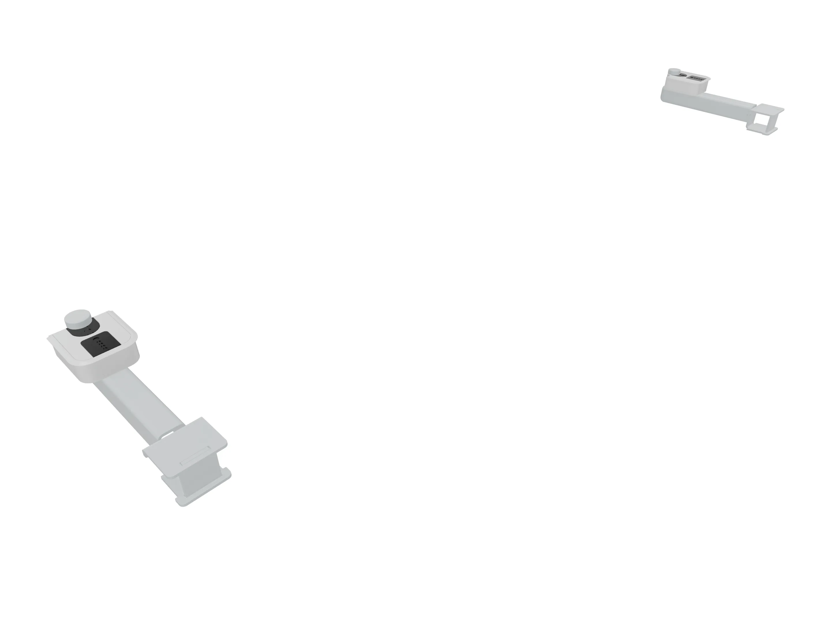 Klemmenset (2 stuks), voor montage van Terio Plus wanden (onderzijde montagerail), aan blad (geklemd).
