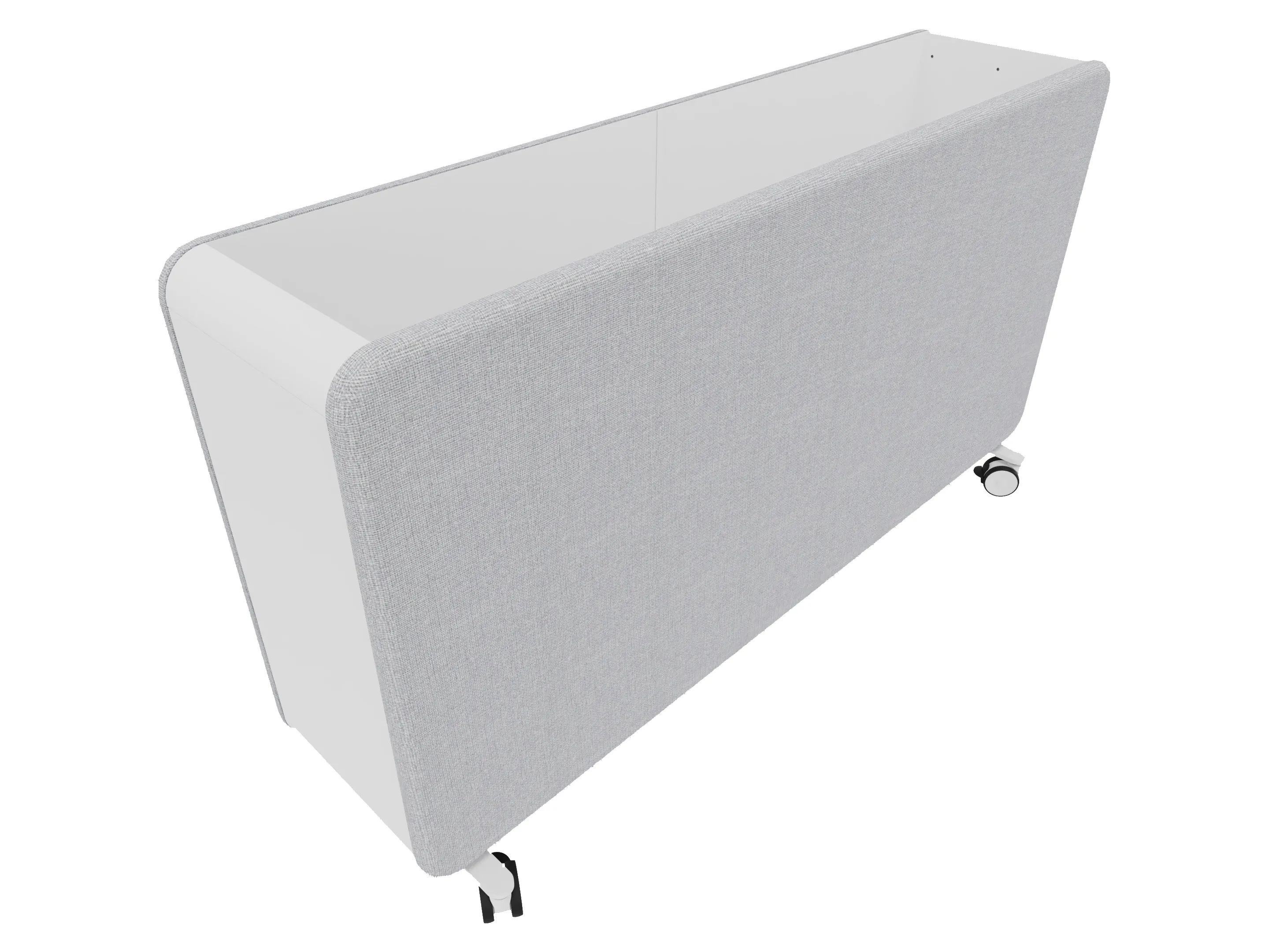 Verrijdbare roomdivider als basis model (leeg), incl wielen. Akoestische afwerking is standaard. Afmeting: 400 x 1600 x 1220 (BxDxH).