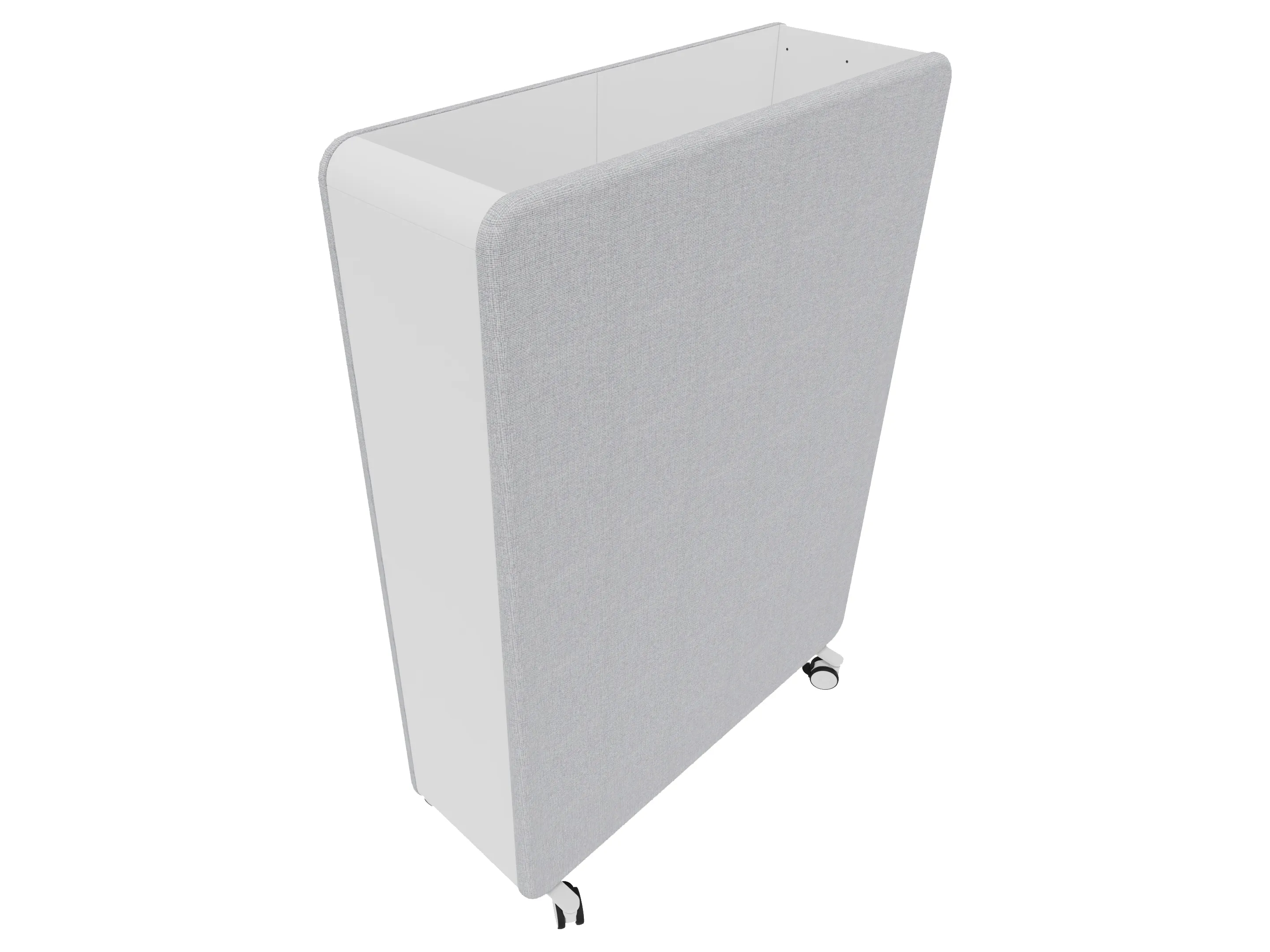 Verrijdbare roomdivider als basis model (leeg), incl wielen. Akoestische afwerking is premium. Afmeting: 500 x 1130 x 1580 (BxDxH).