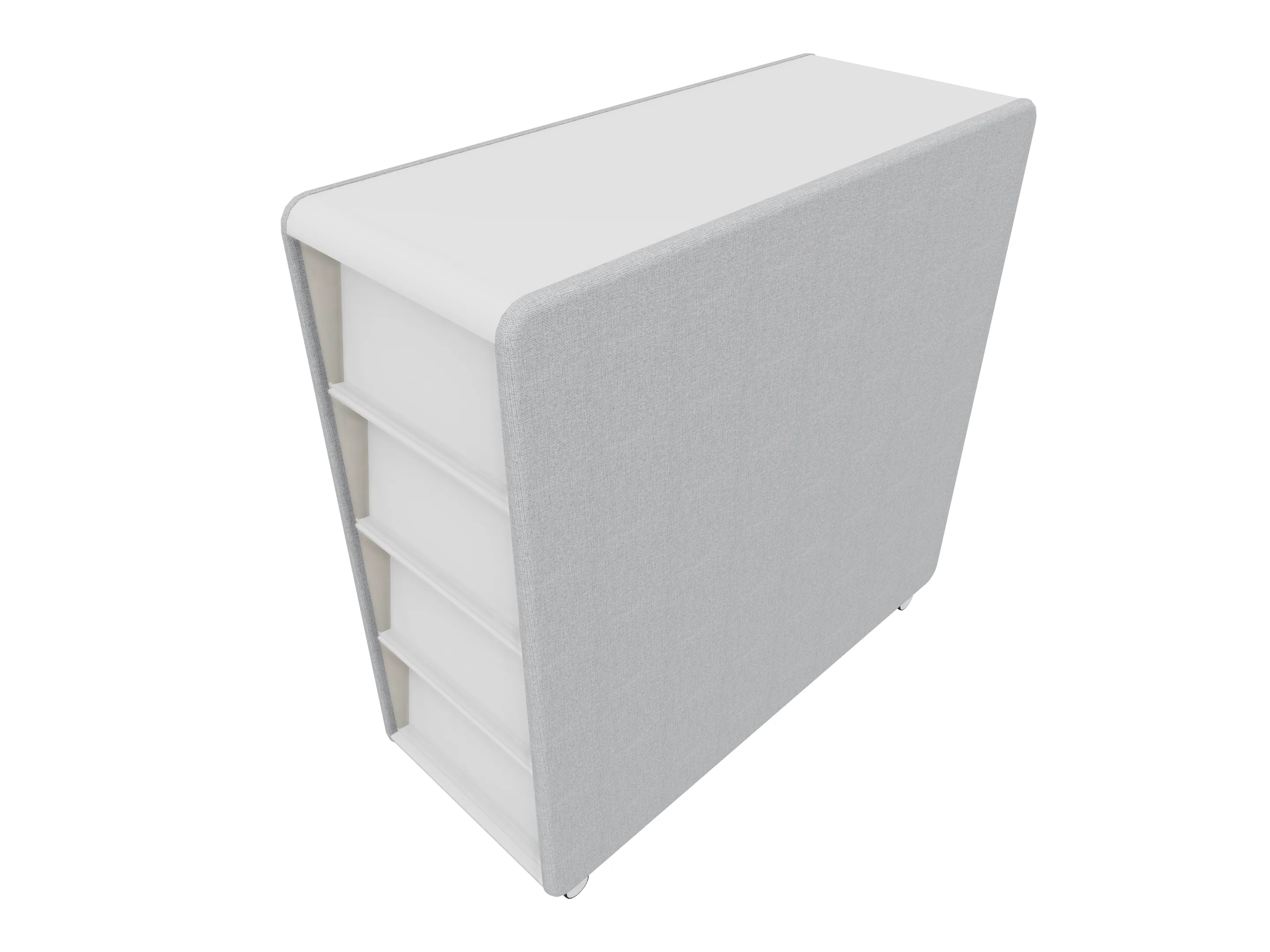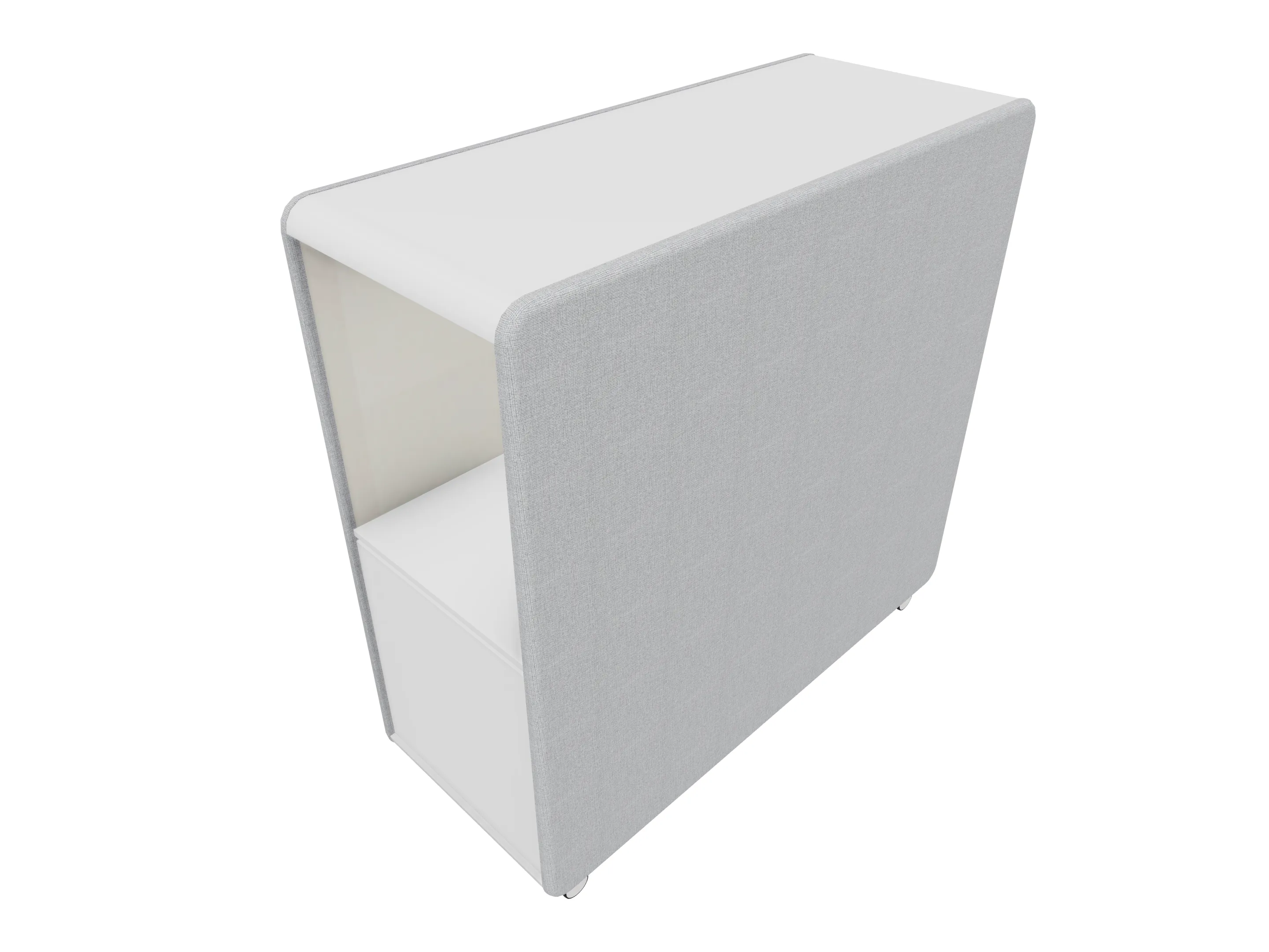 Verrijdbare roomdivider als basis model (leeg), incl wielen. Akoestische afwerking is standaard. Afmeting: 600 x 600 x 1580 (BxDxH).