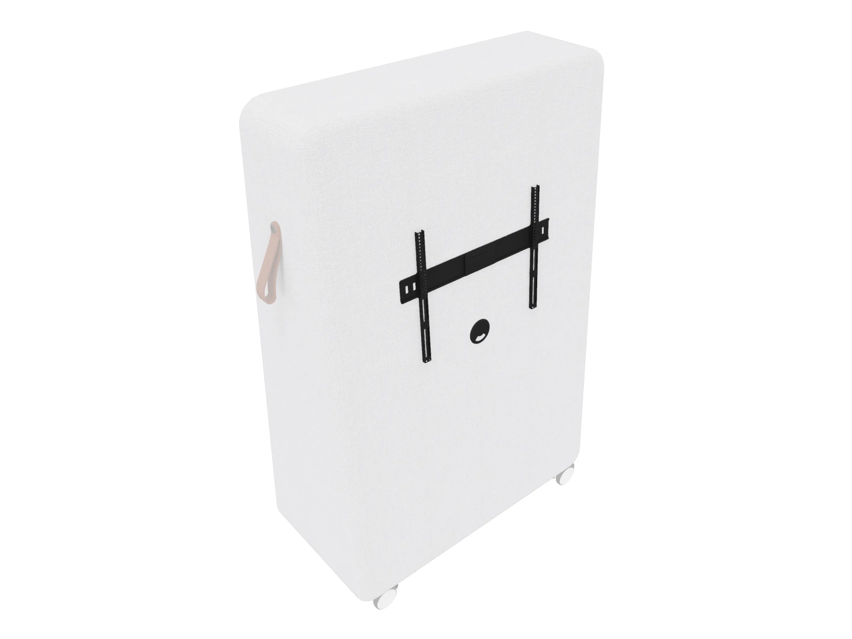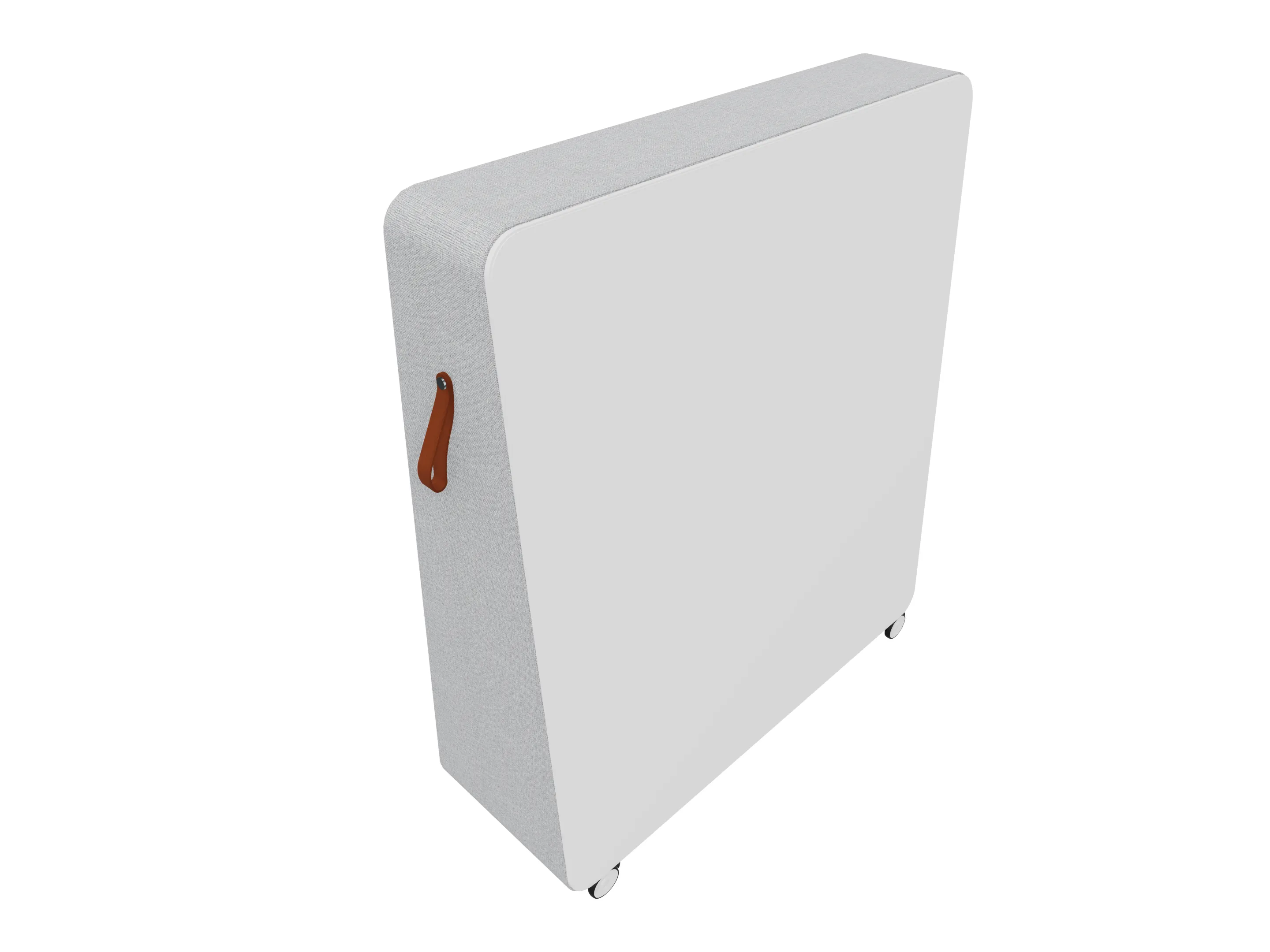 Verrijdbare akoestische ruimteverdeler, voor zien van wielen. Uitgevoerd als "standaard akoestisch". Afmeting: 1200 x 450 x 1430mm (BxDxH).