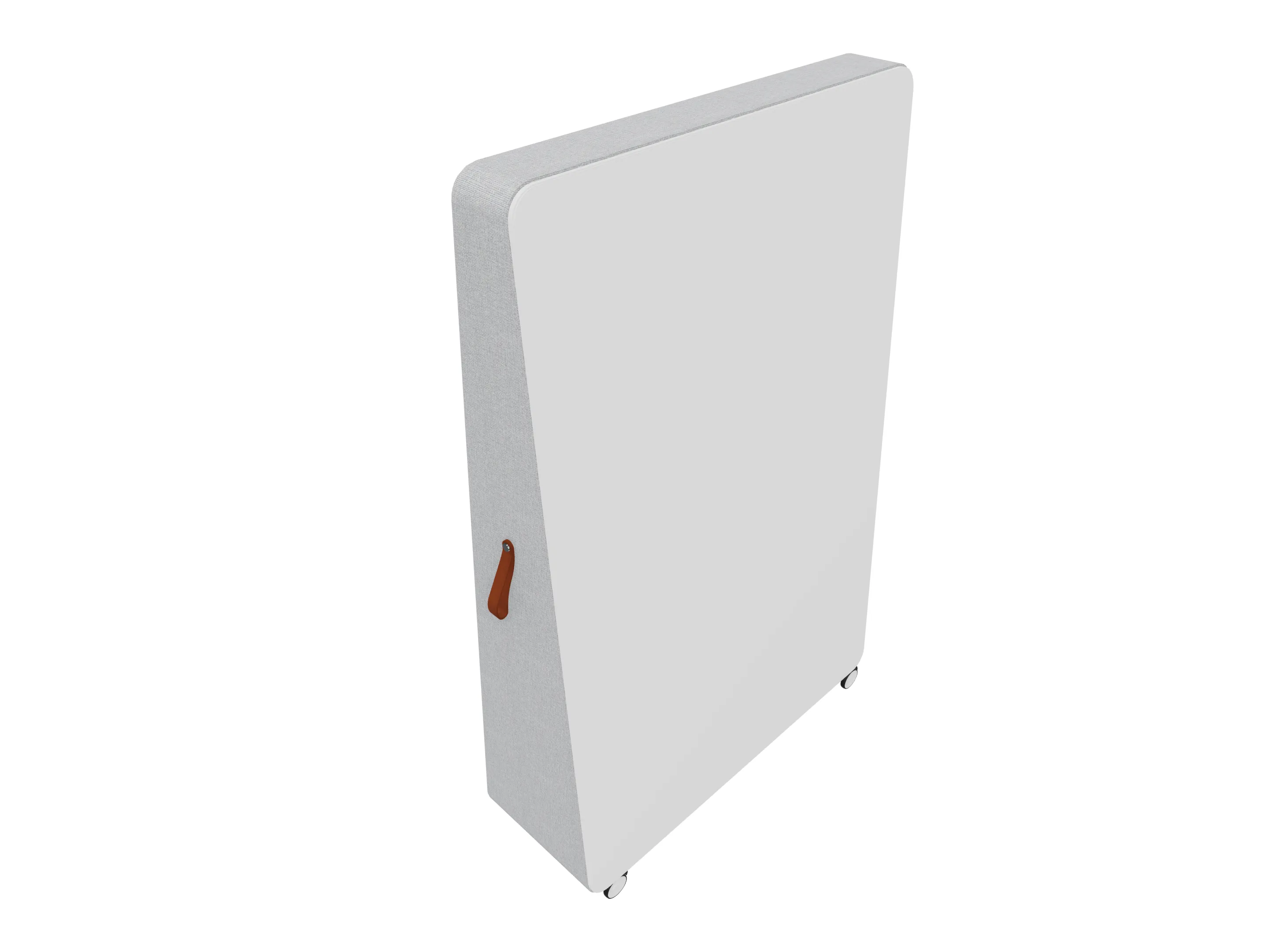 Verrijdbare akoestische ruimteverdeler, voor zien van wielen. Uitgevoerd als "standaard akoestisch". Afmeting: 1200 x 450 x 1930mm (BxDxH).