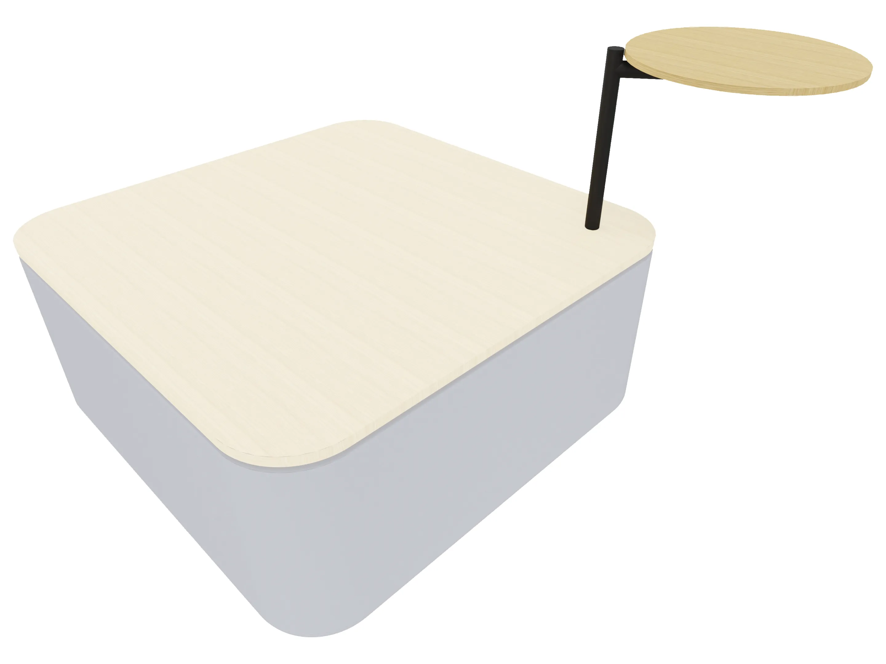 Bijzettafel volledig gestoffeerd met een fineer afgewerkte top. Afmeting: 800 x 800 x 400mm (BxDxH)